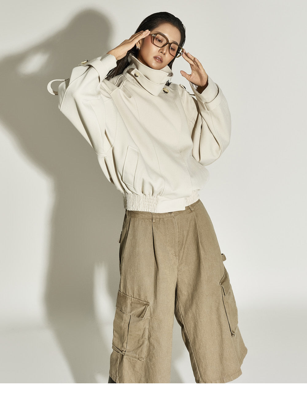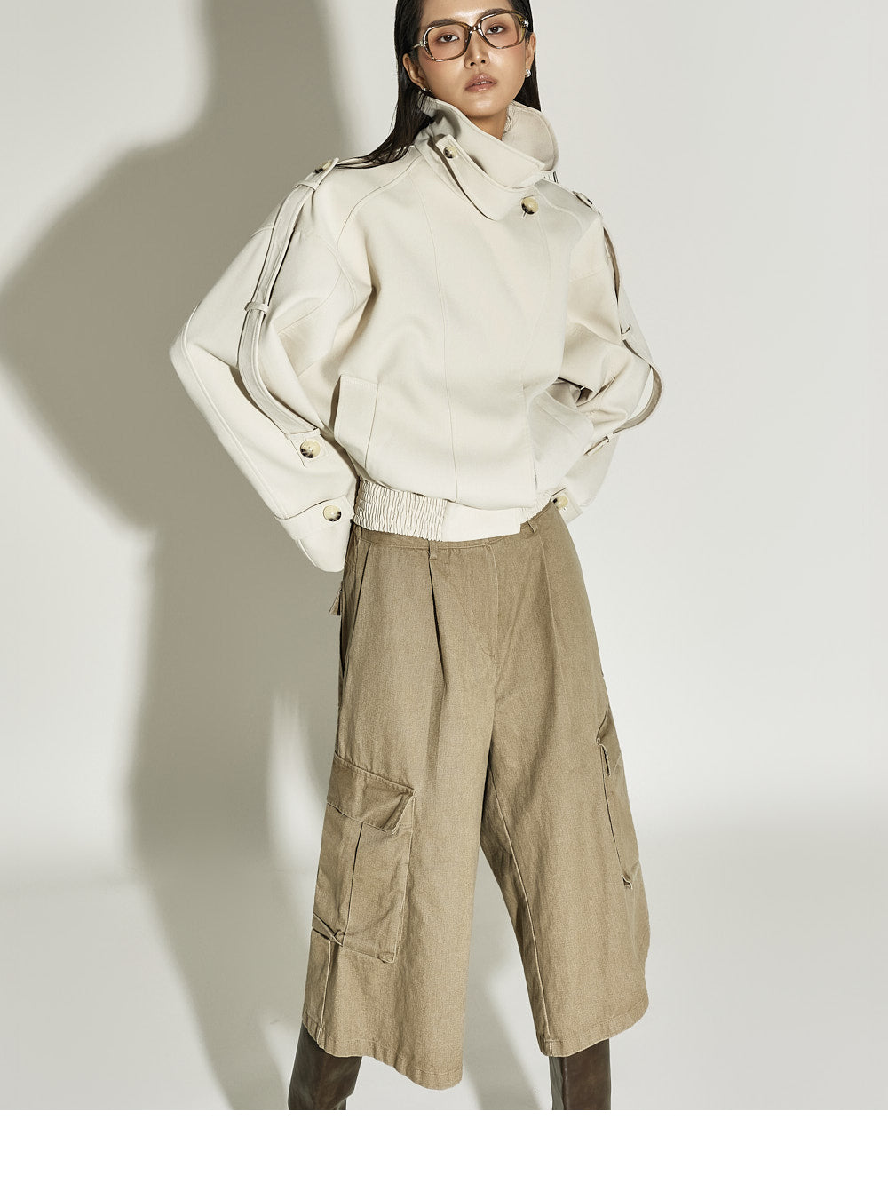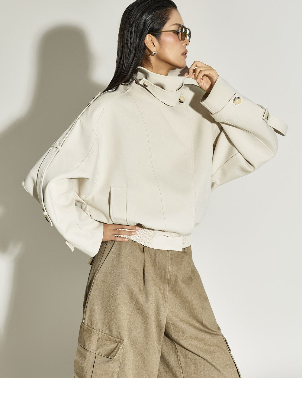 The 173cm model is wearing size ONE in BEIGE.