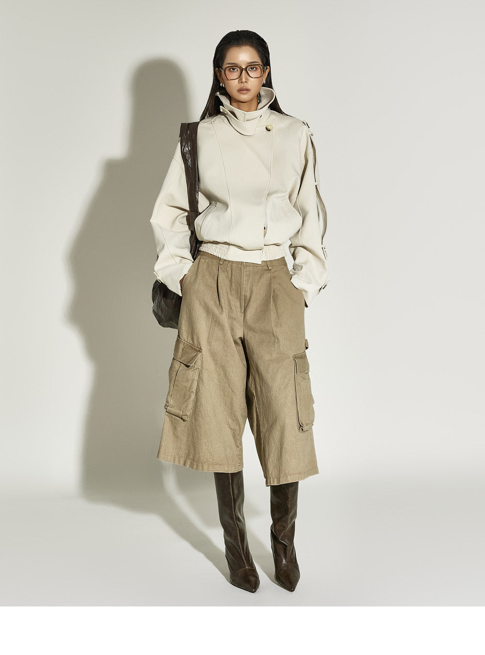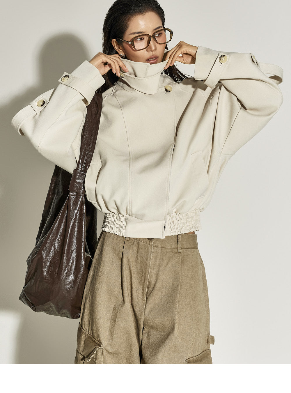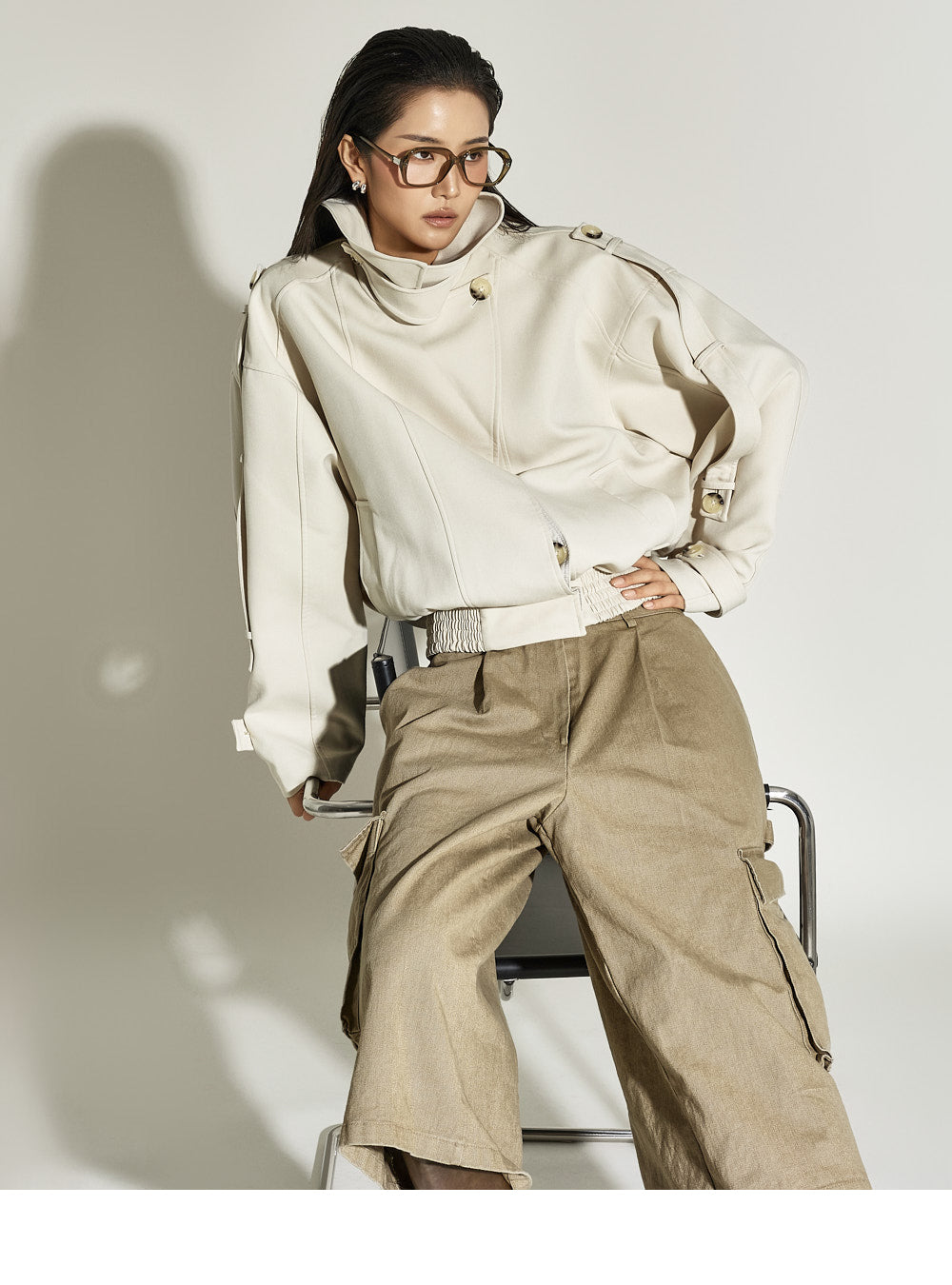 The 173cm model is wearing size ONE in BEIGE.