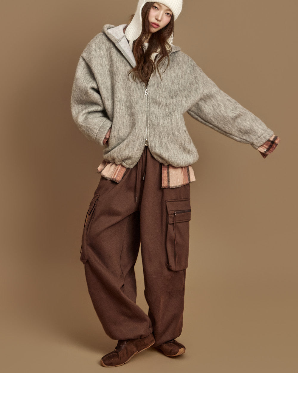 The 171cm model is wearing size ONE in BROWN.