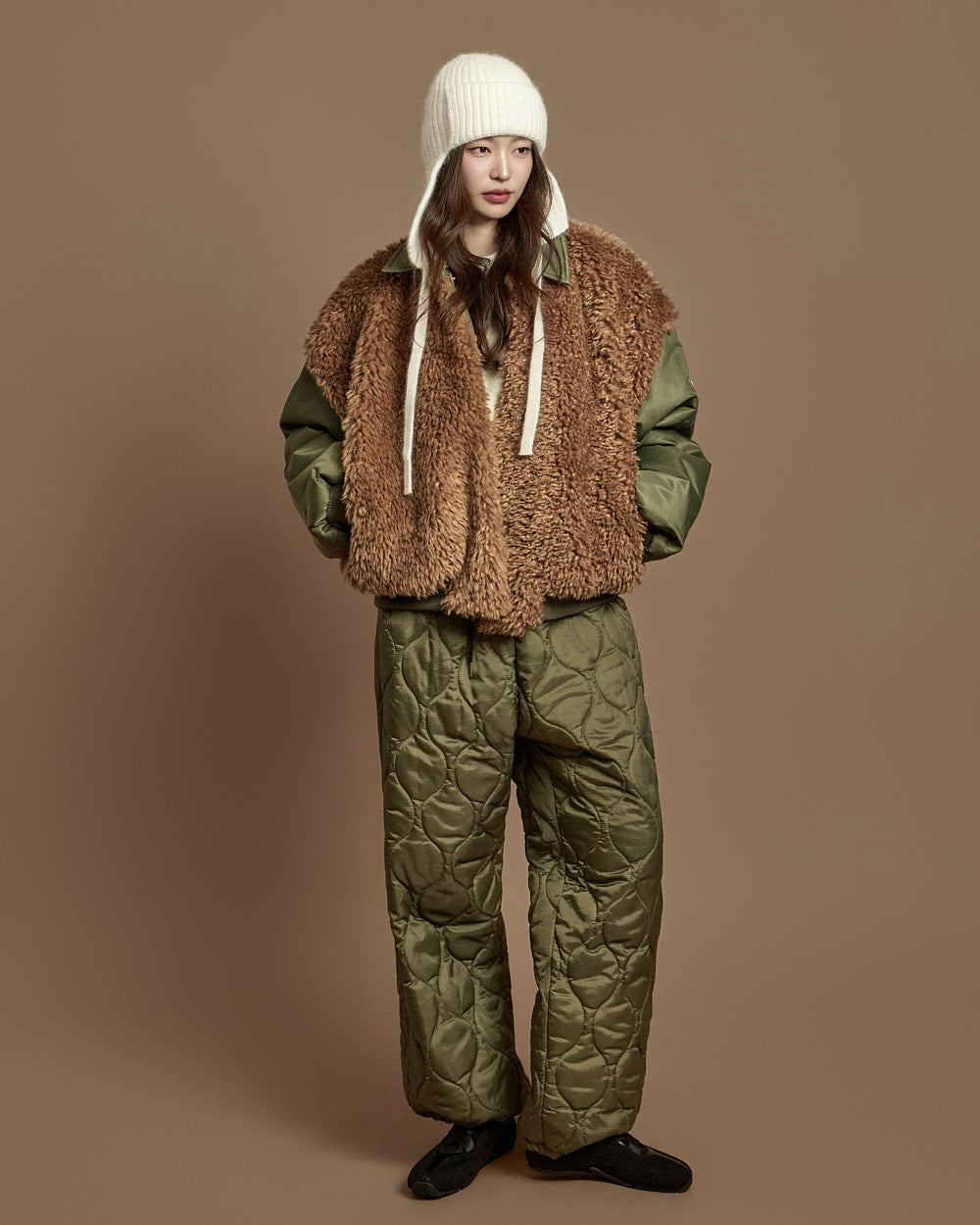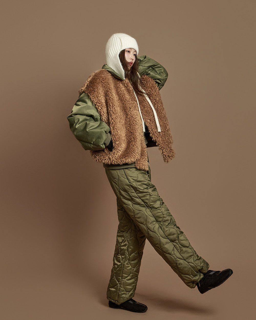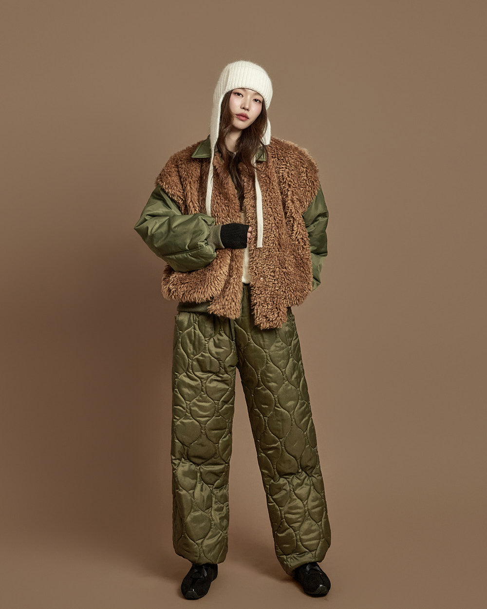 The model is 171cm tall and is wearing size ONE in the KHAKI color.