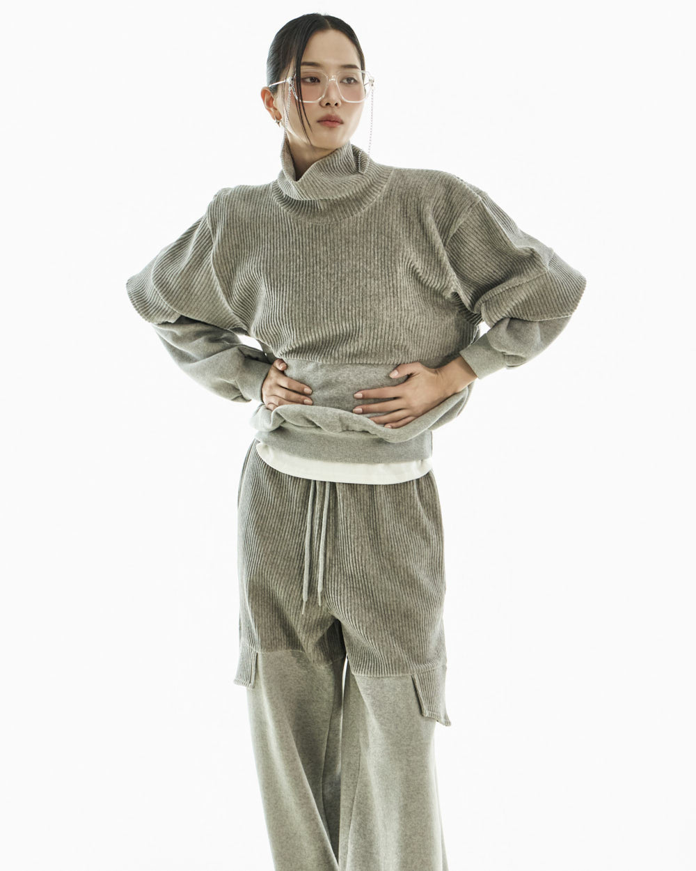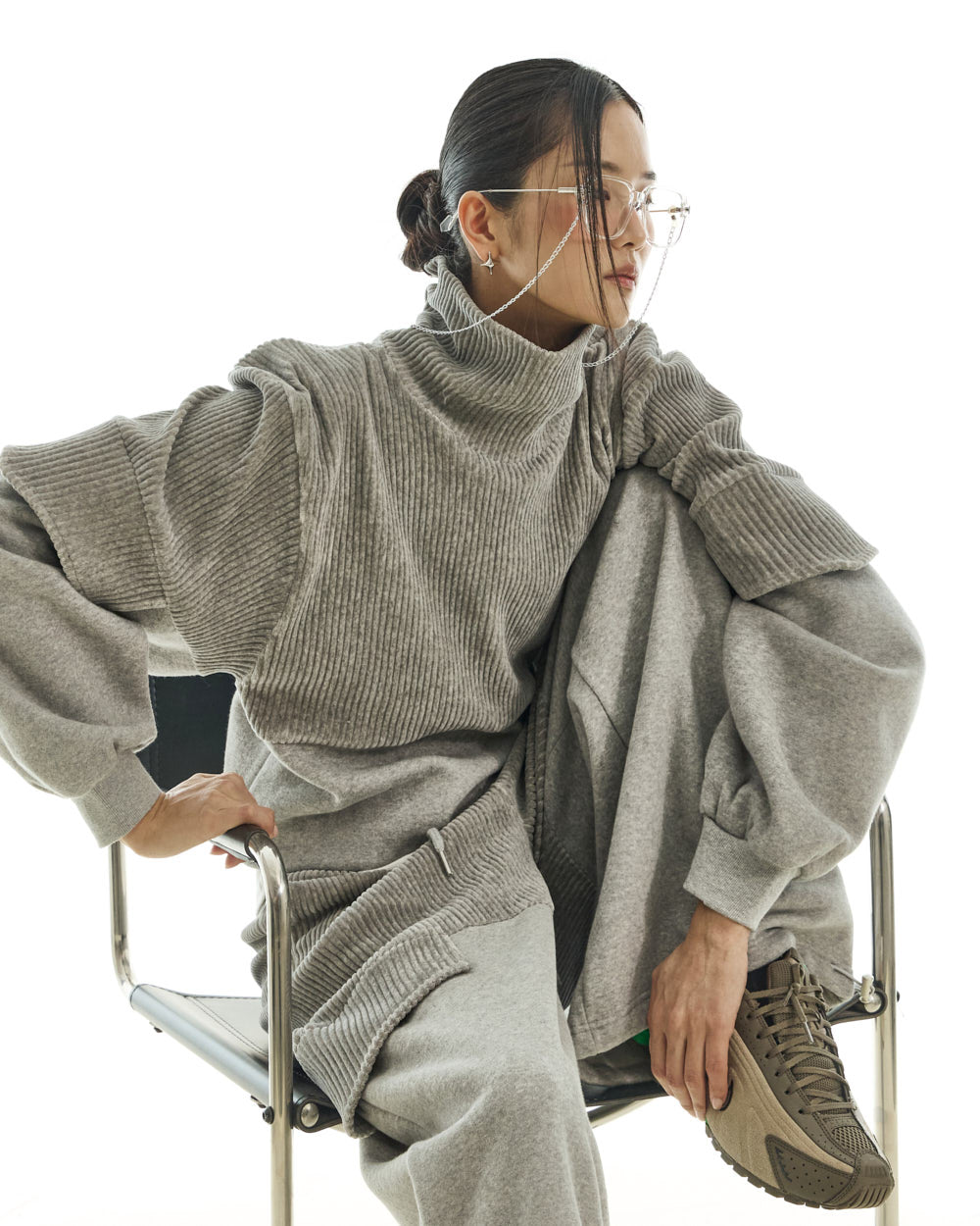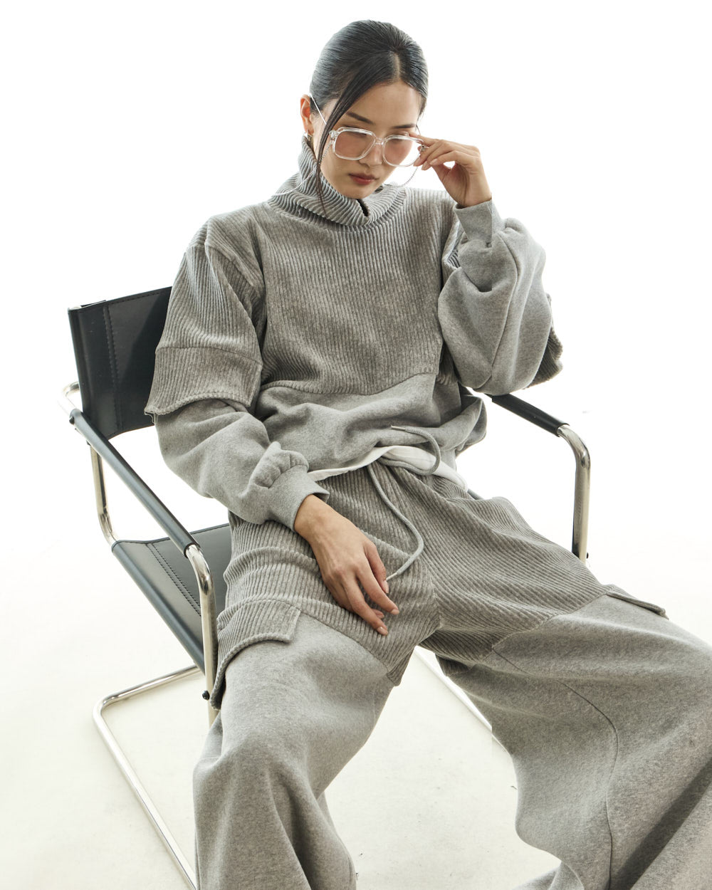 The 173cm model is wearing size ONE in GRAY.