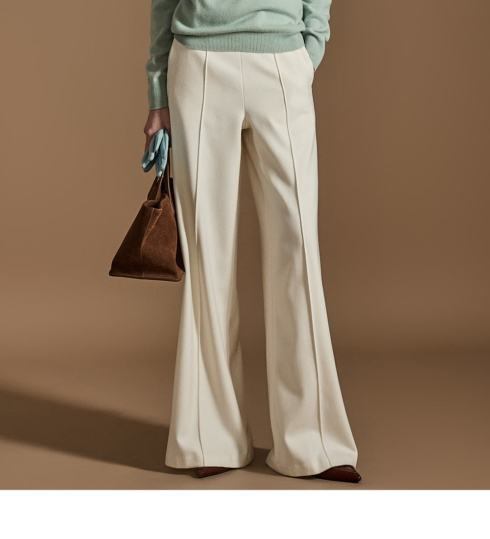 季節感あふれる厚手の素材を使用し、汎用性の高いスラックスです。
