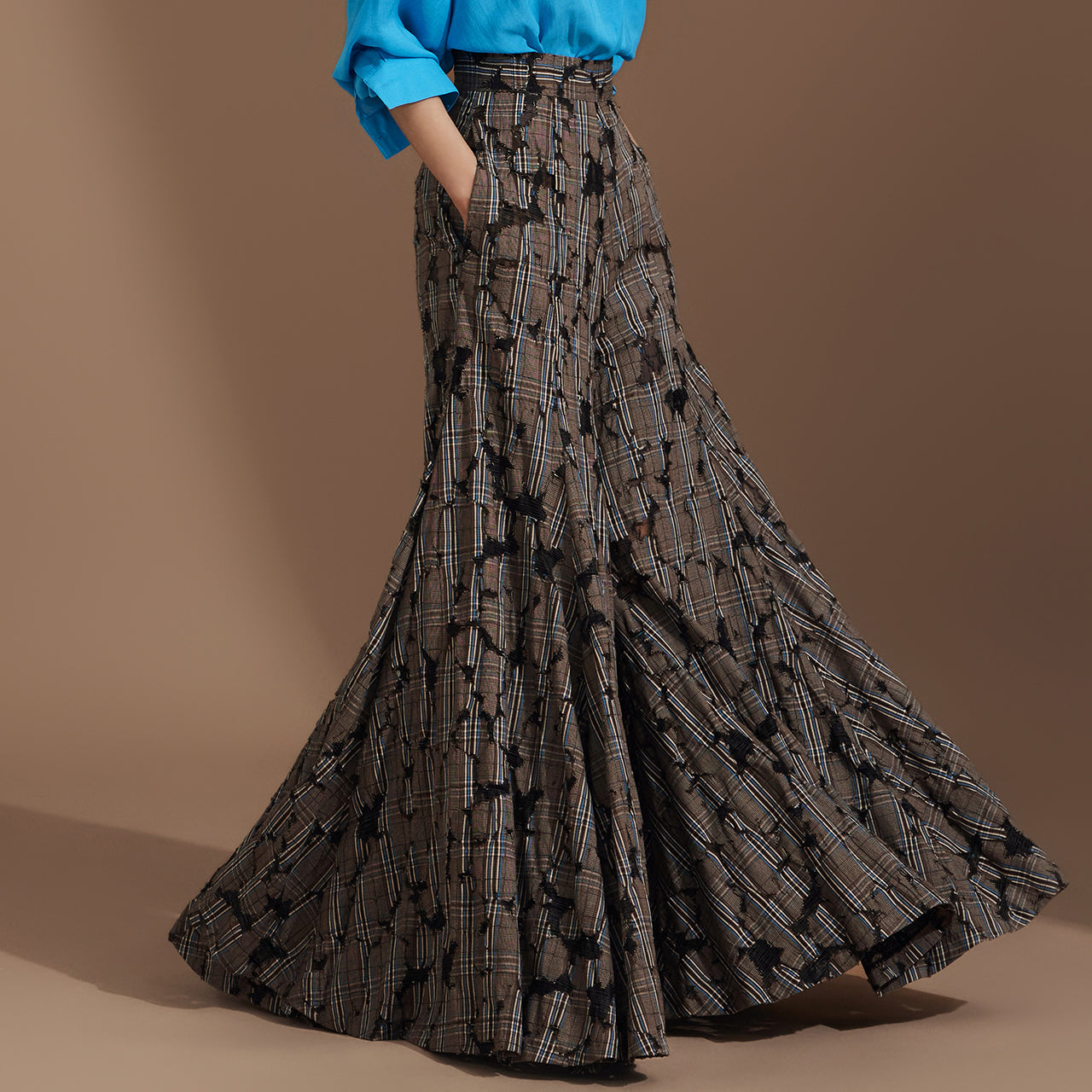 スタイリッシュな雰囲気を醸し出すワイドマキシパンツ。