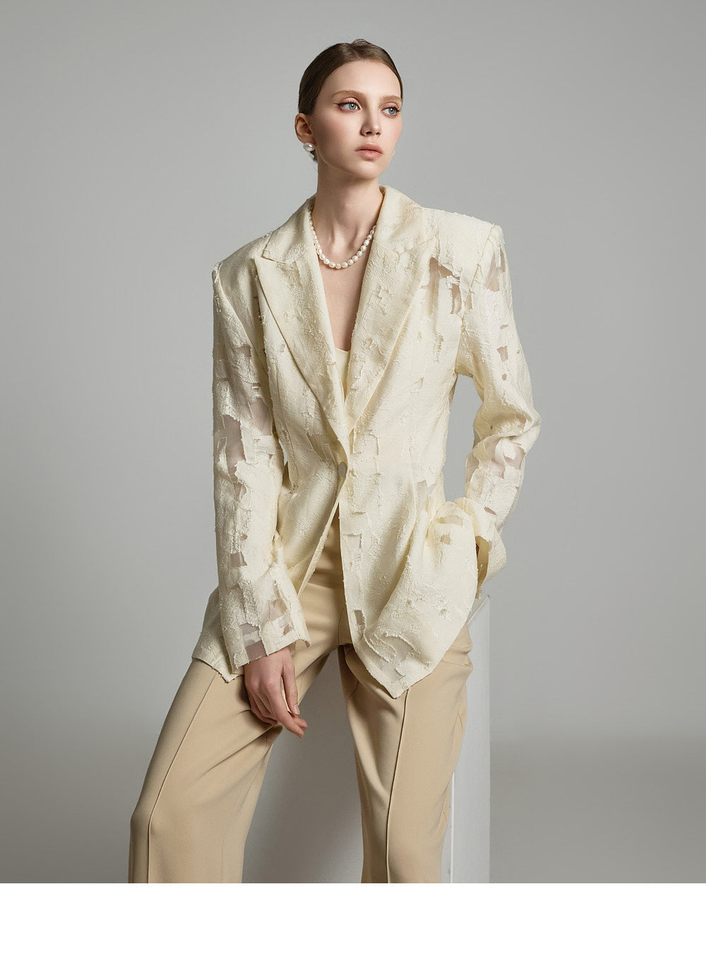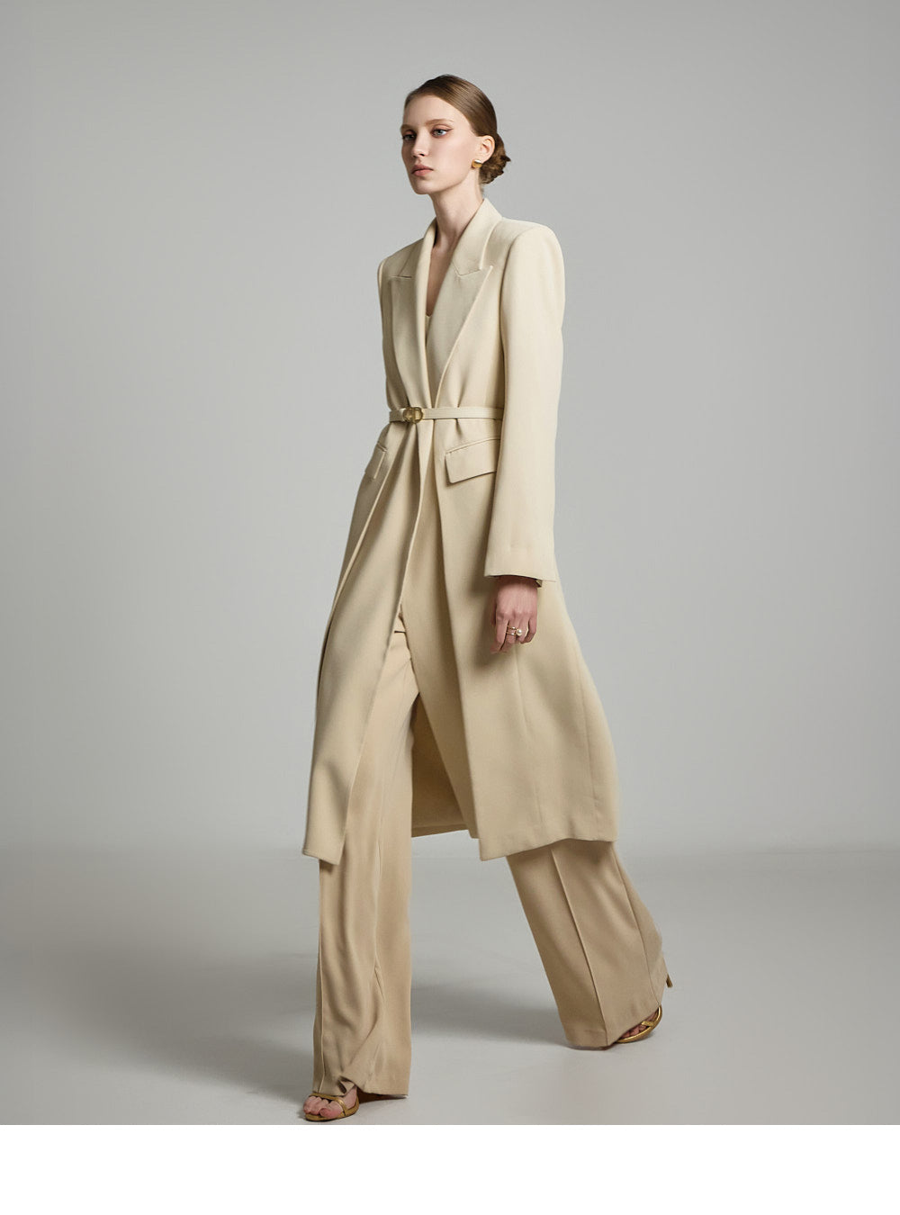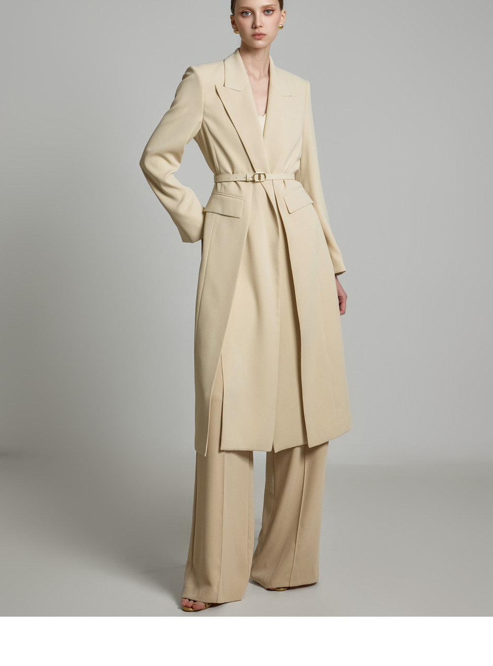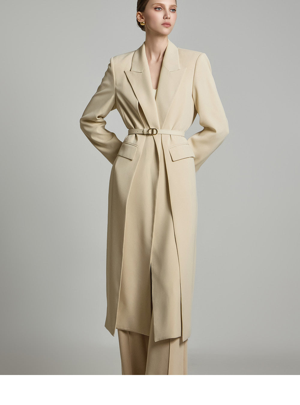 モデルの身長は174cmで、ベージュのSサイズを着用しています。