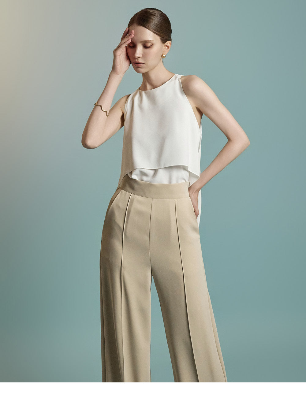 ワイドフィットで脚のラインを美しく見せます。