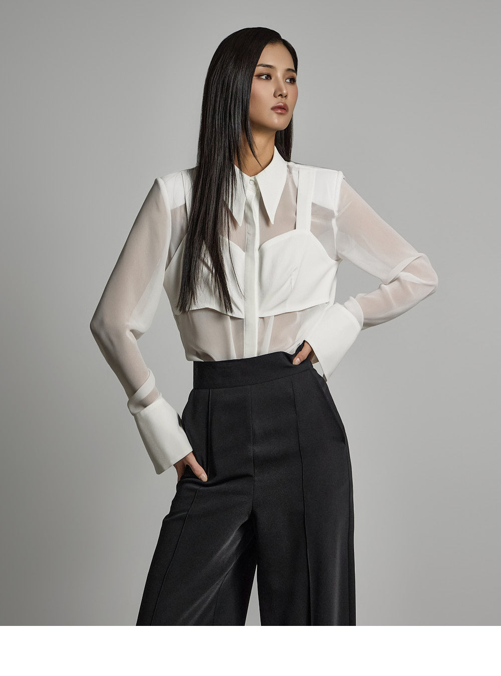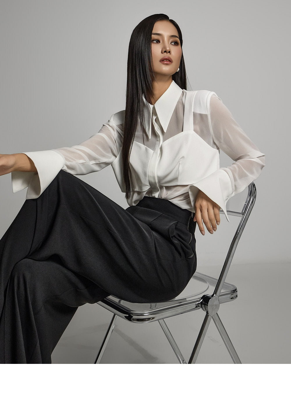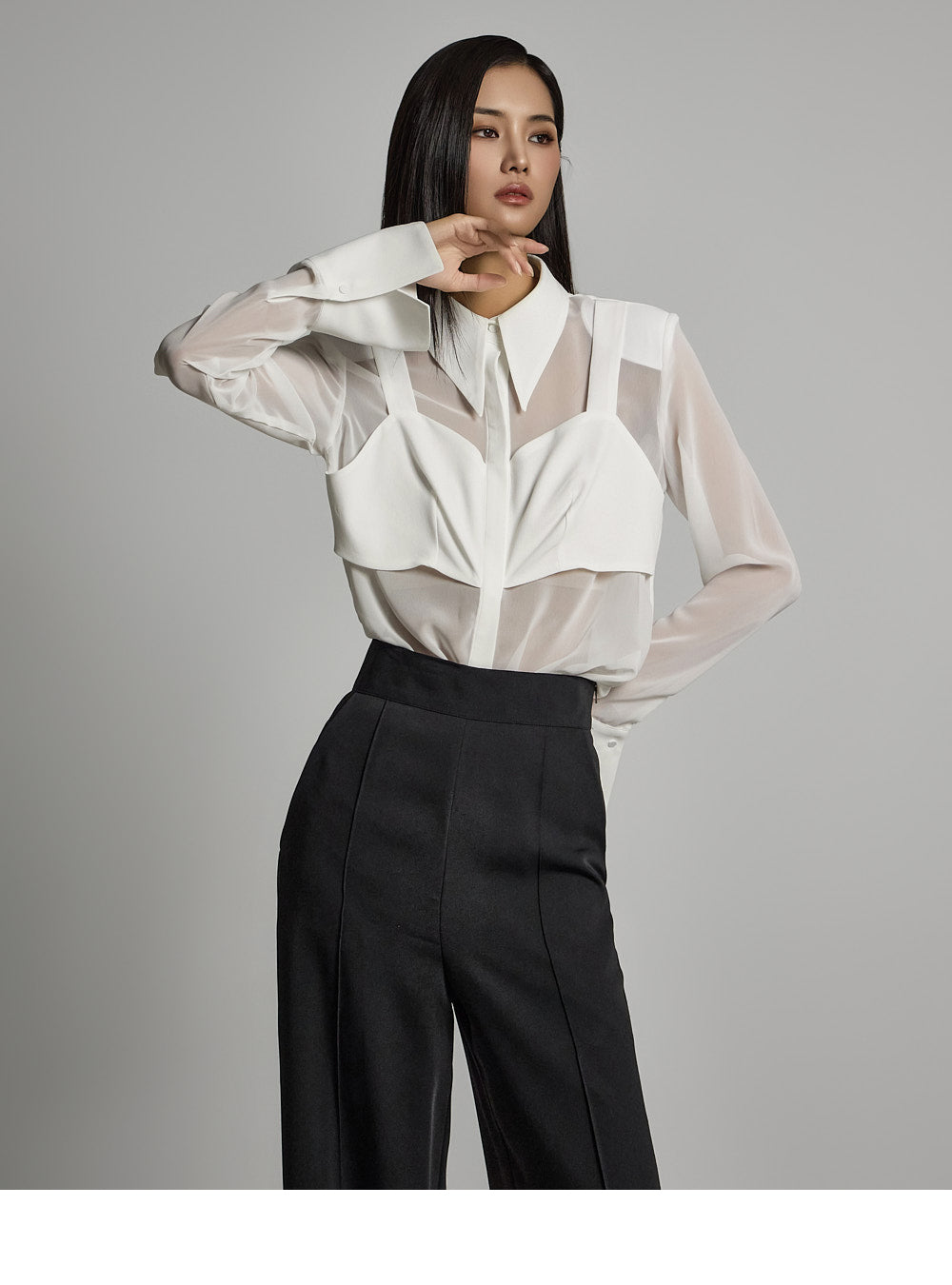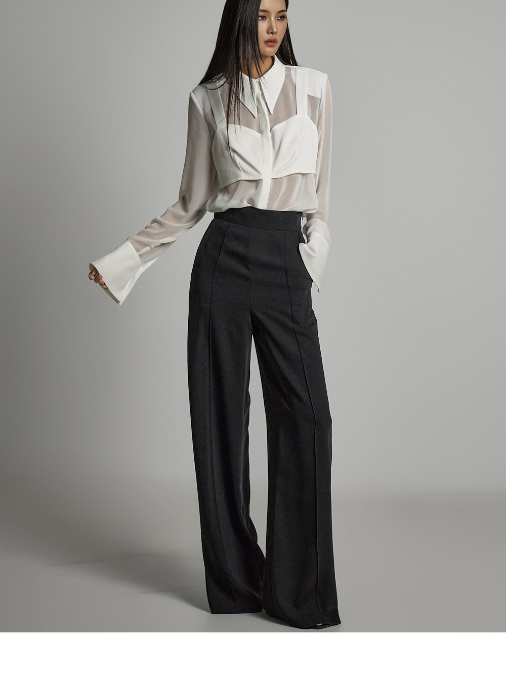 フロントのピンタックディテールで洗練されたシルエットを演出。
