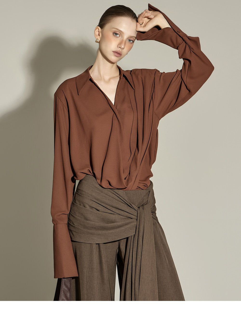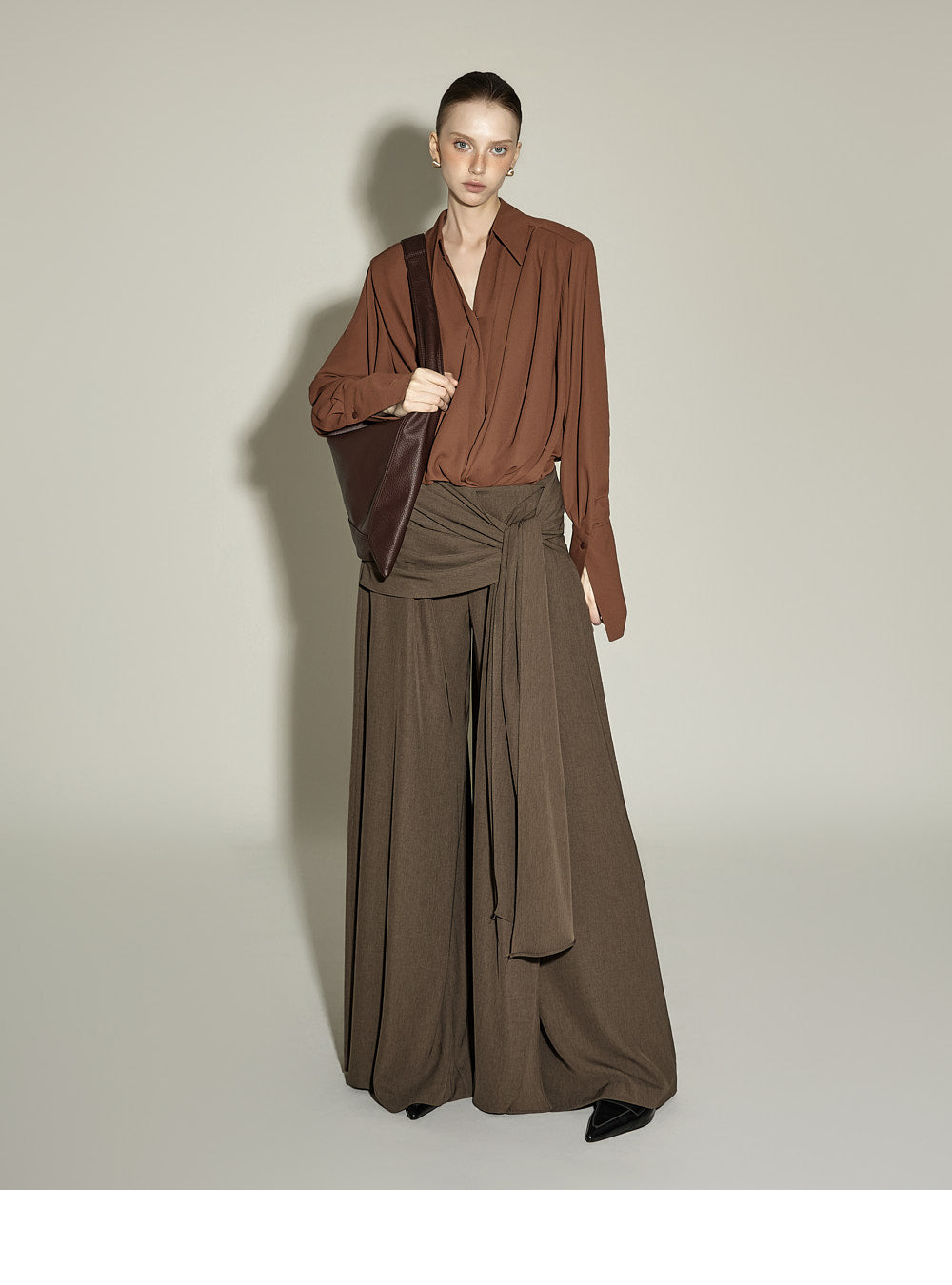 Model is 174cm tall and wearing size S in KHAKI BROWN.