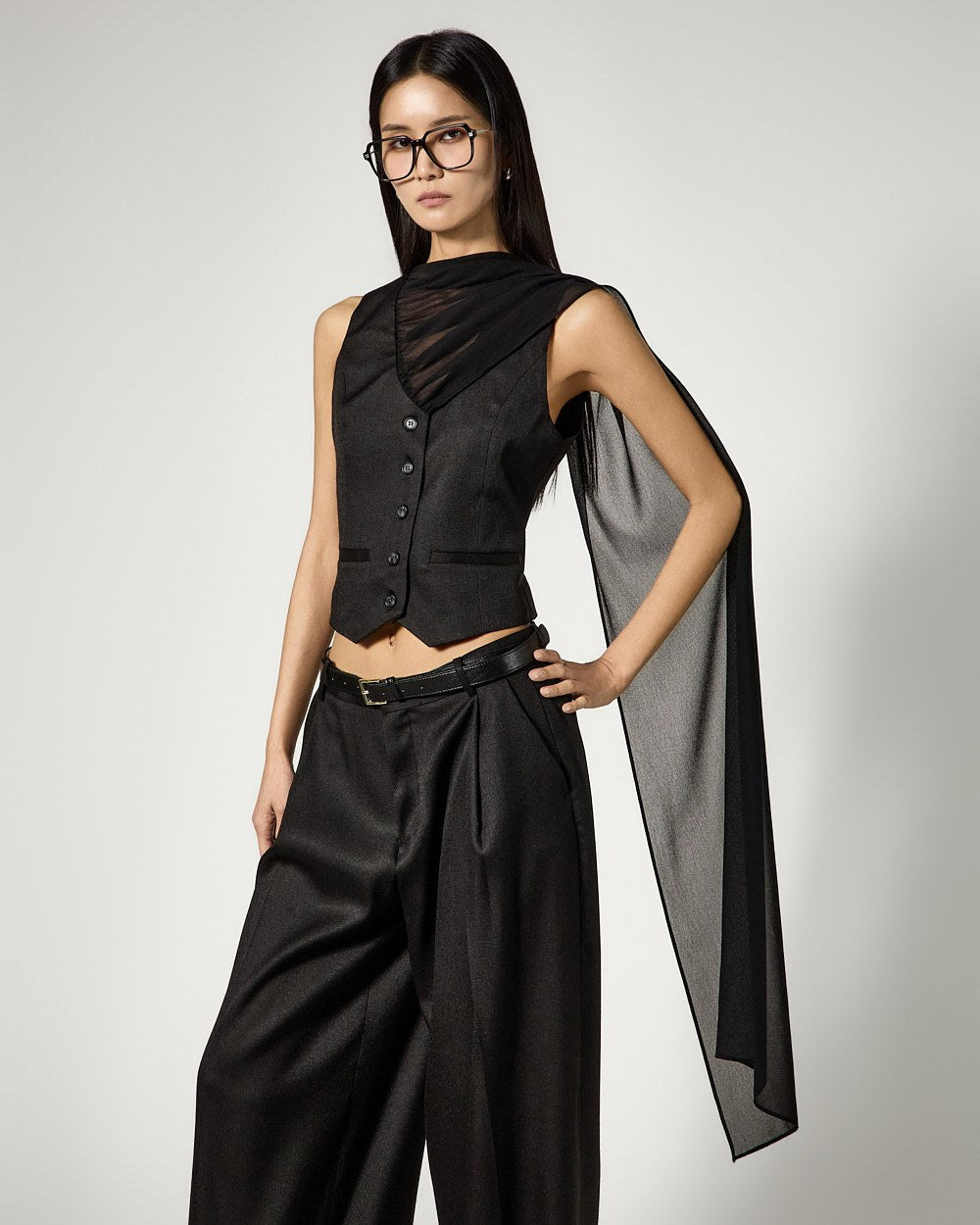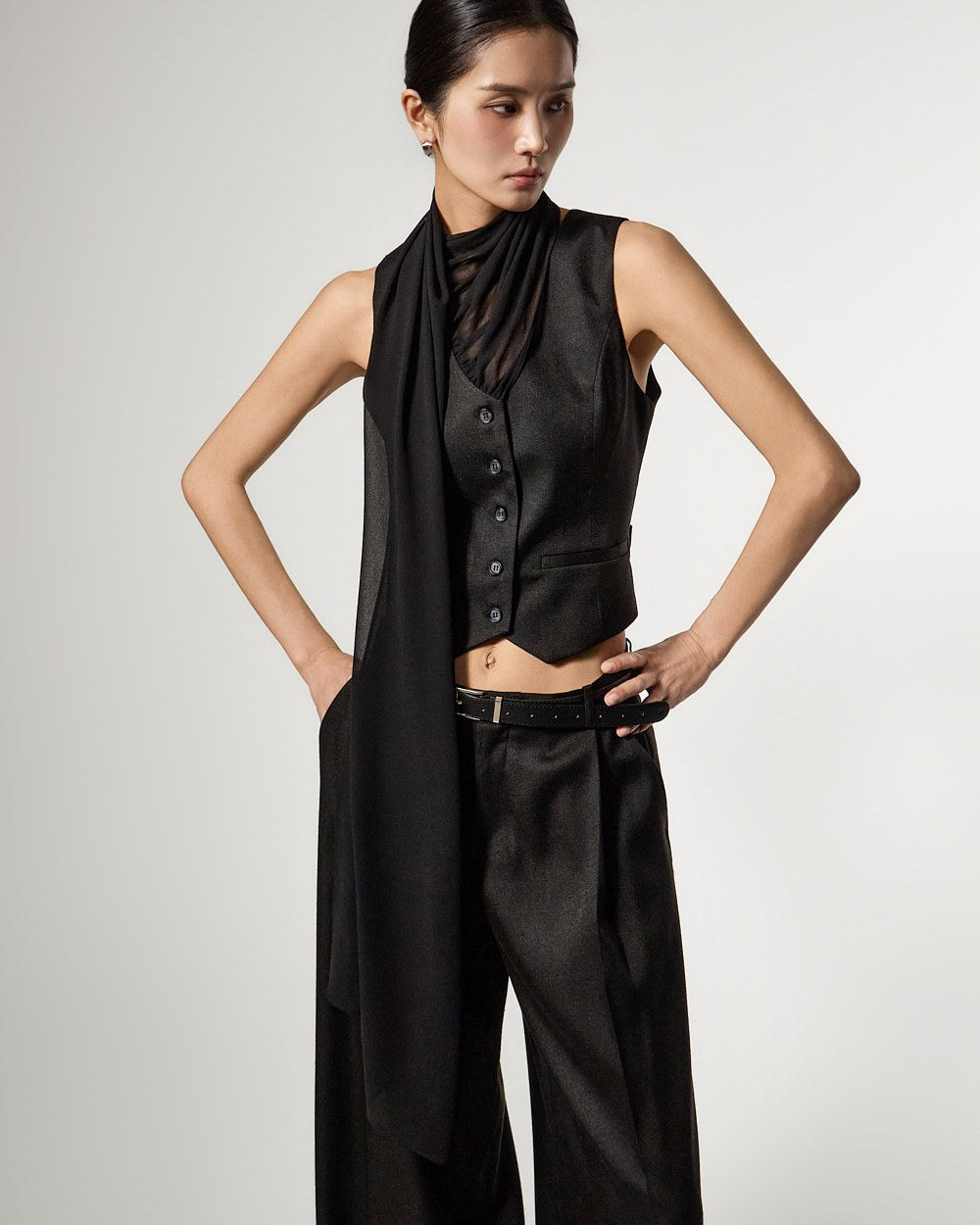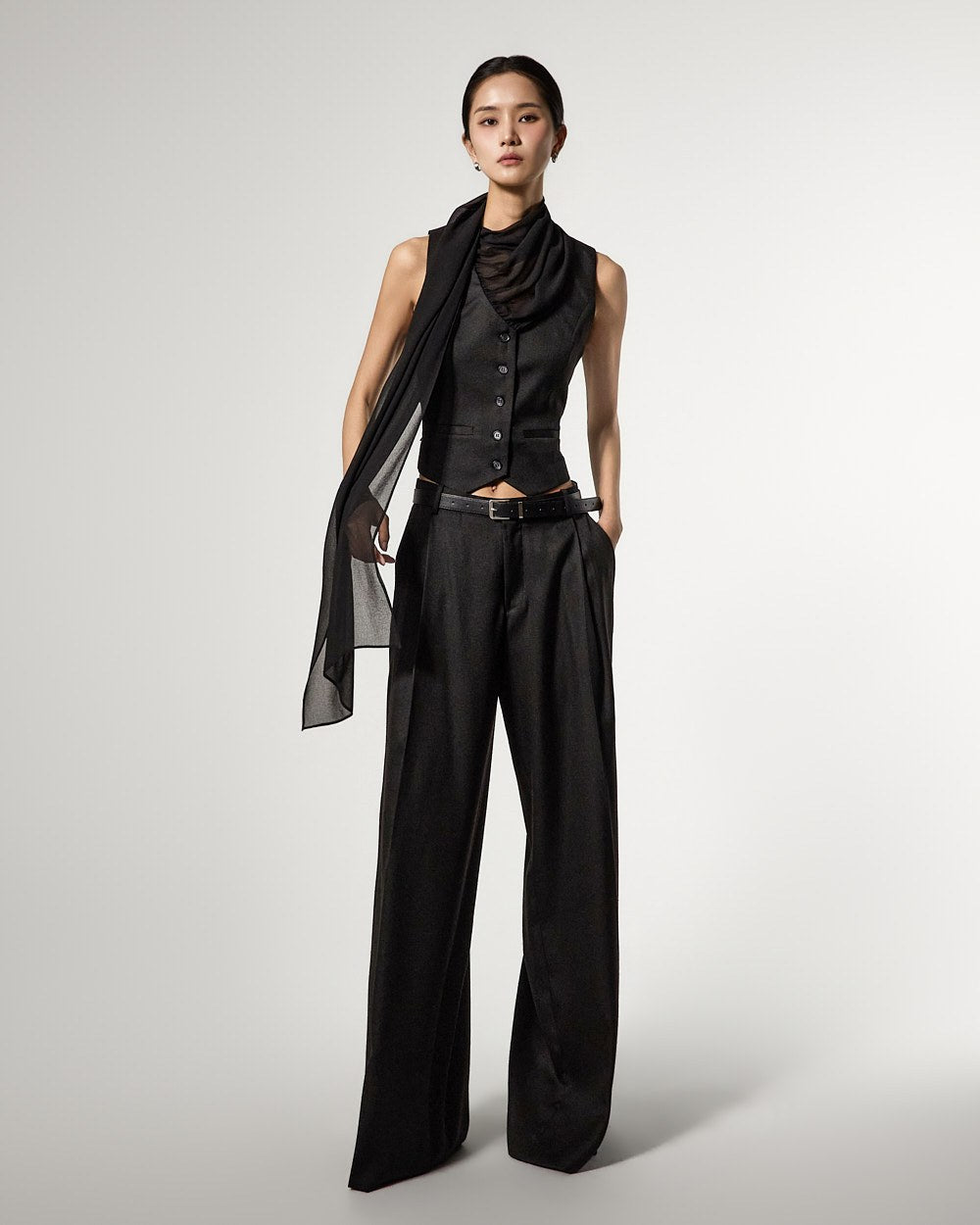 様々なトップスと自然にマッチし、デイリーウェアとして活用しやすく、セットアップとして付属のジャケットやベストとコーディネートすると、洗練されたスタイルを完成させる素晴らしいアイテムです。