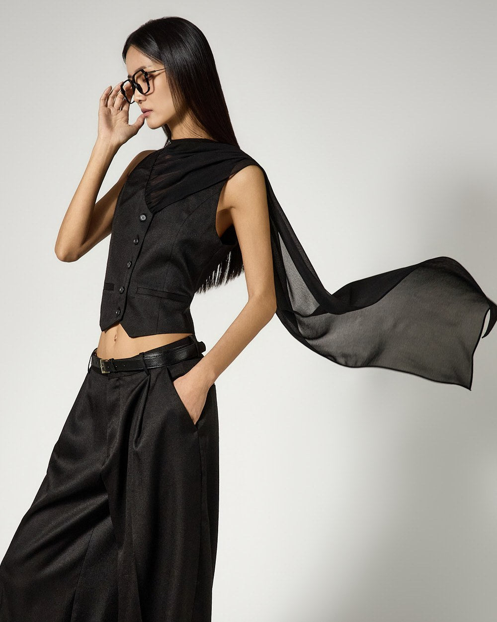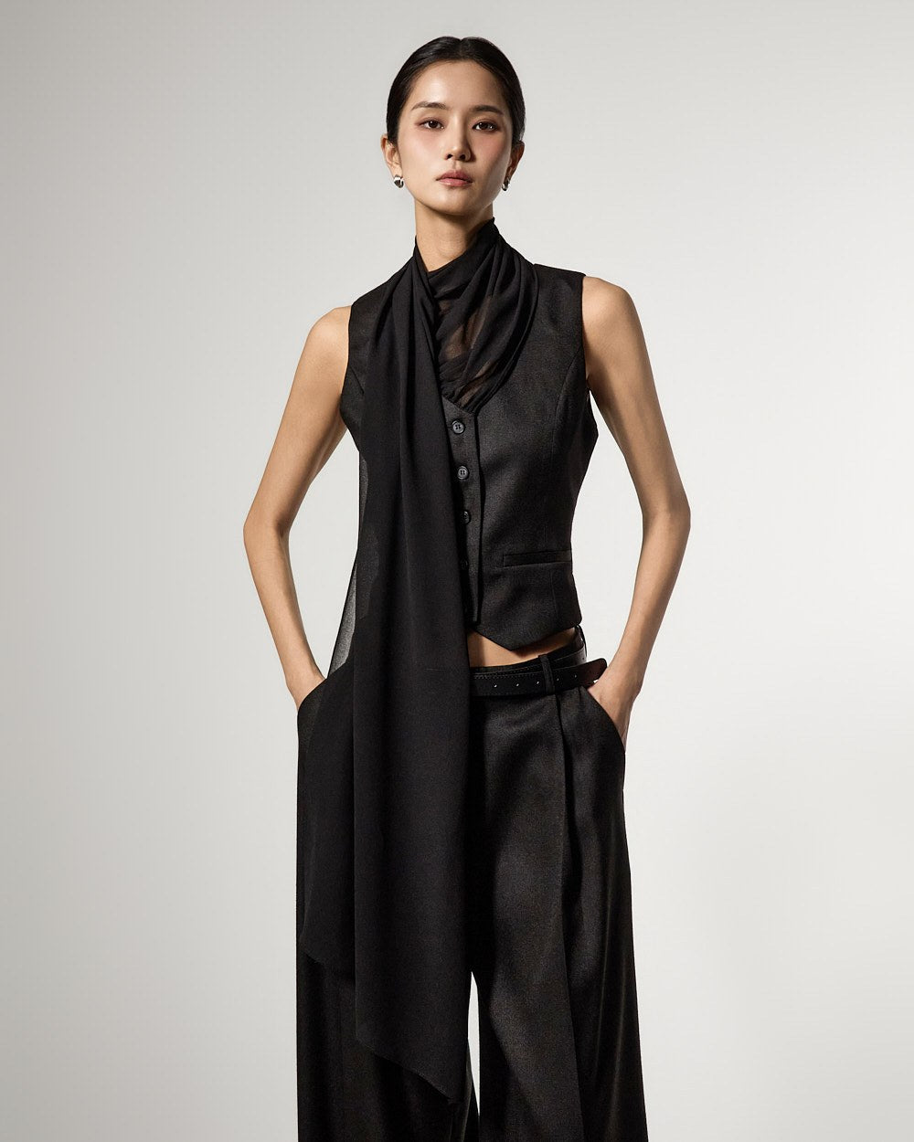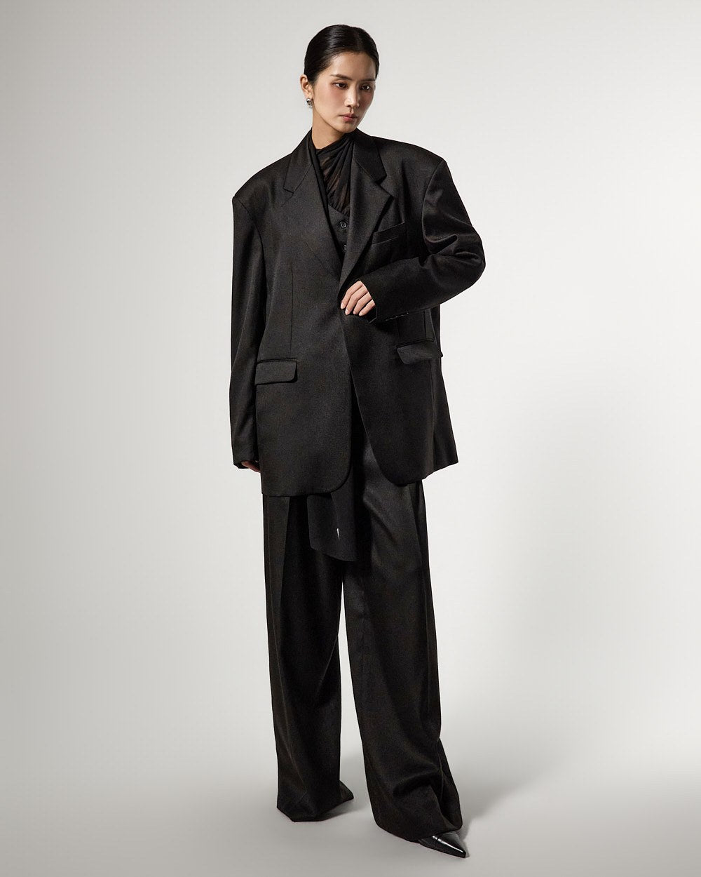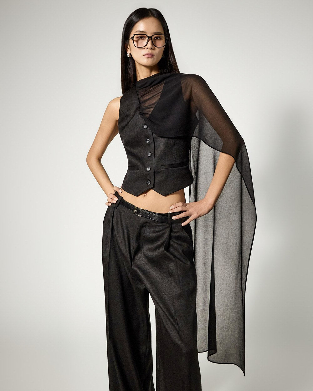 様々なトップスと自然にマッチし、デイリーウェアとして活用しやすく、セットアップとして付属のジャケットやベストとコーディネートすると、洗練されたスタイルを完成させる素晴らしいアイテムです。
