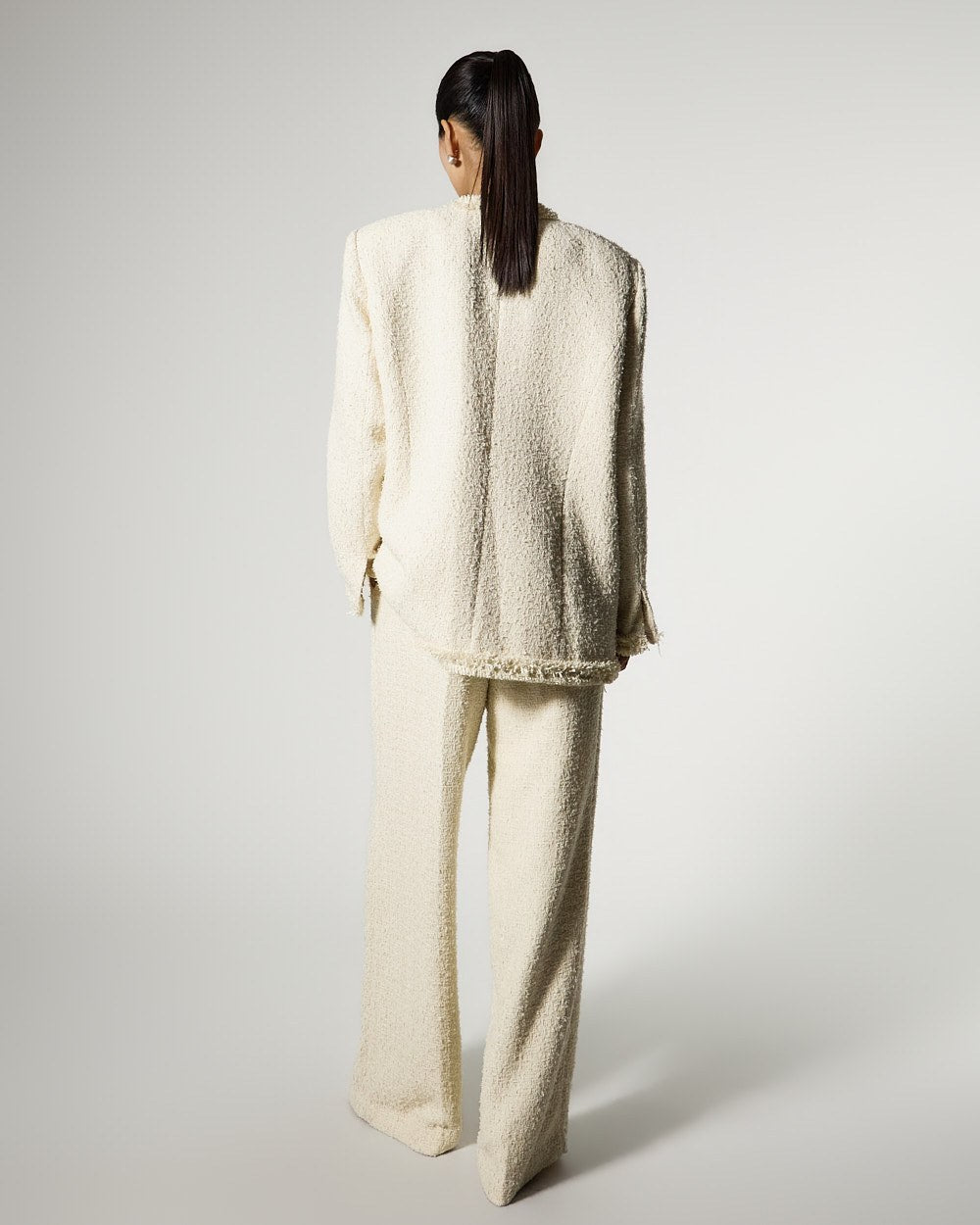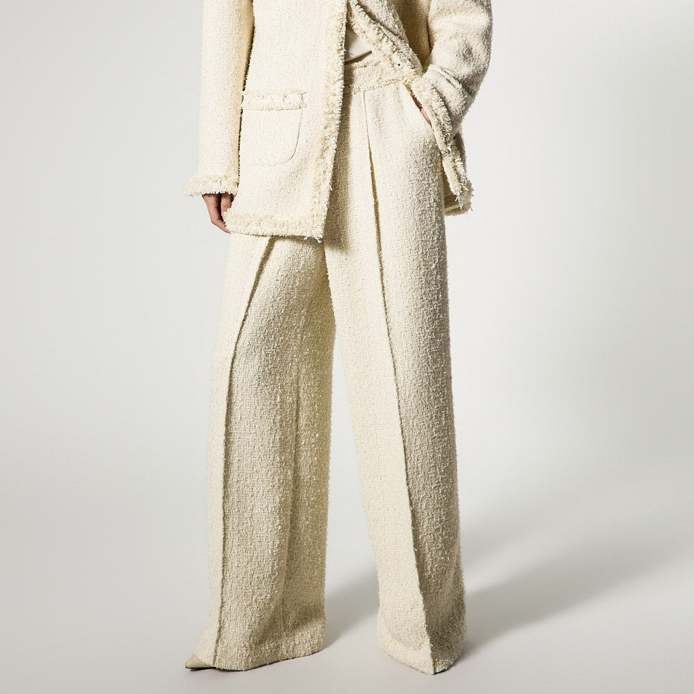 ワイドレッグシルエットが洗練されたスタイリッシュな装いを演出し、