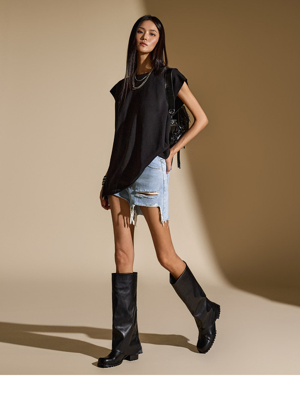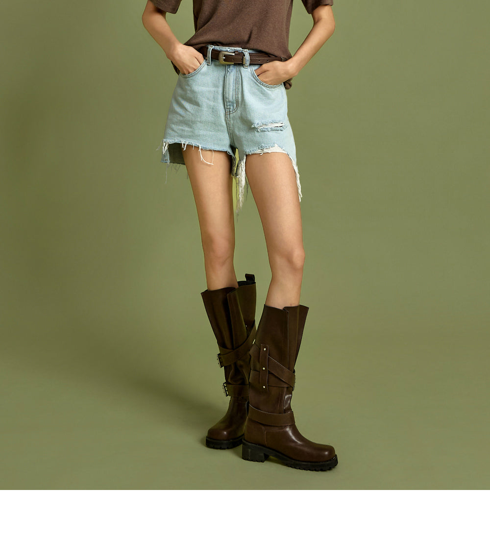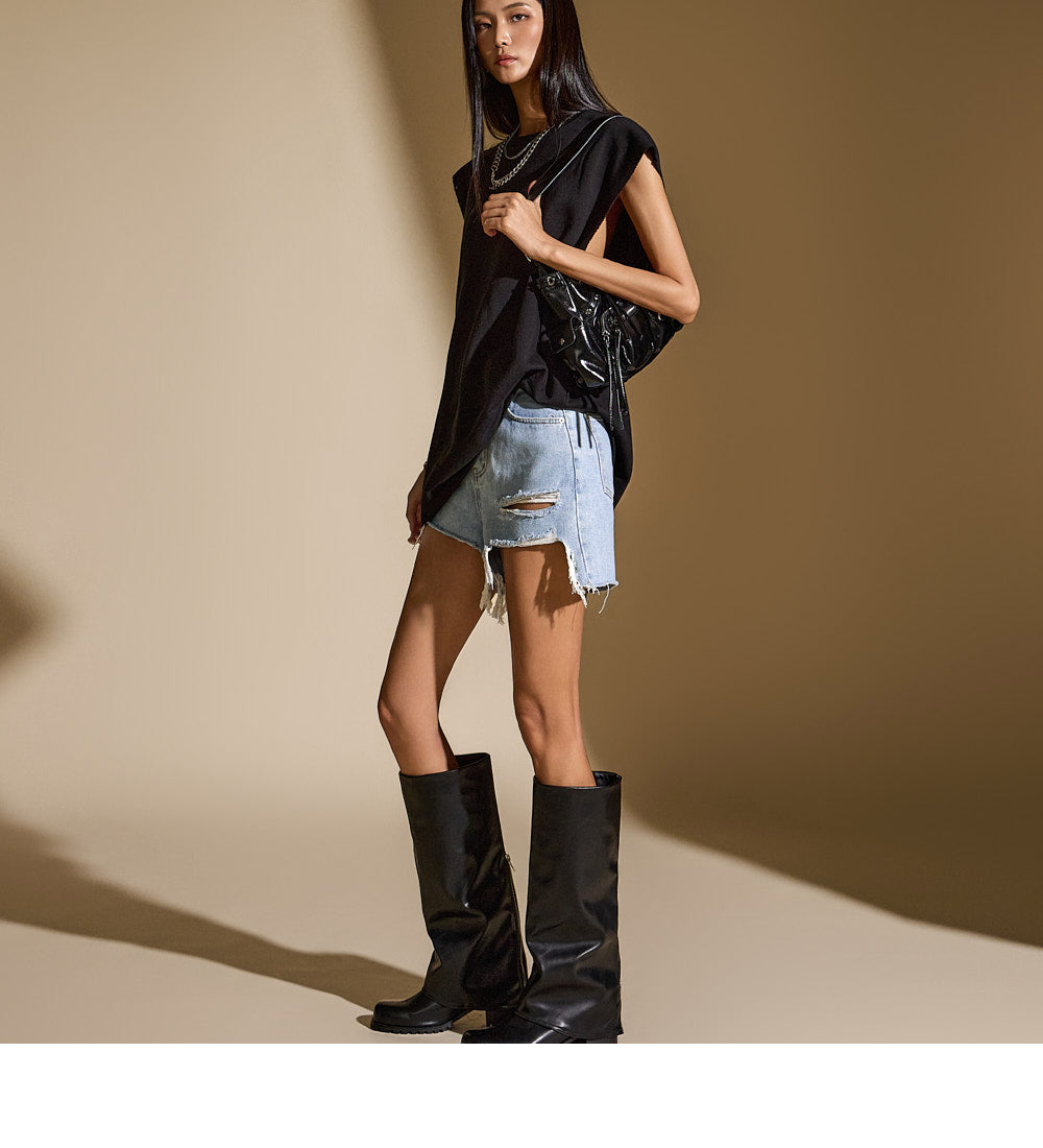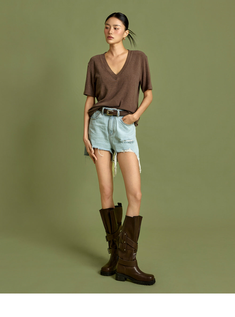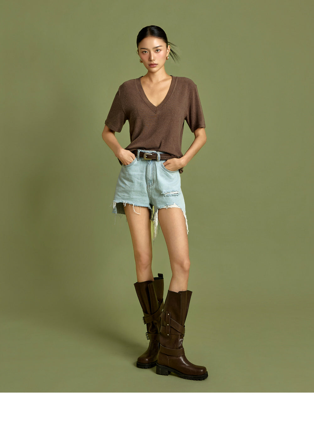 ダメージ加工のディテールがショートジーンズのカジュアルな雰囲気をプラスします。