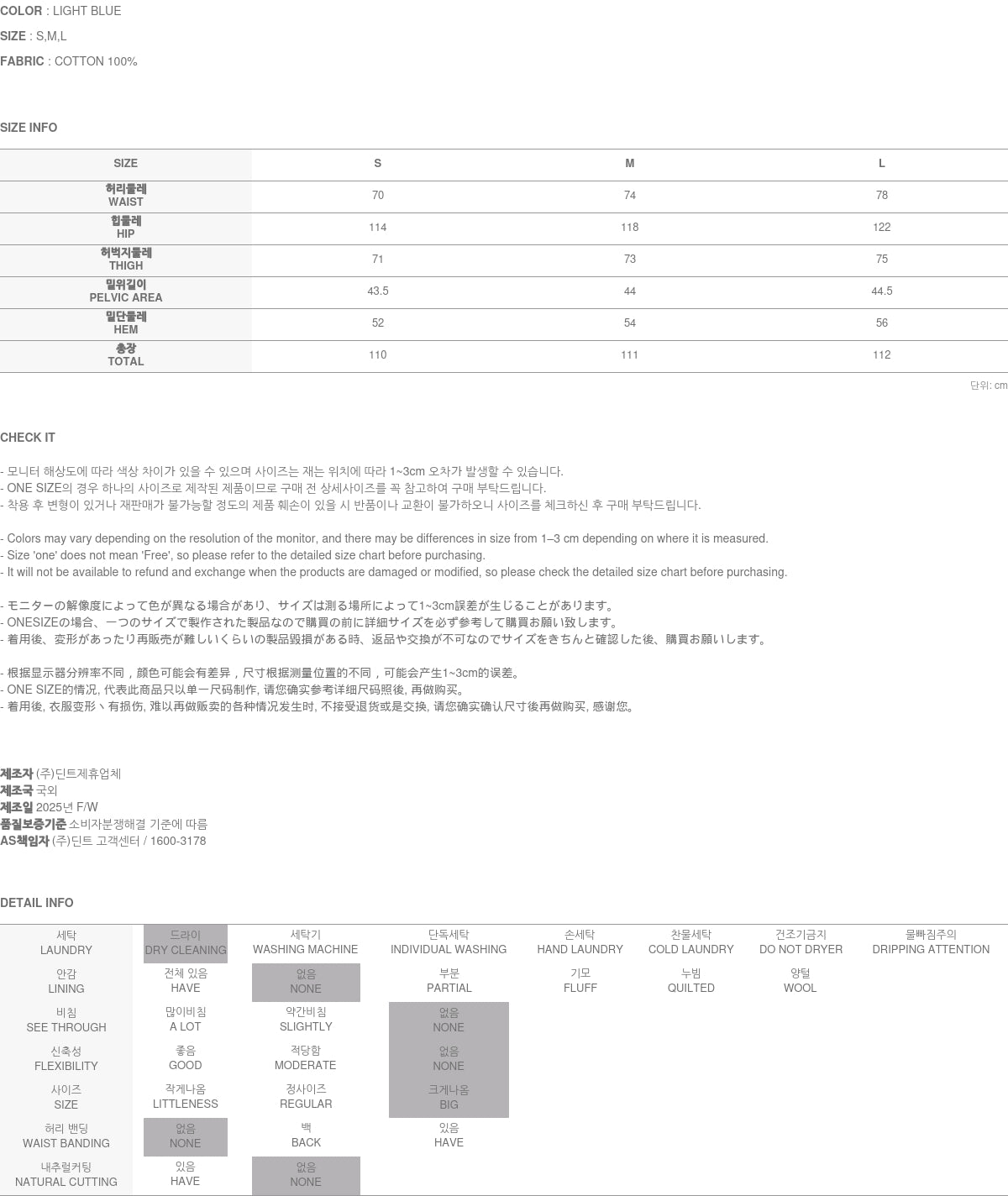 Model is 173CM tall, wearing size S in Light Blue.