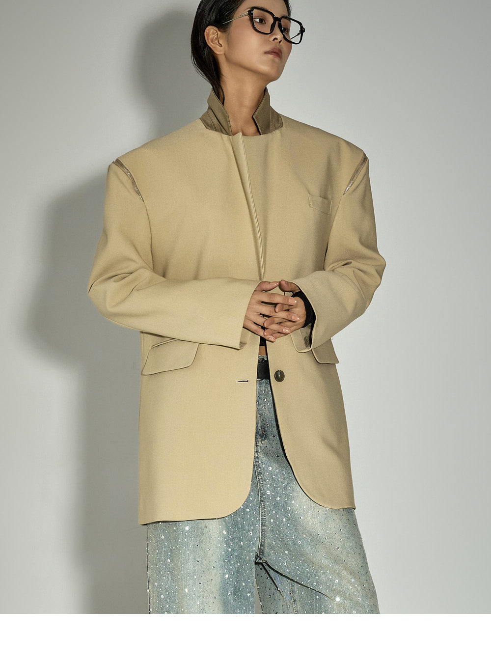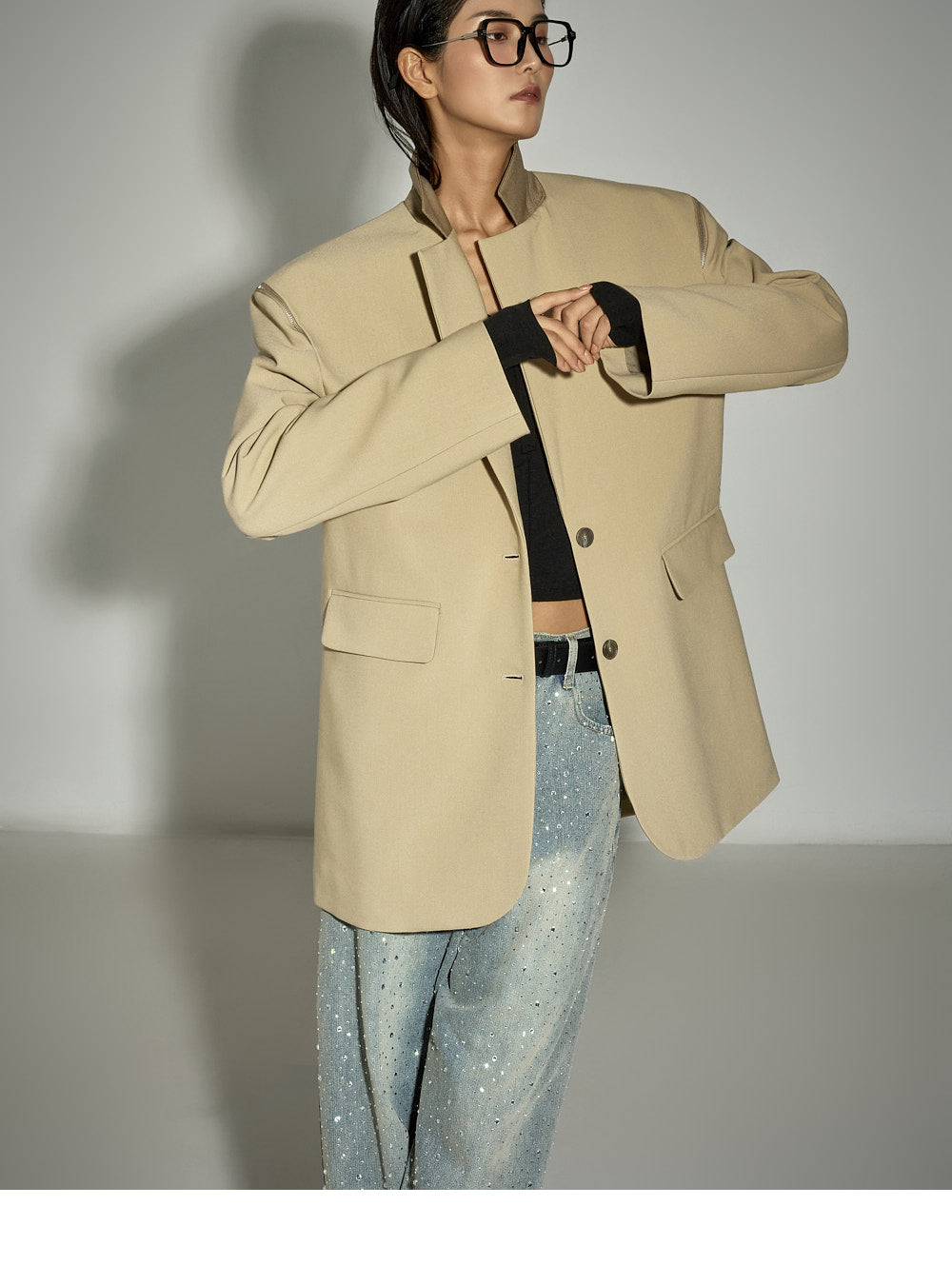 and the front is adorned with understated cubic crystal embellishments,