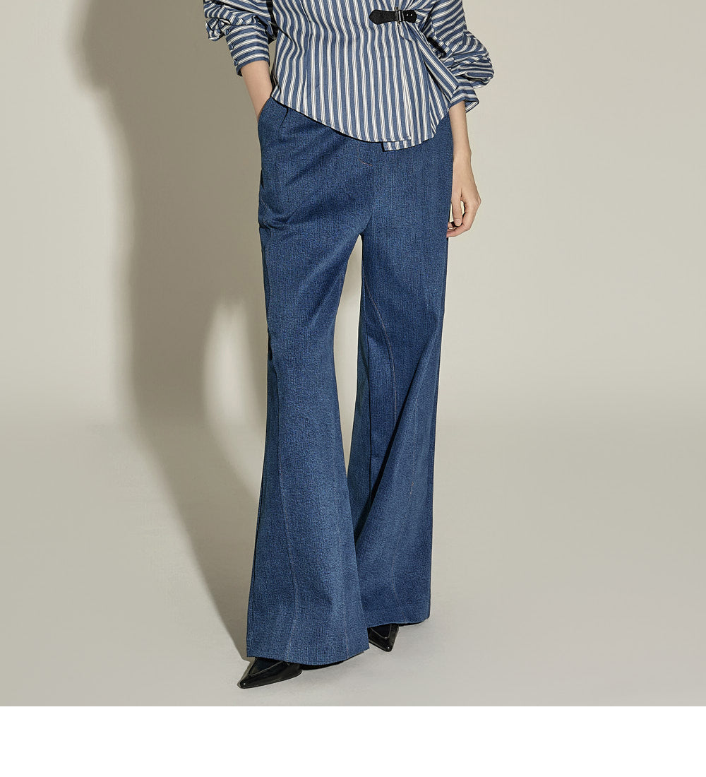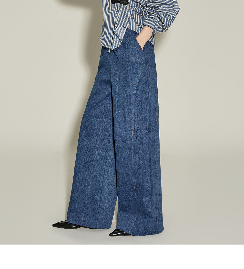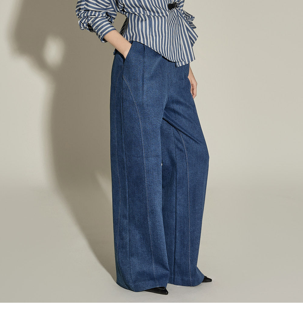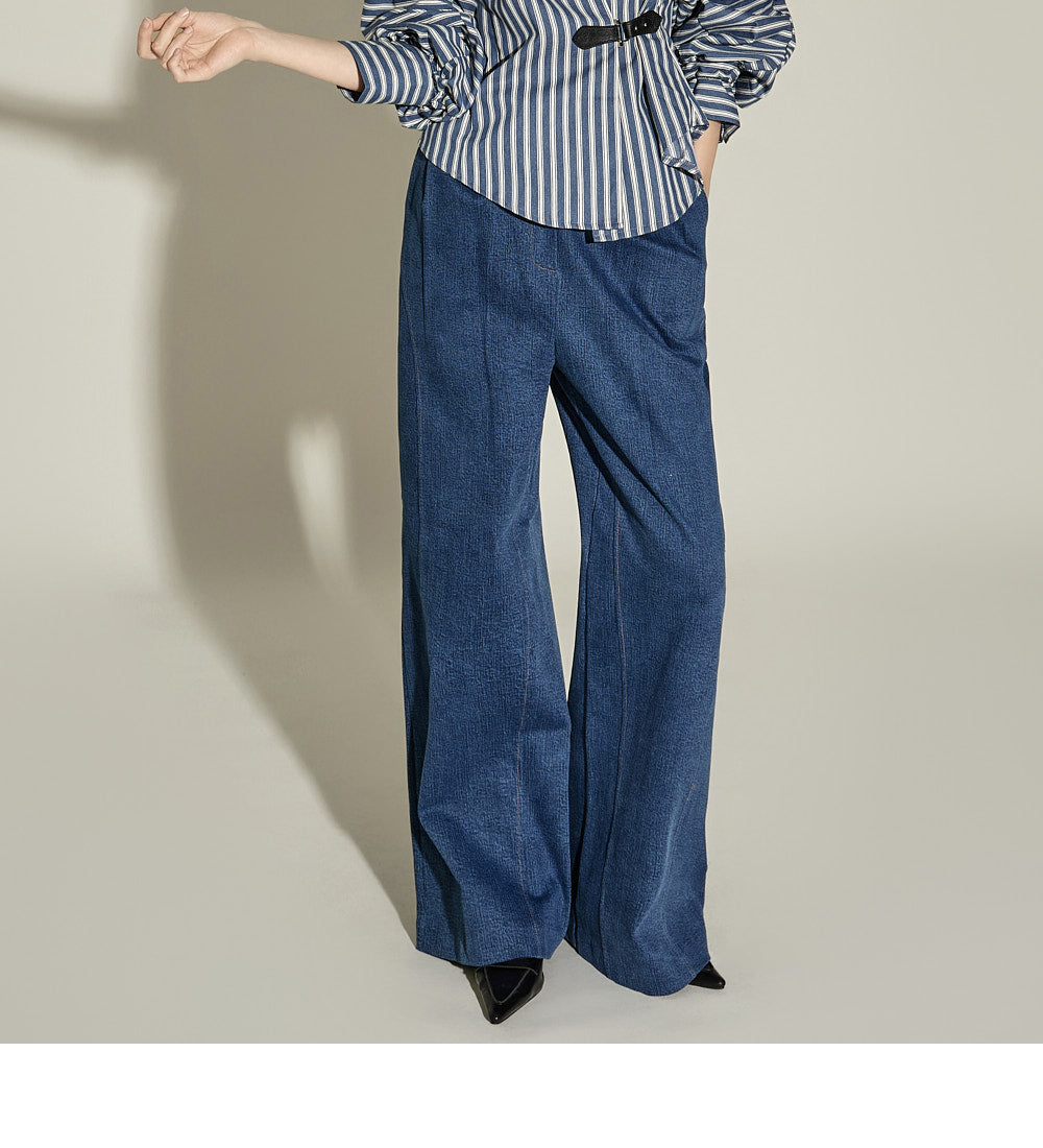 The pintuck details and wide silhouettecreate the illusion of straight, elongated legs,