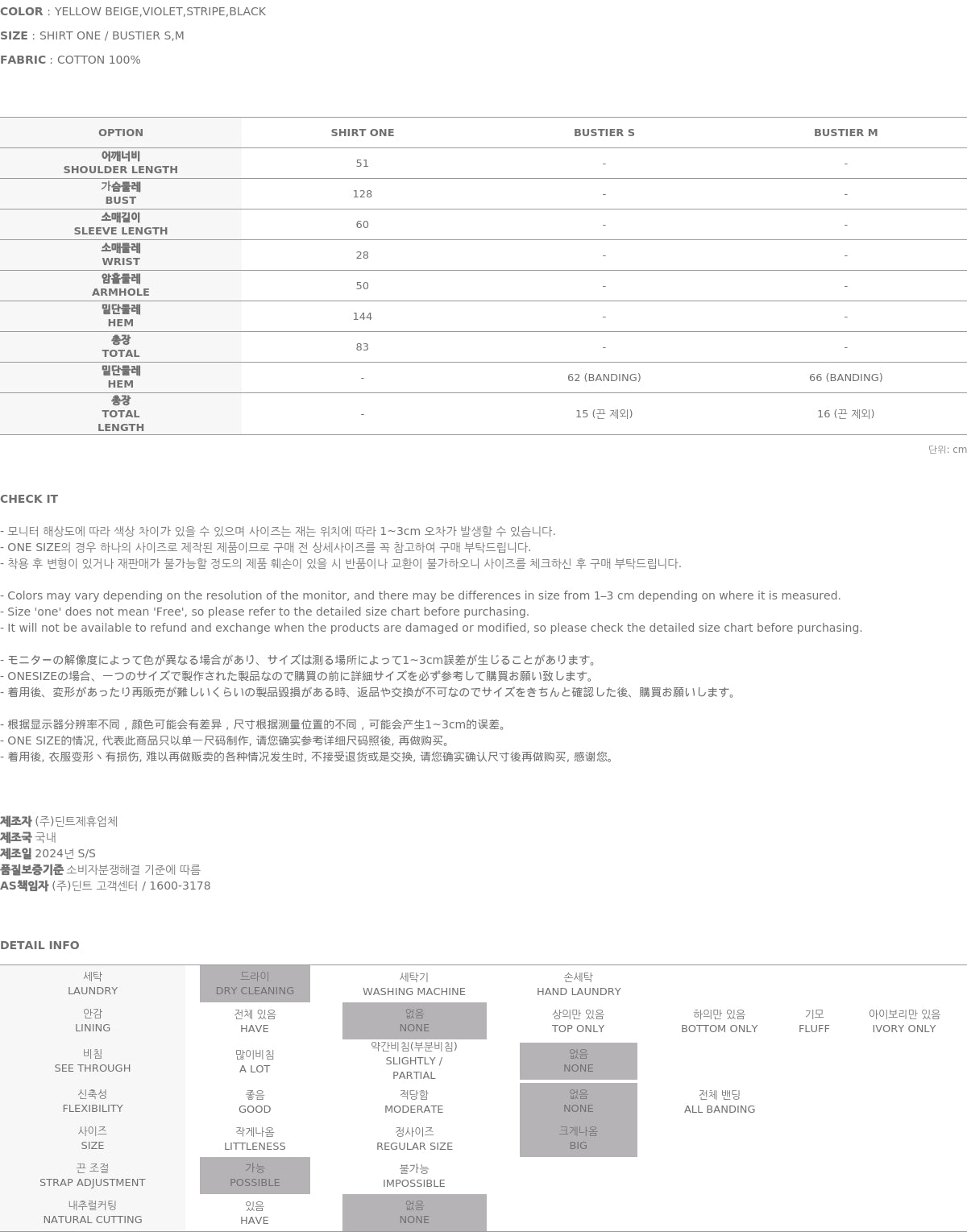 シャツはワンサイズとビスチェS/Mサイズでご用意しております。