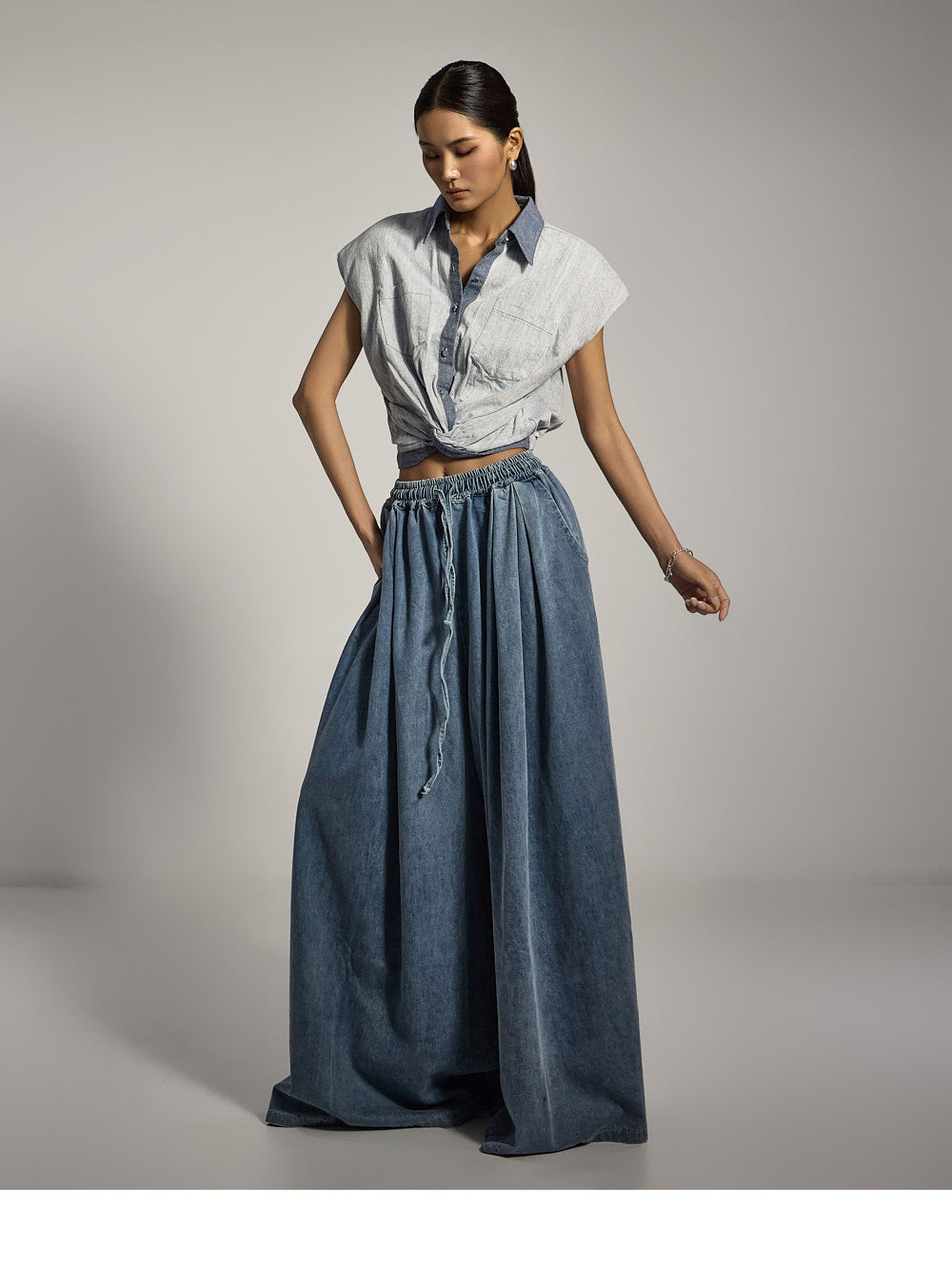 モデルは身長173cmで、DEEP BLUEのサイズONEを着用しています。