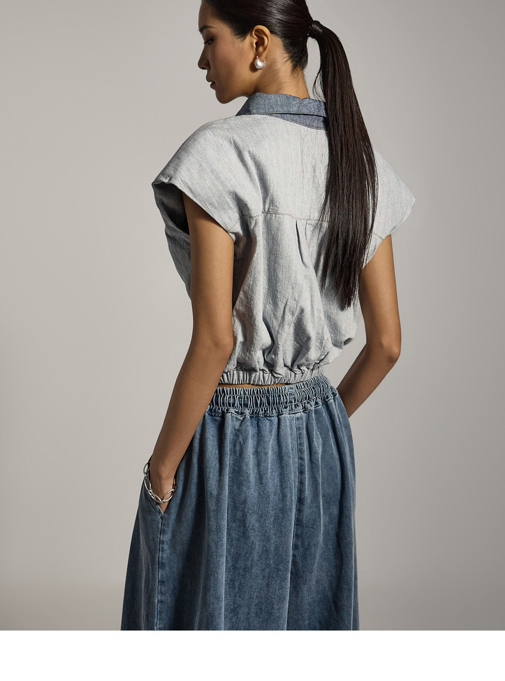 コントラストのある襟がスタイリッシュな雰囲気をプラスします。