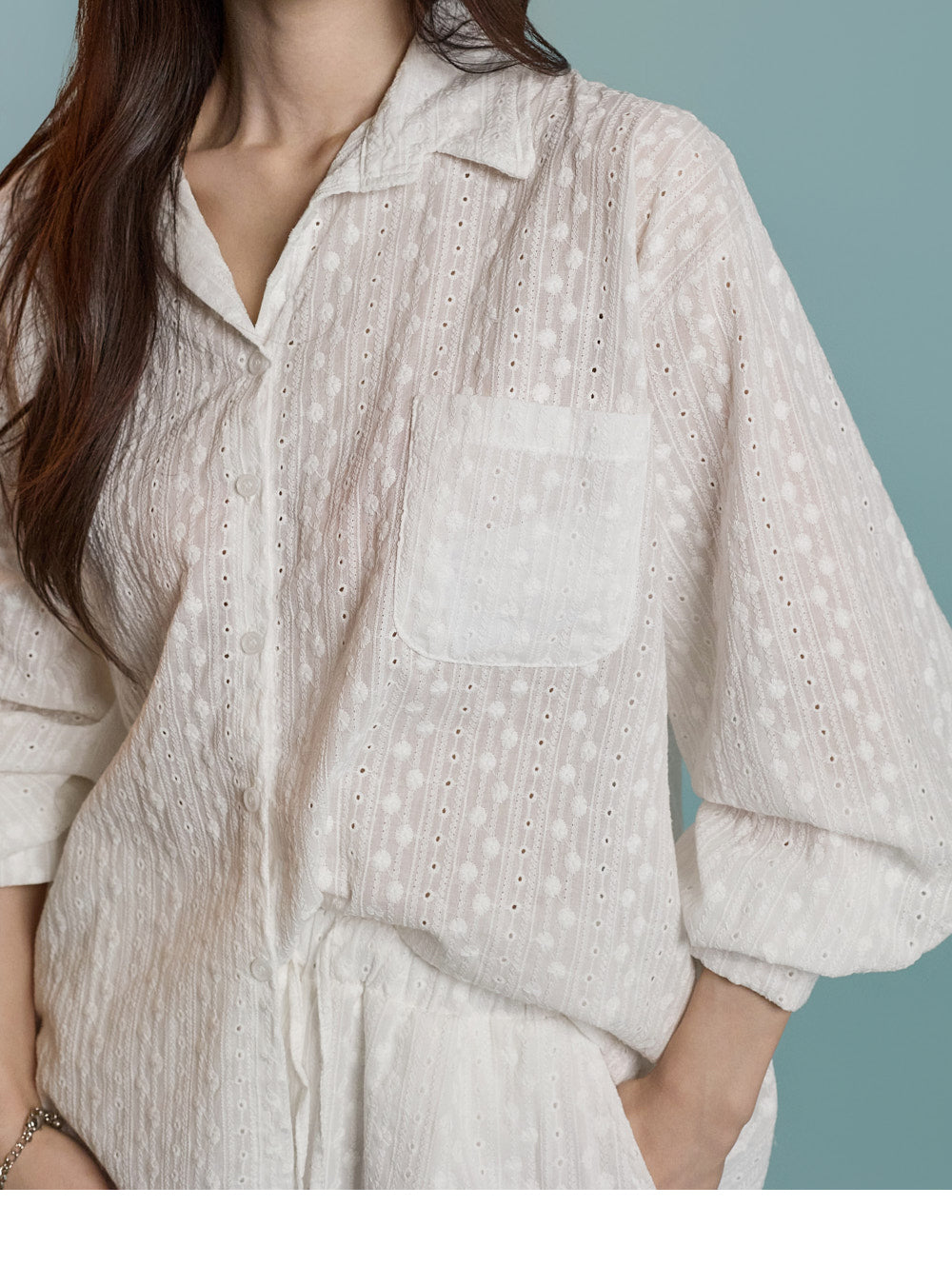 この刺繍レースのシャツは、毎日に素敵な魅力をもたらします。