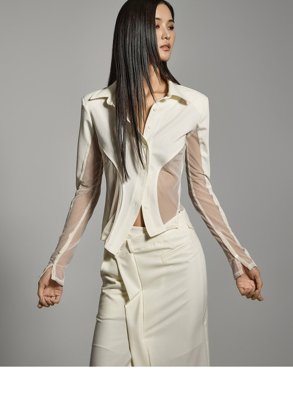 繊細な透け感のあるディテールが、ユニークなタッチでデザインを引き立てます。
