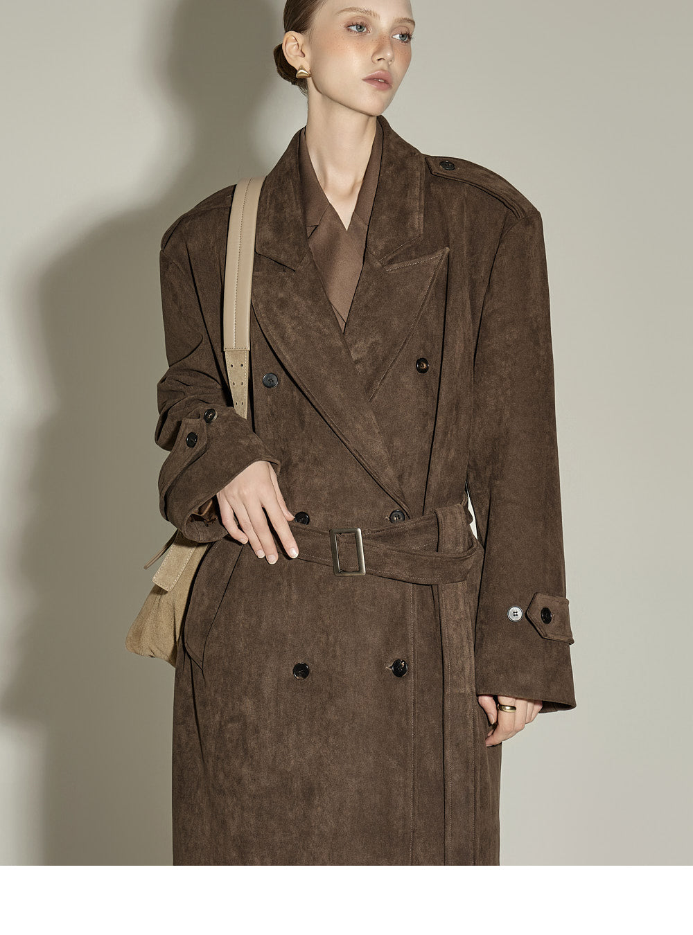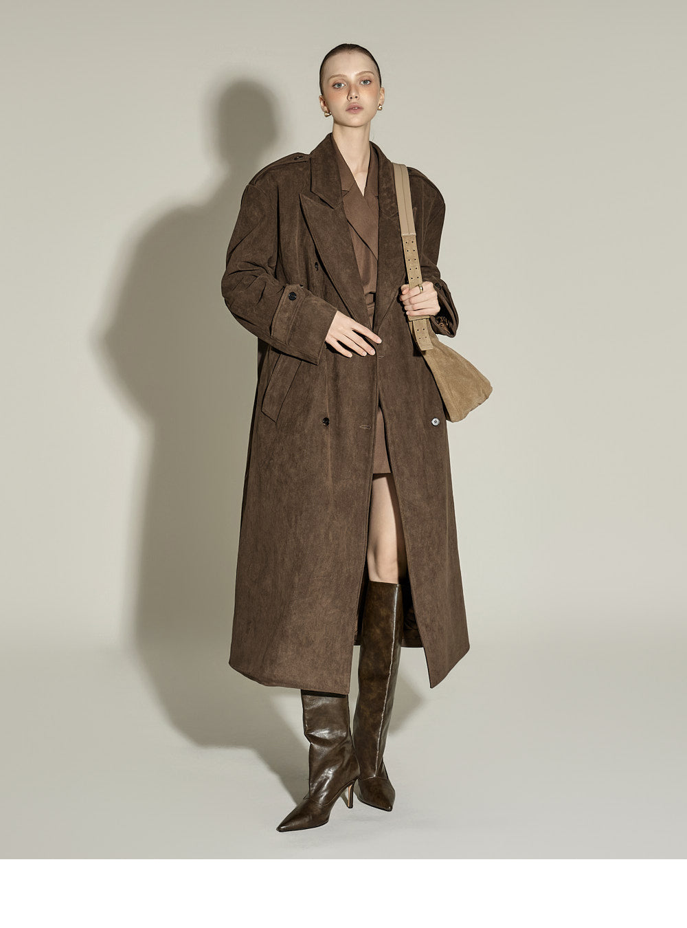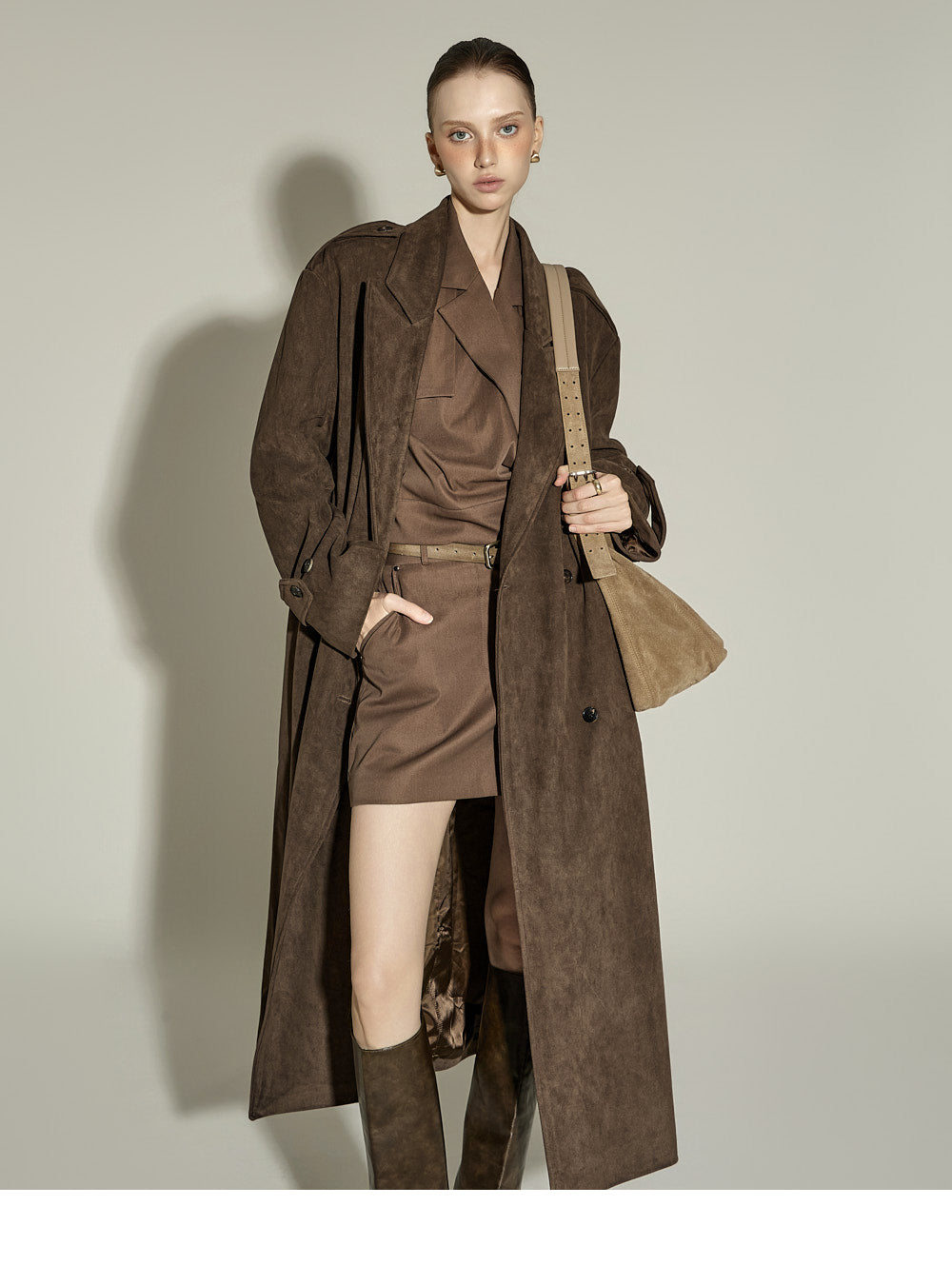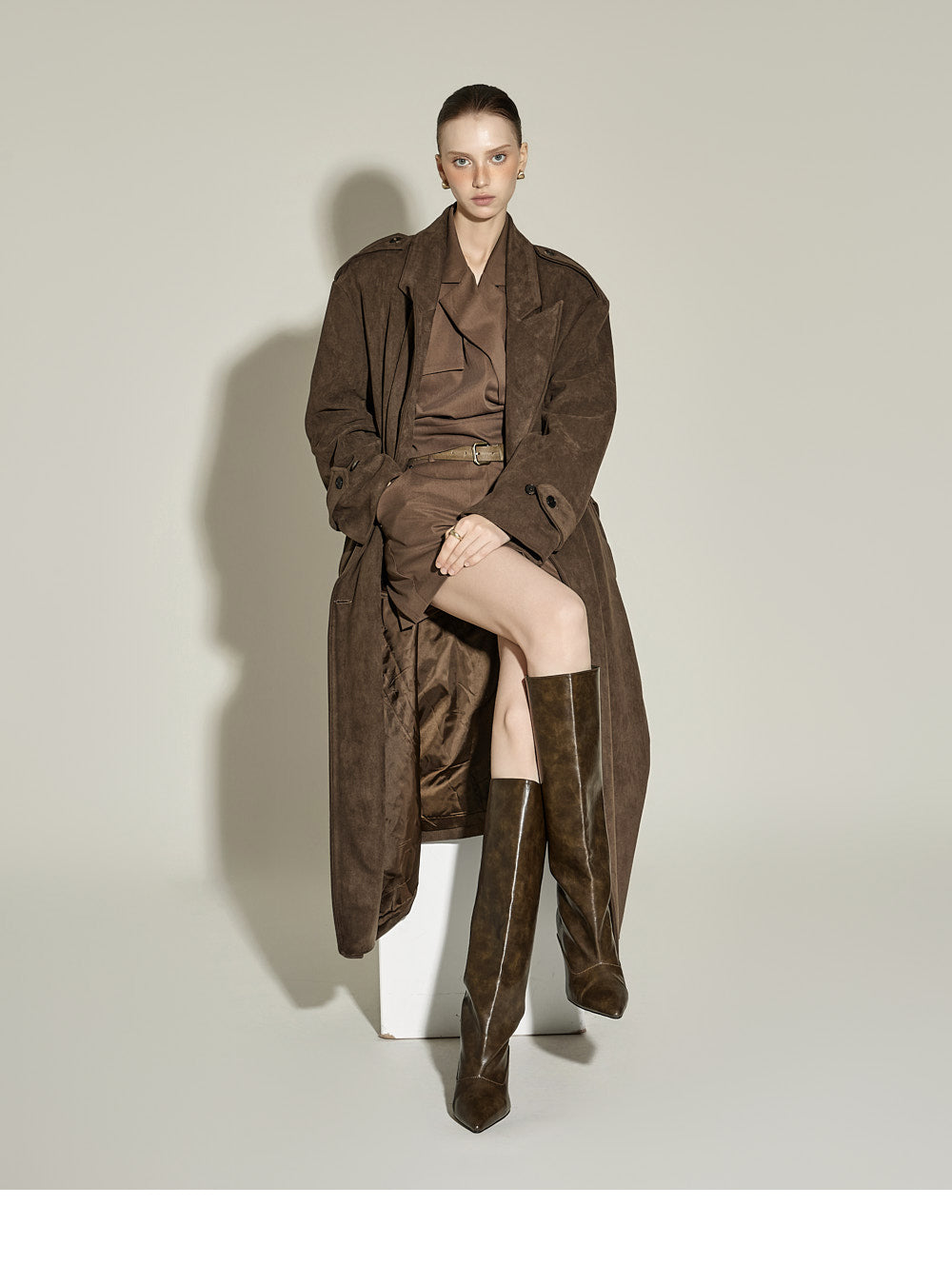 The 174cm model is wearing size ONE, color BROWN.