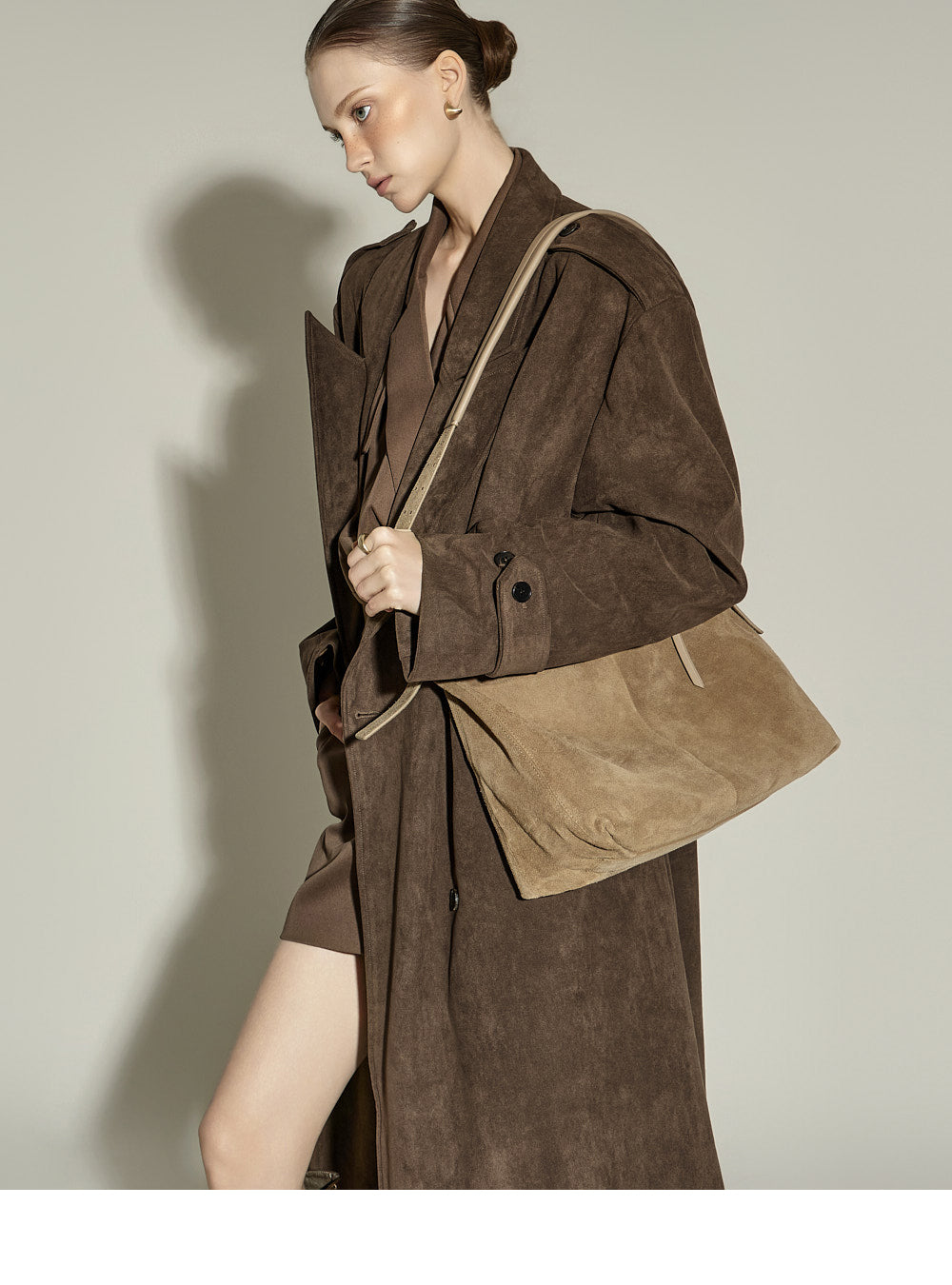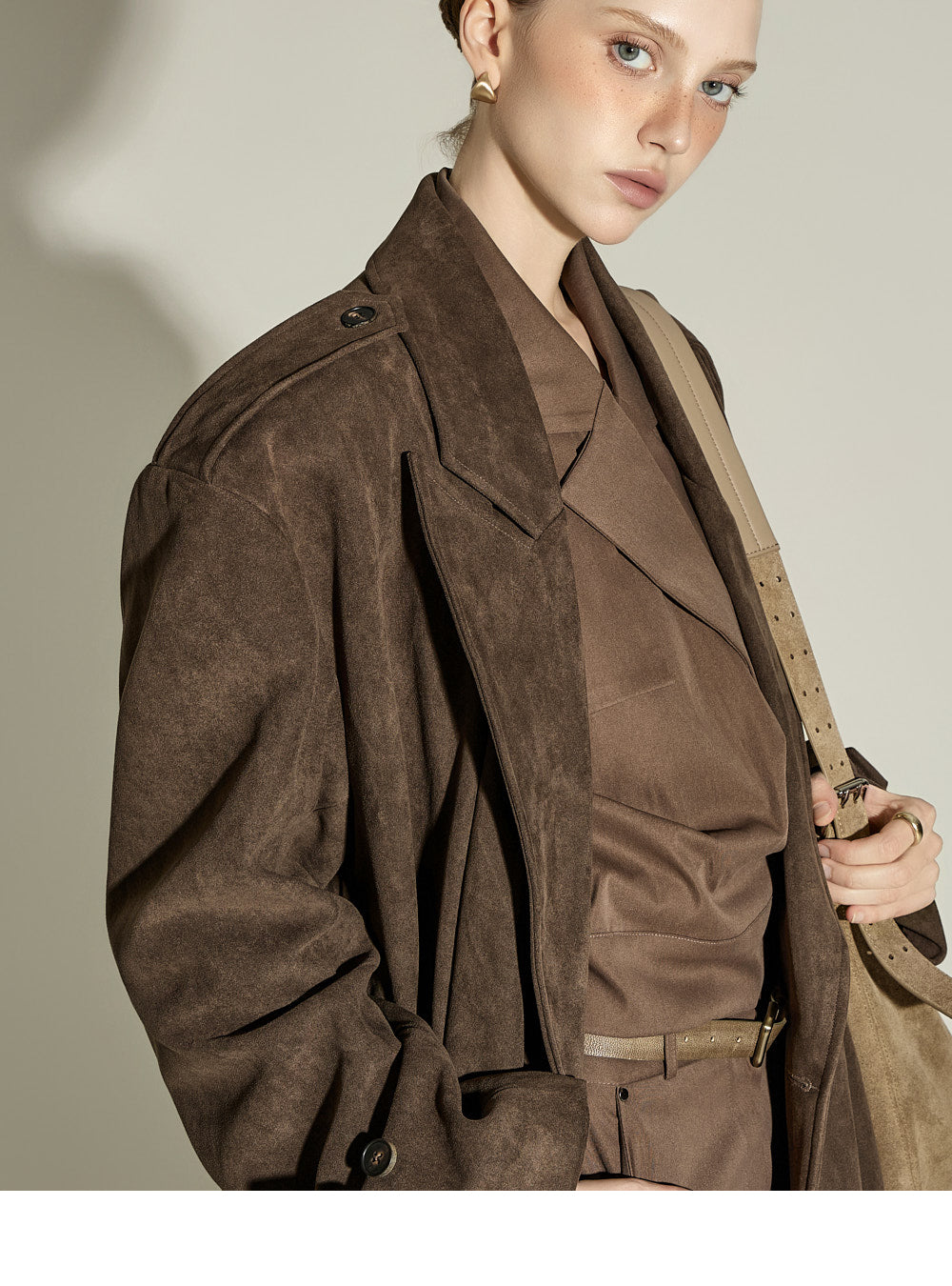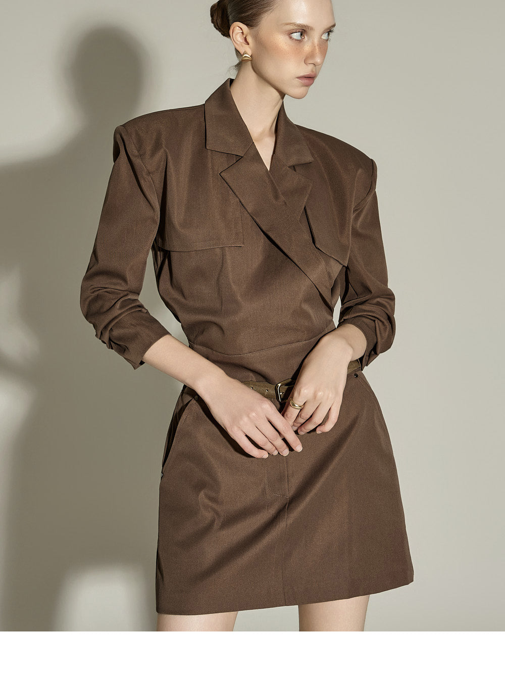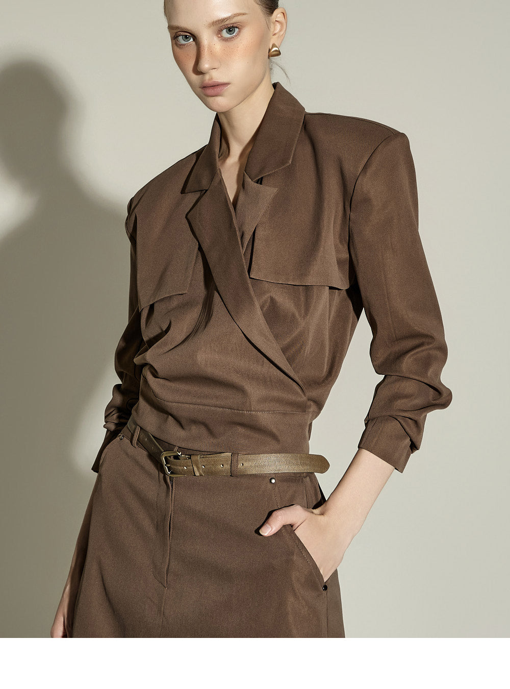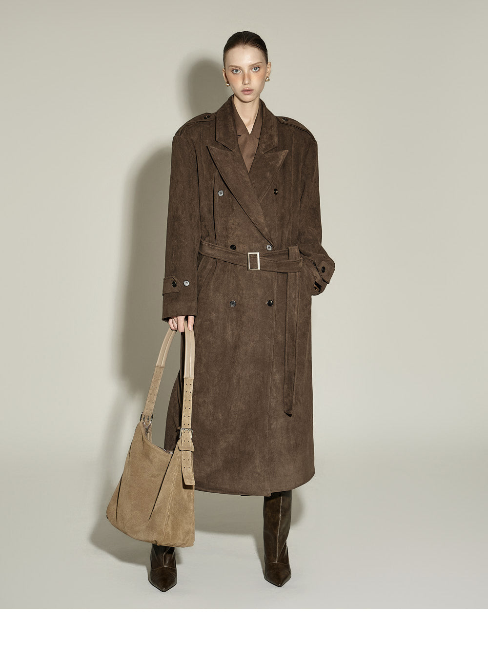 The 174cm model is wearing size ONE, color BROWN.