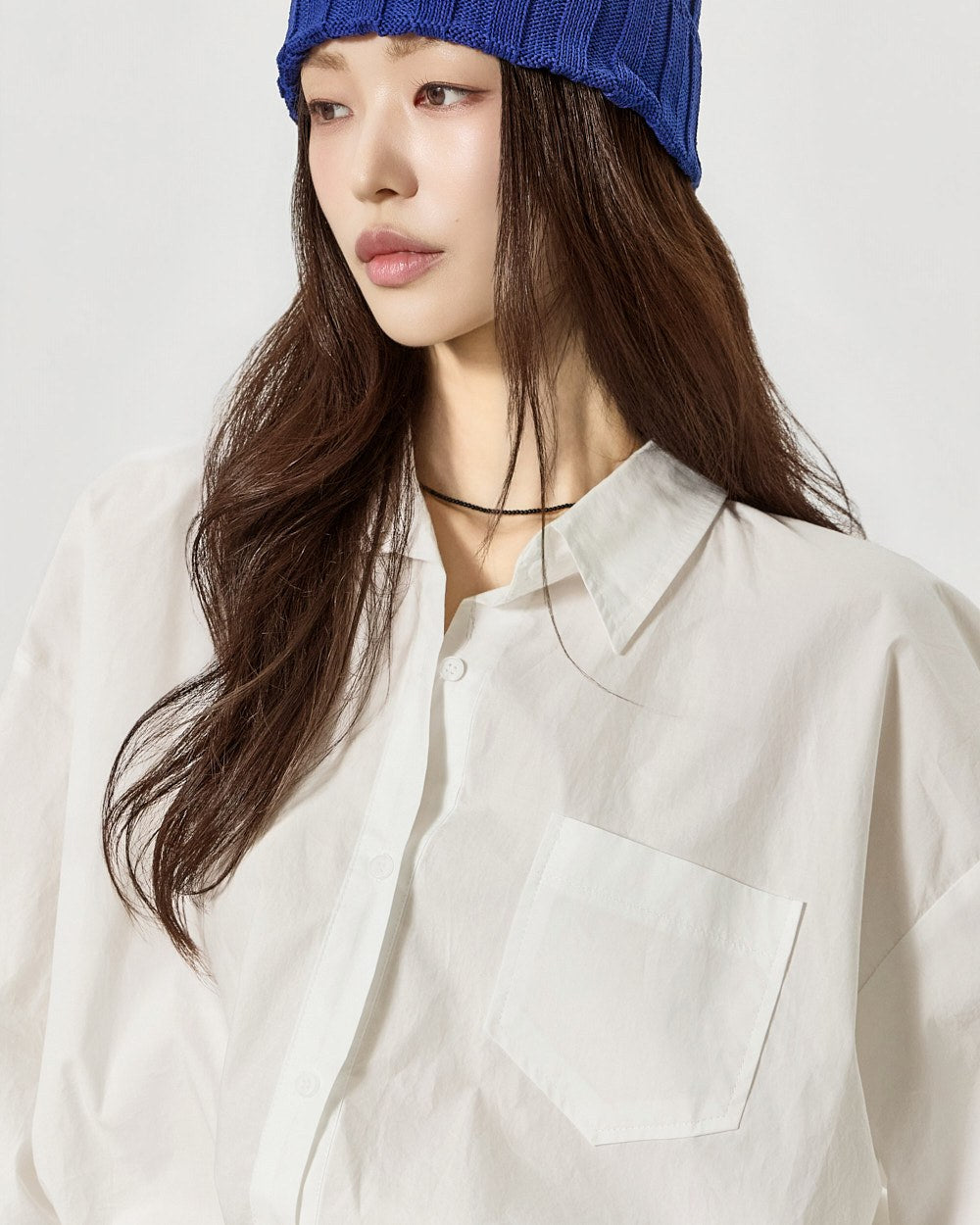 胸元のポケットディテールがカジュアルなアクセントを加え、