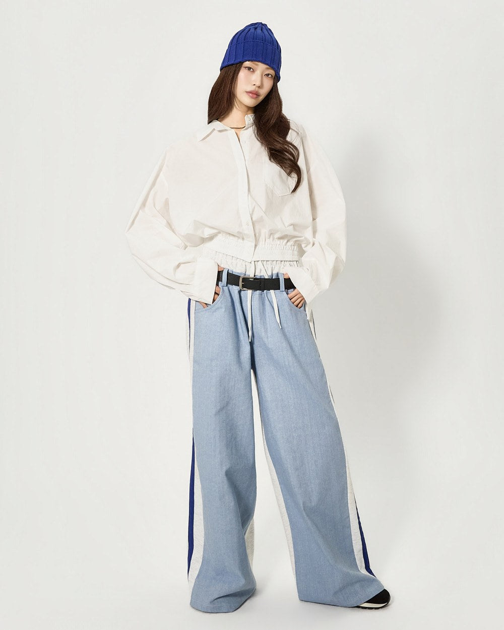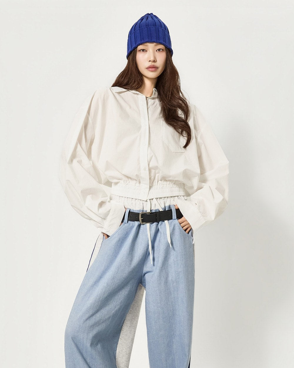 クロップド丈のルーズフィットは自然なシルエットを提供し、