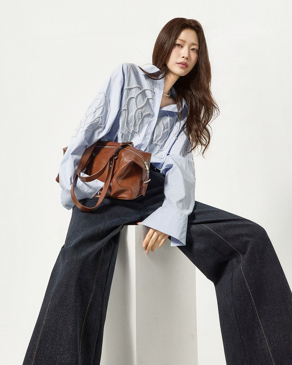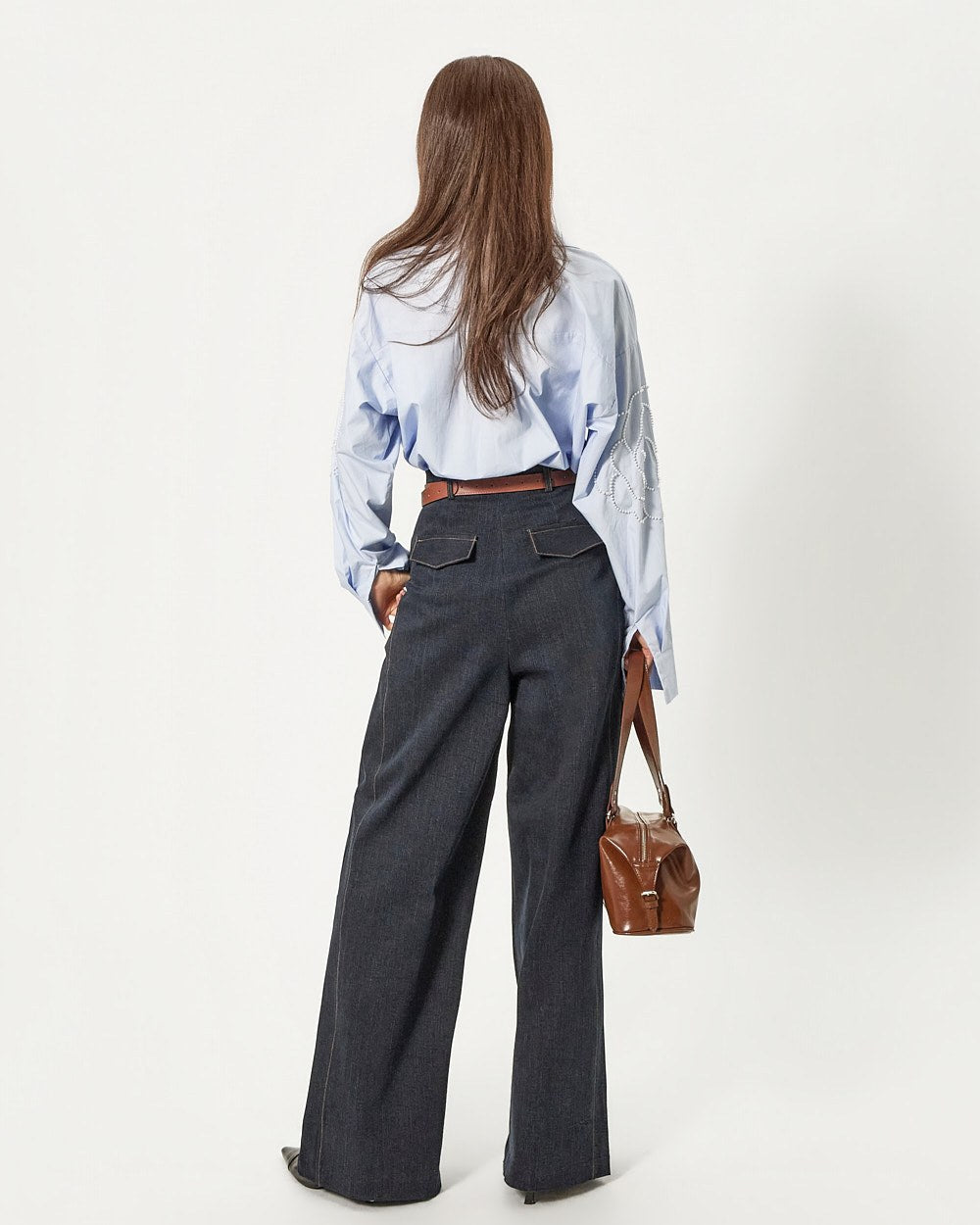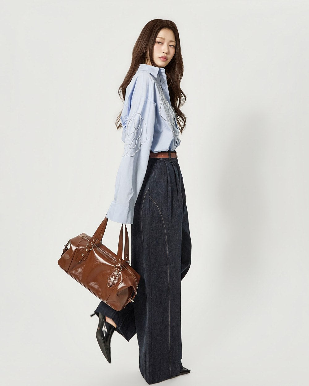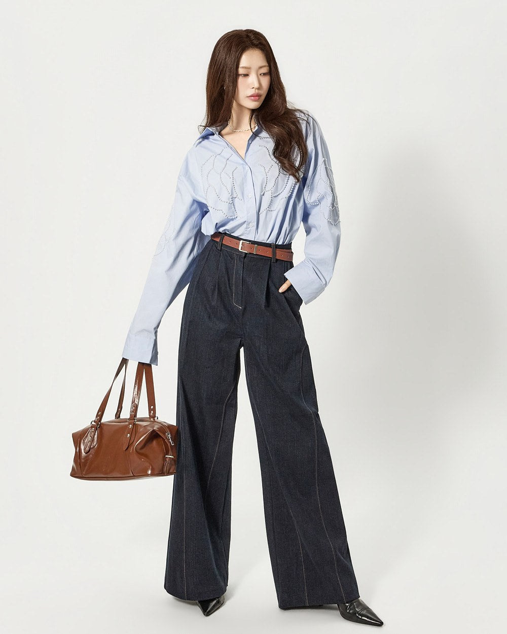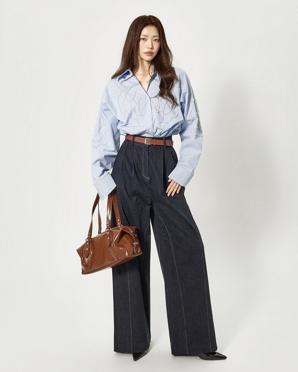 アイキャッチなパールローズのディテールが特徴的なシャツです。