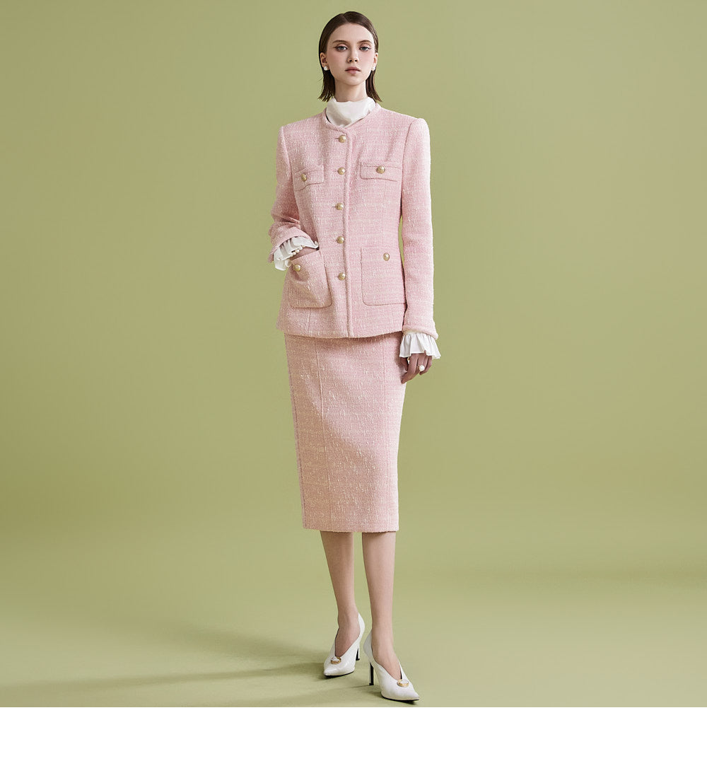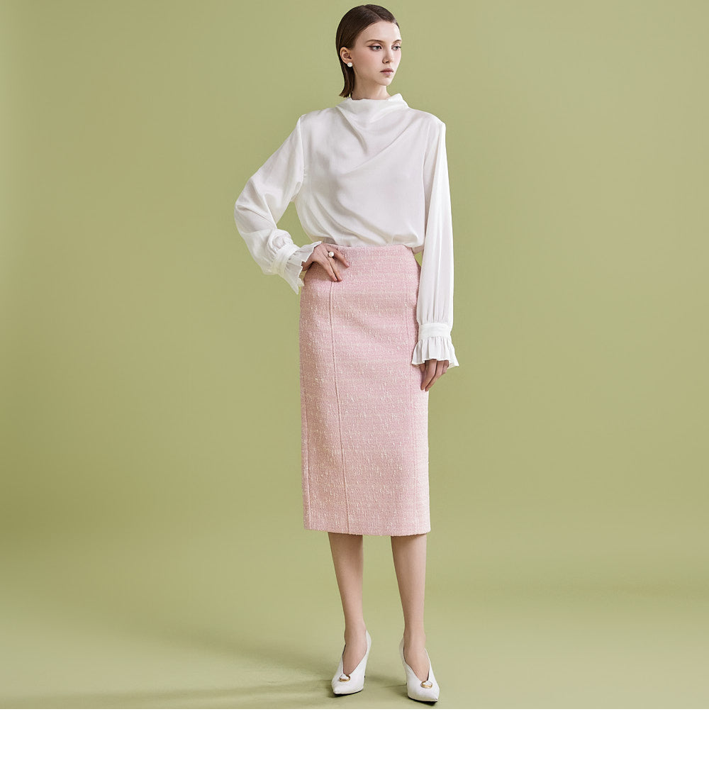様々なトップスとの相性が良く、ツイード生地でフェミニンなムードを漂わせます。