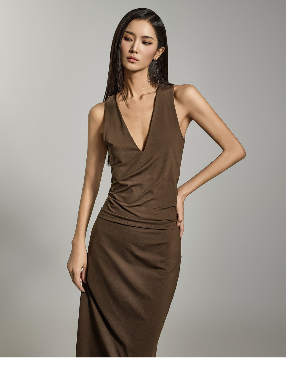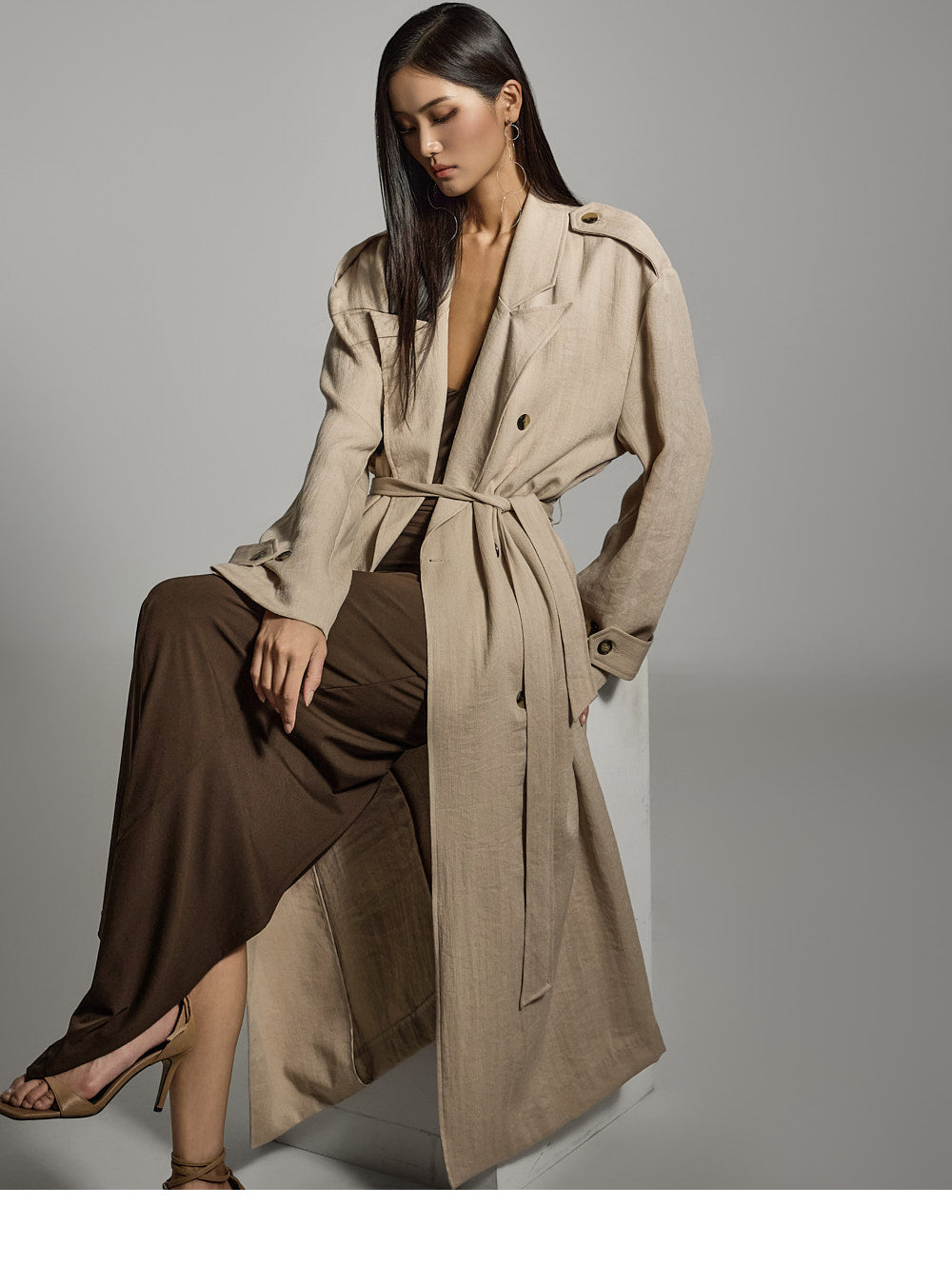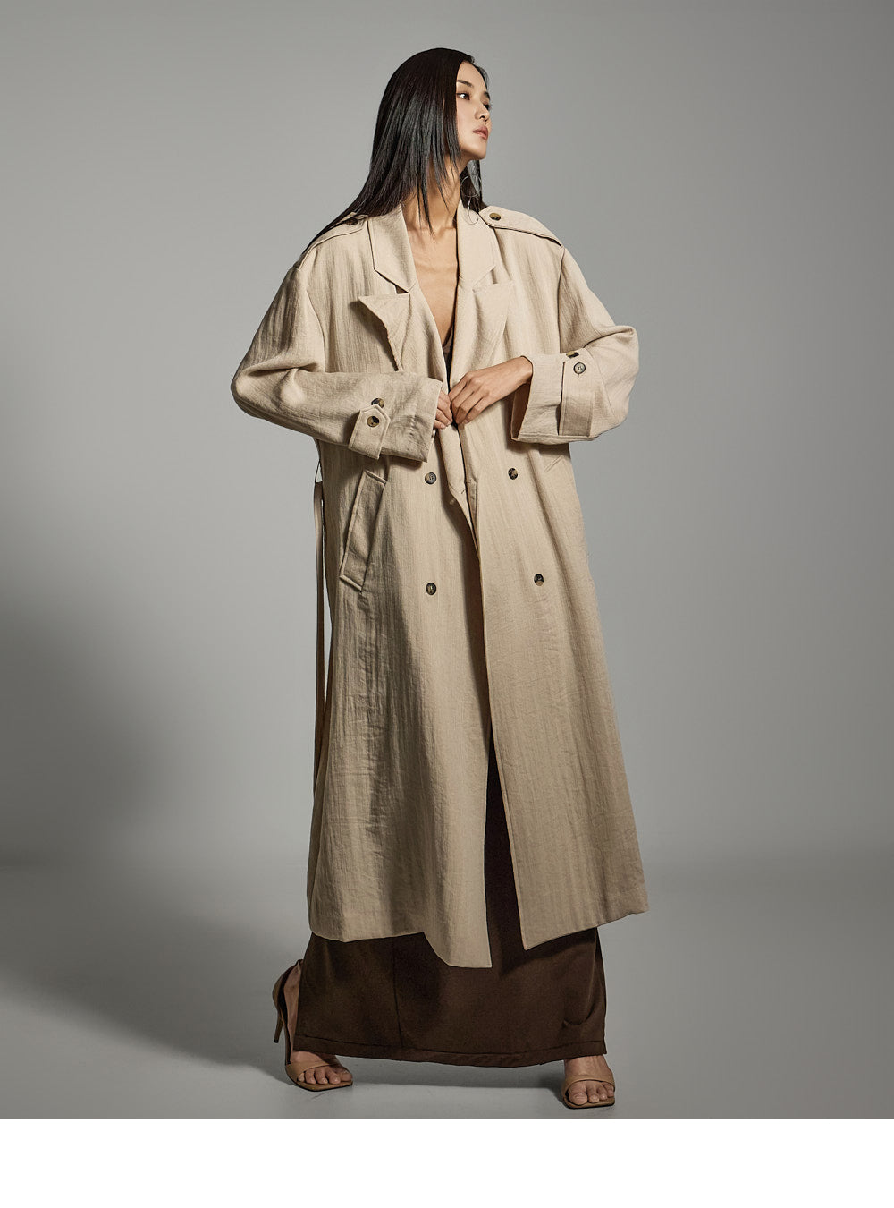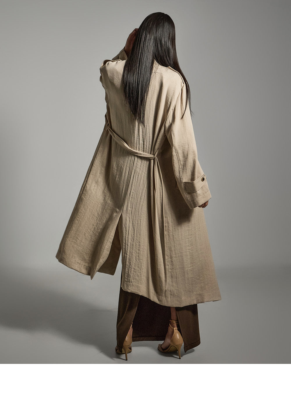 Hラインシルエットと長めの丈が、すっきりとしたスリムラインを演出します。