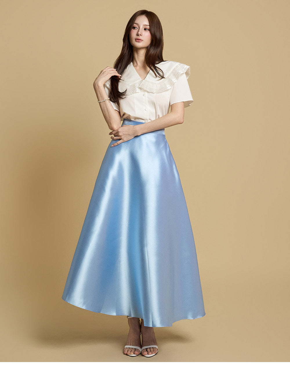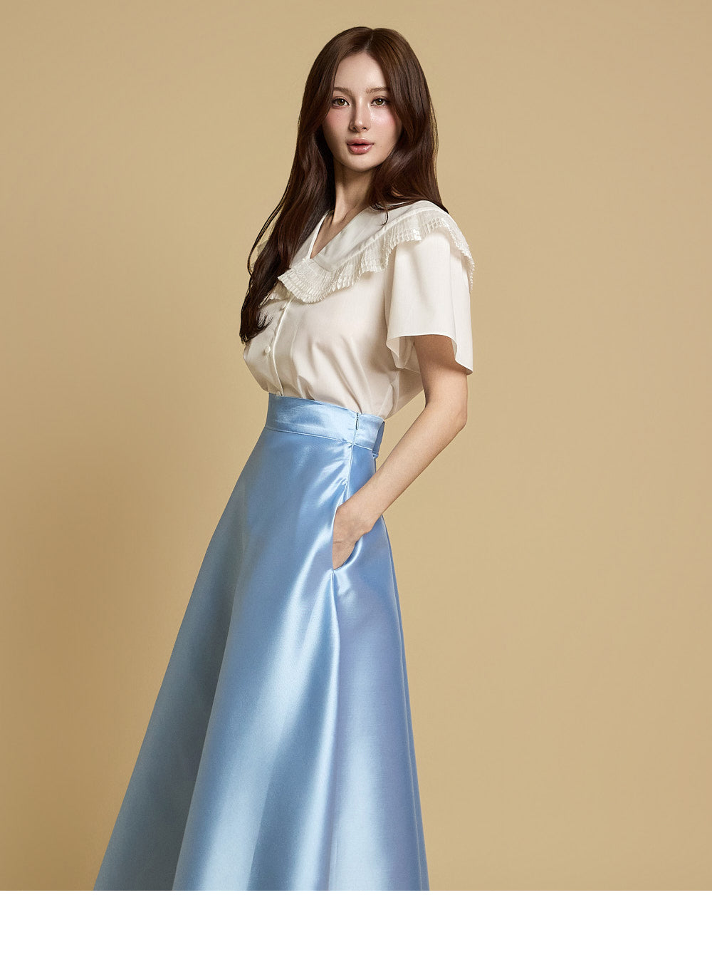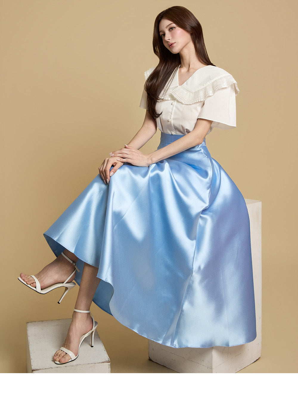モデルの身長は167cm、 SKY BLUEのSサイズを着用しています。