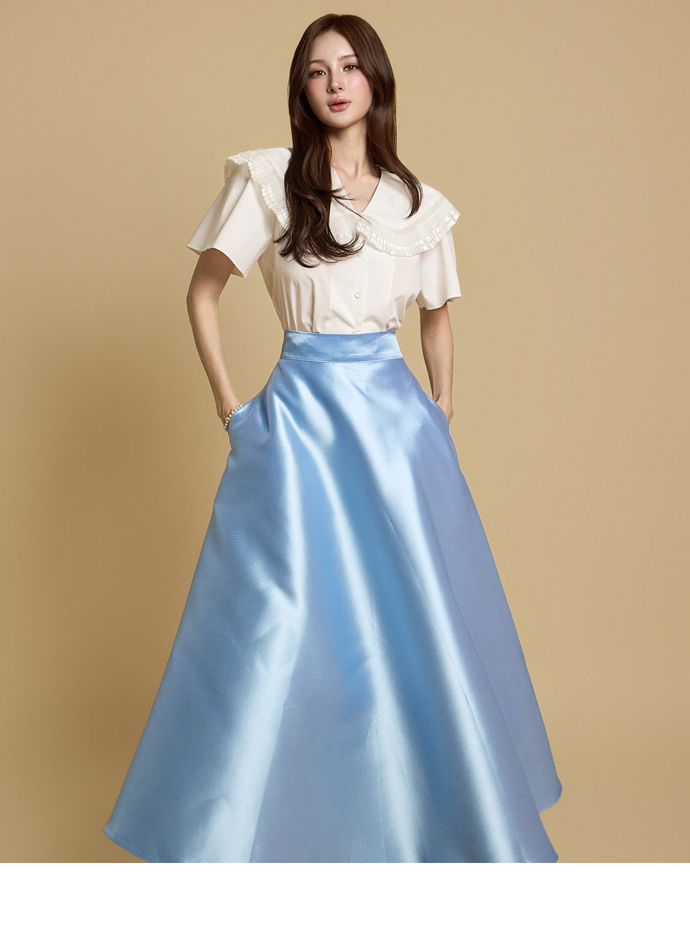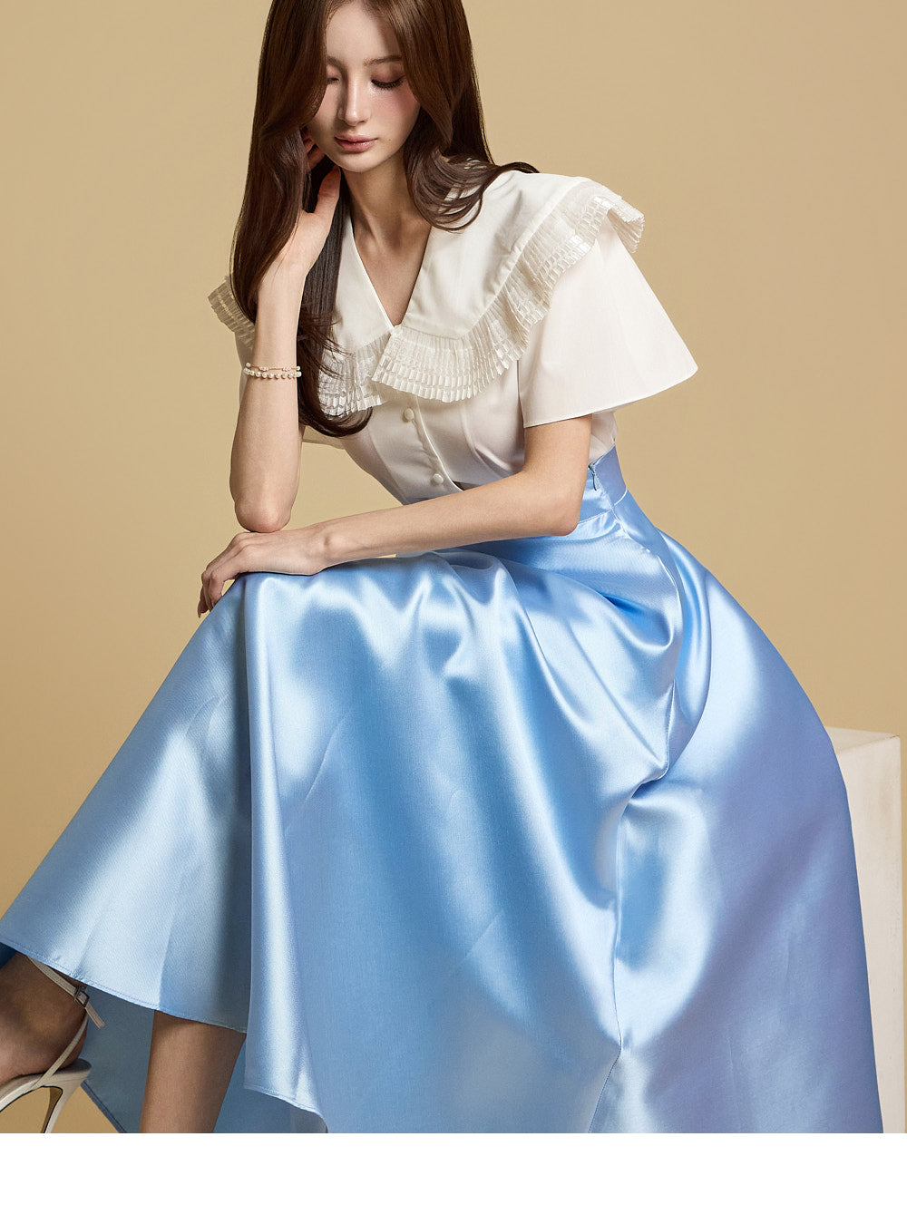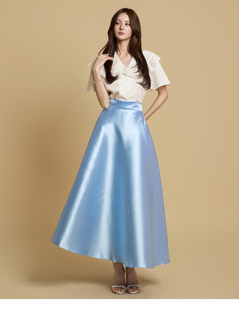 モデルの身長は167cm、 SKY BLUEのSサイズを着用しています。