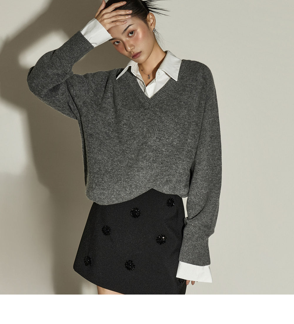 It pairs well with a variety of items, including knits, shirts, and jackets,
