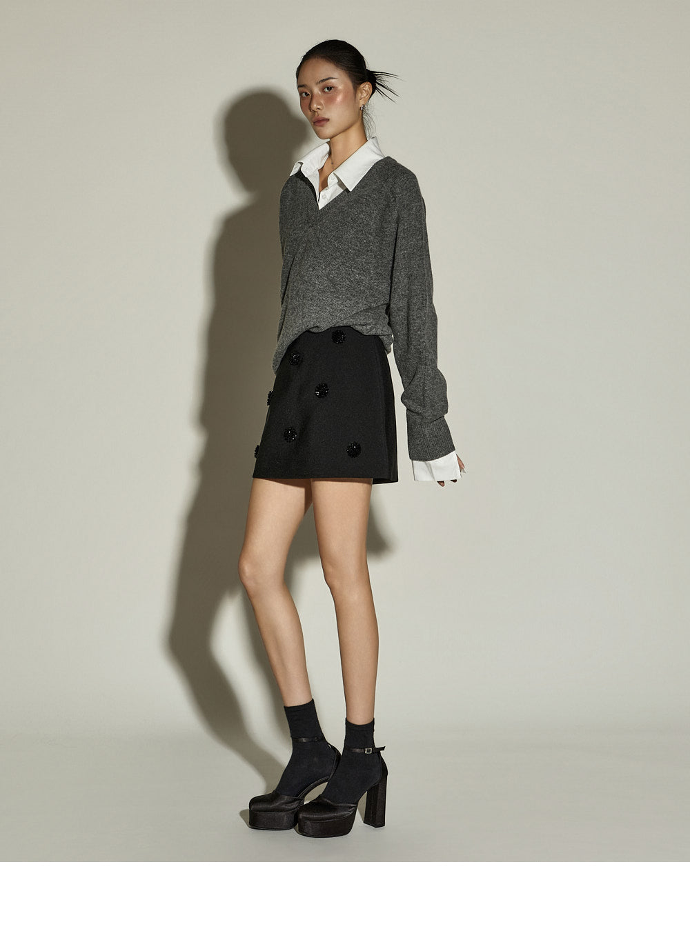 This casual floral beaded mini skirt is perfect for a casual look.