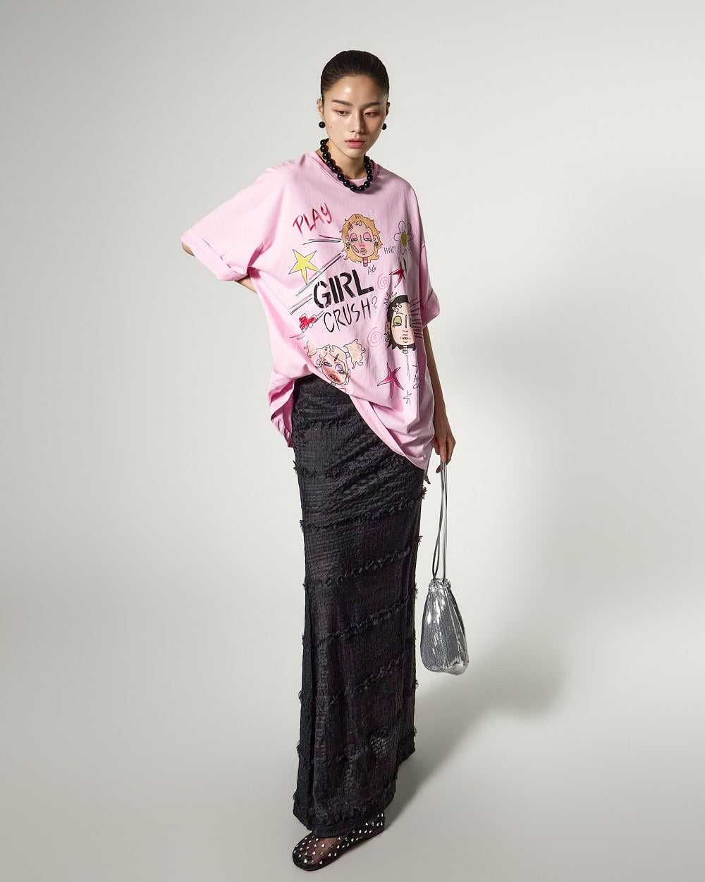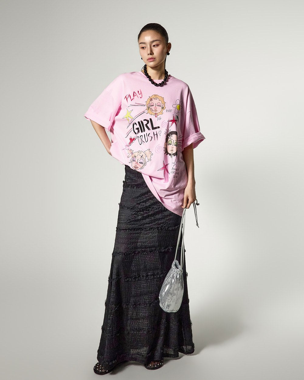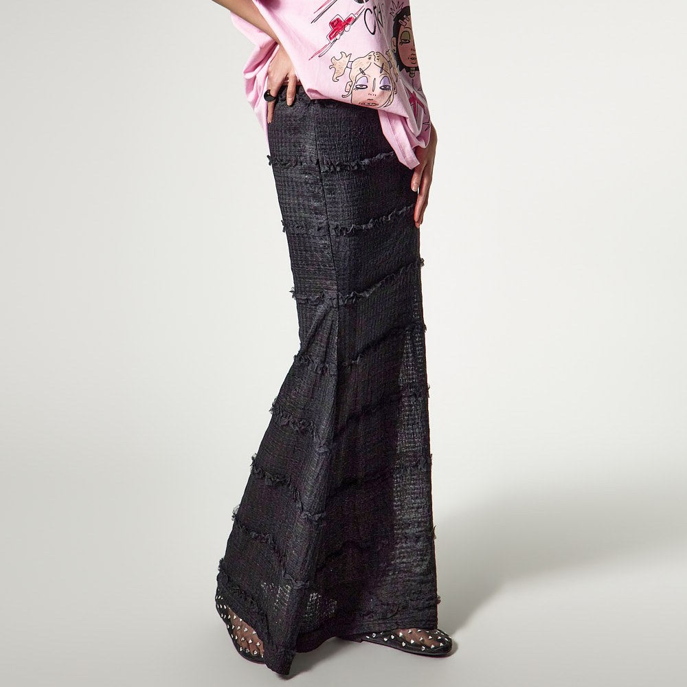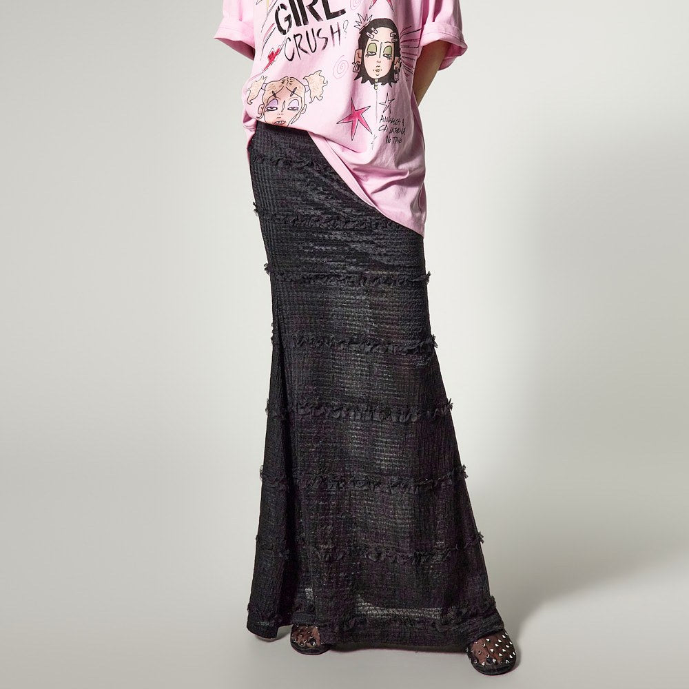 フェミニンなムードのシャーリングマーメイドスカートです。
