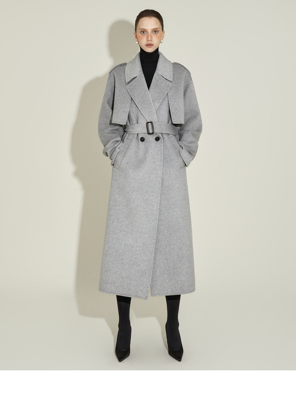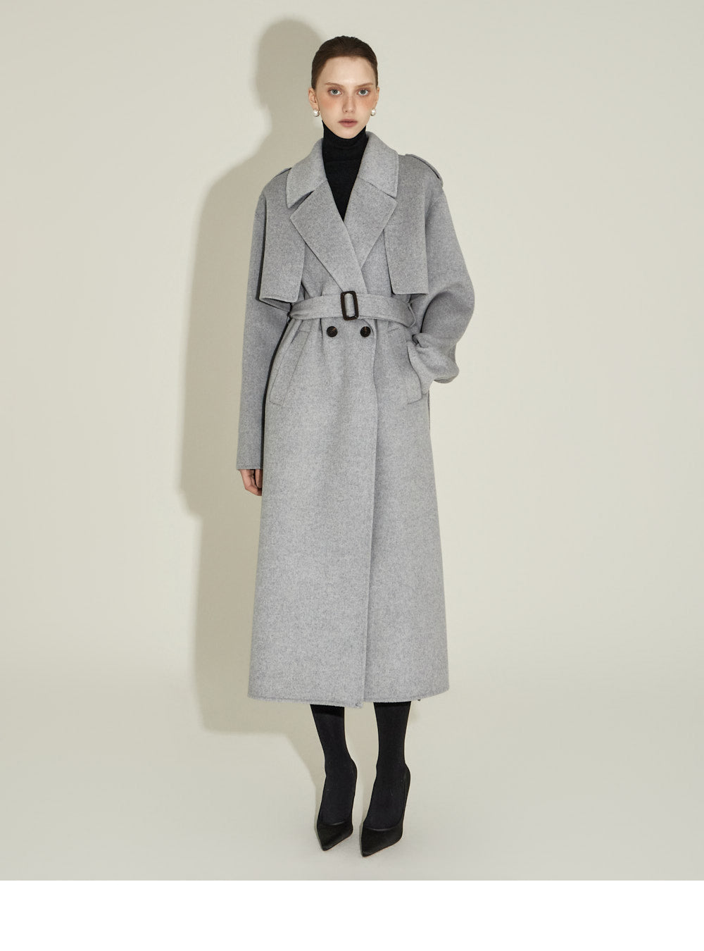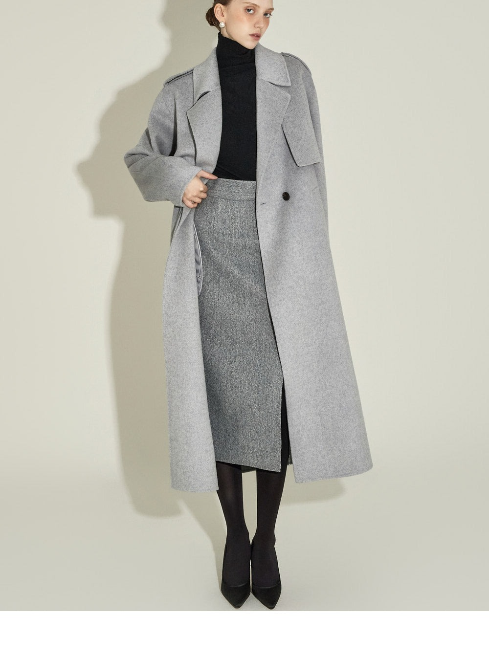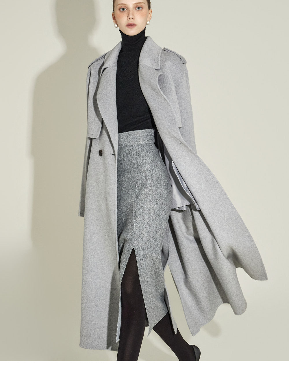 and the high waistline creates a long silhouette.