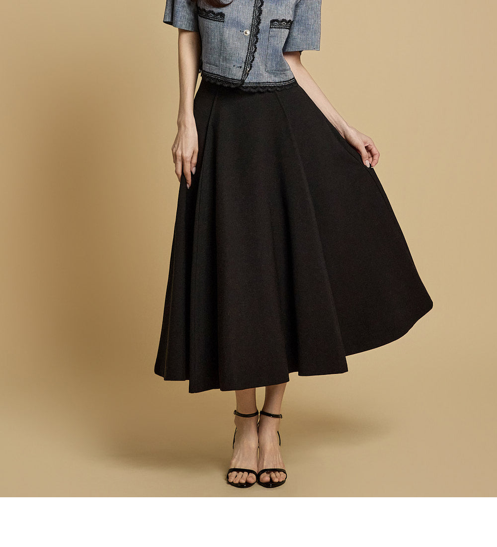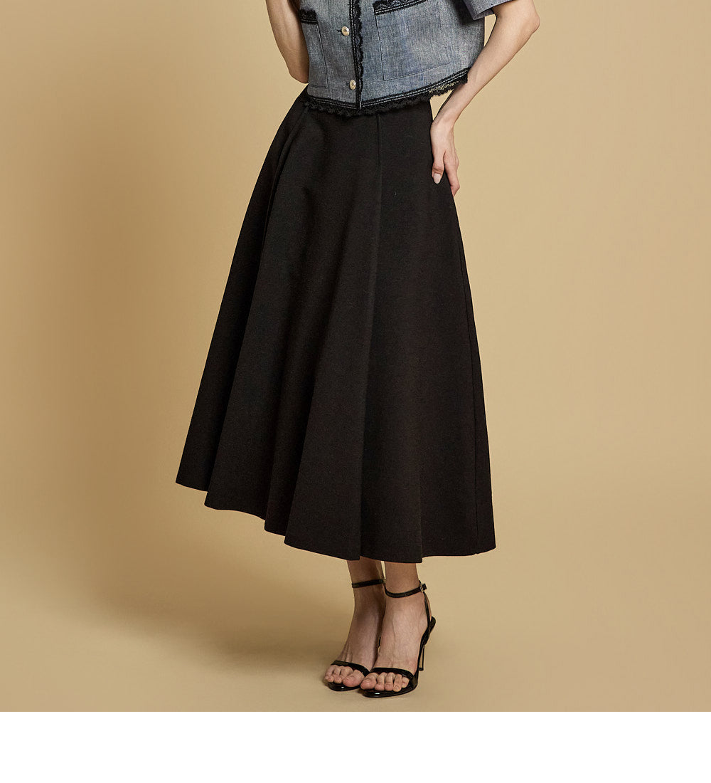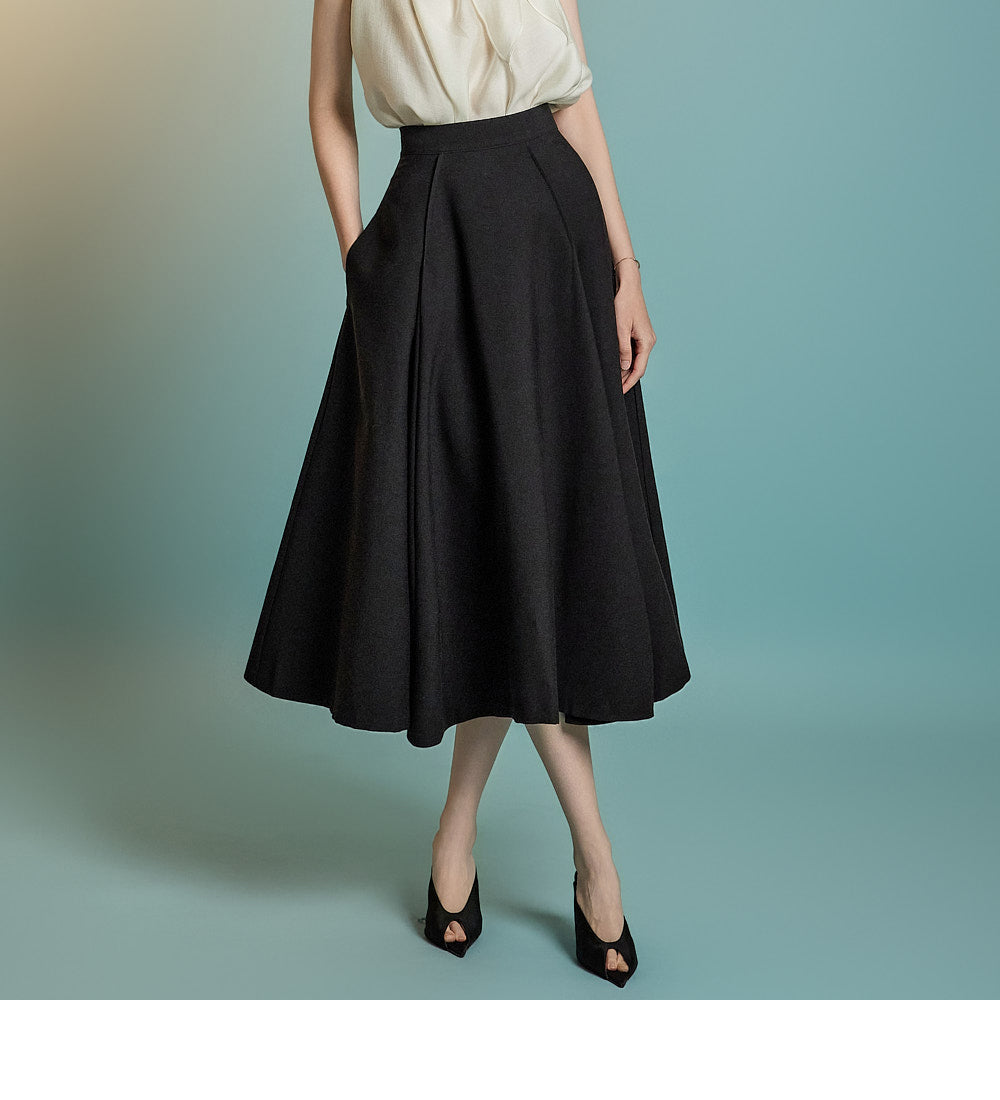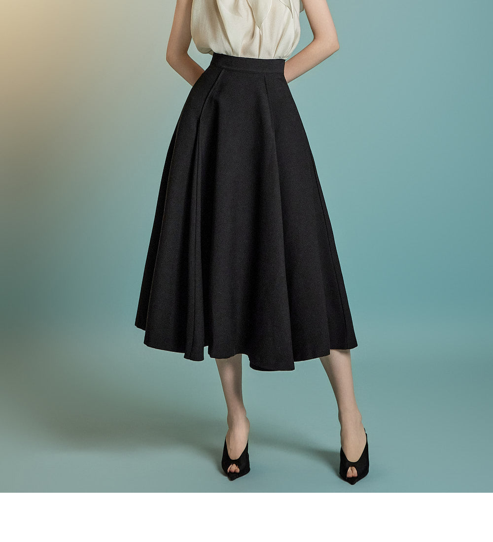 フレアラインで体型カバーだけでなく、フェミニンな装いにも。着心地の良いミディ丈です。