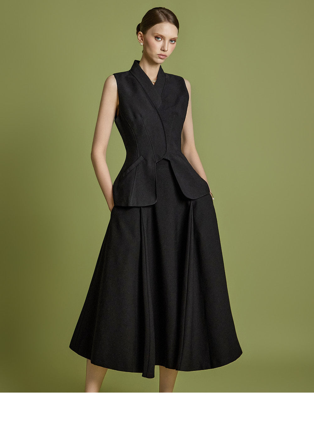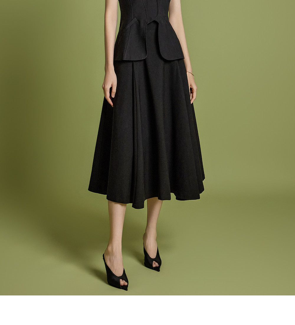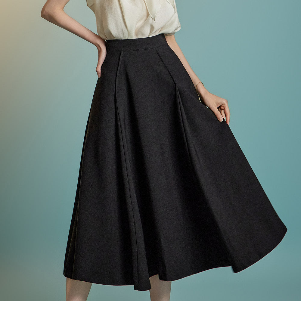フレアラインで体型カバーだけでなく、フェミニンな装いにも。着心地の良いミディ丈です。