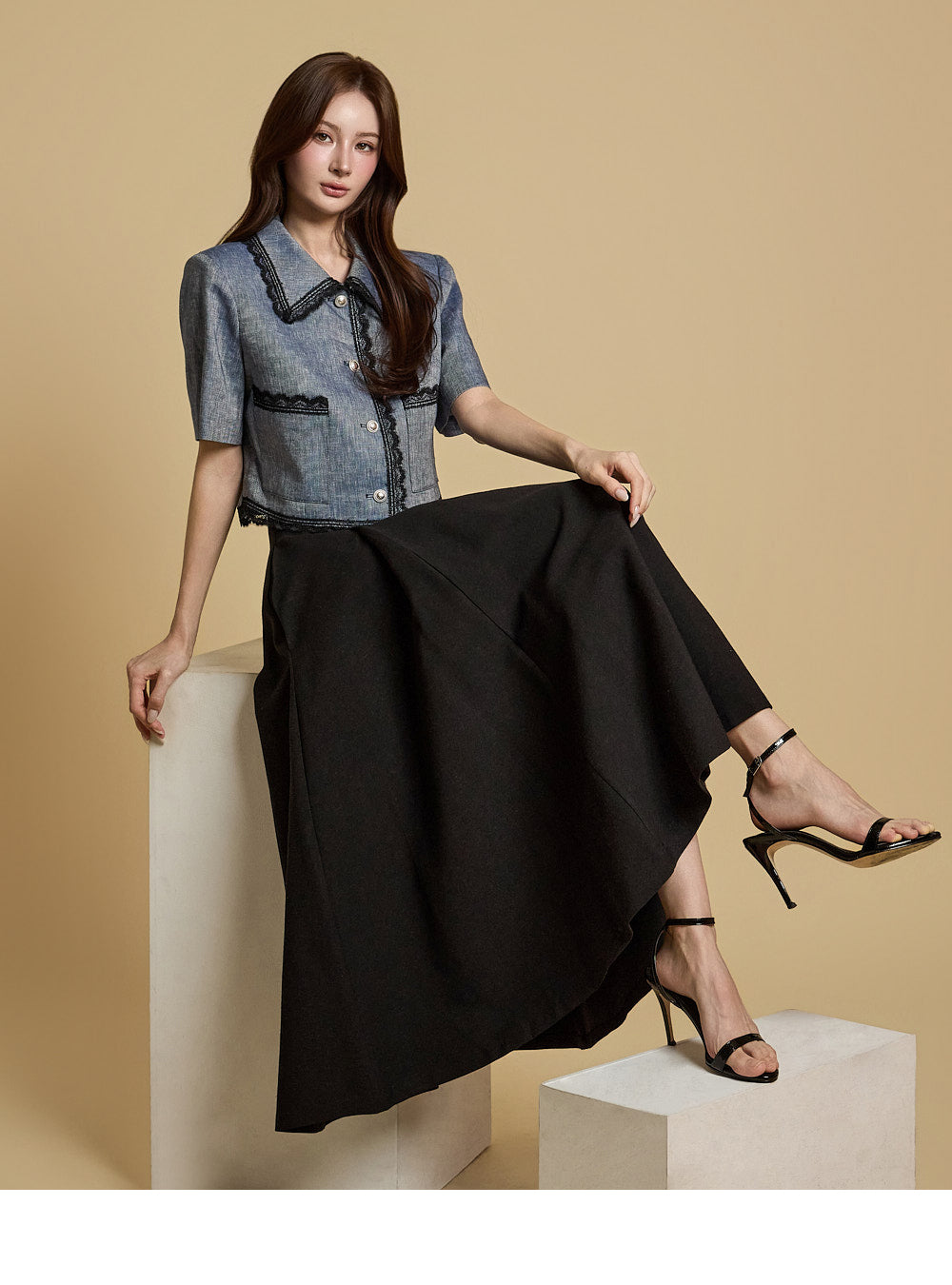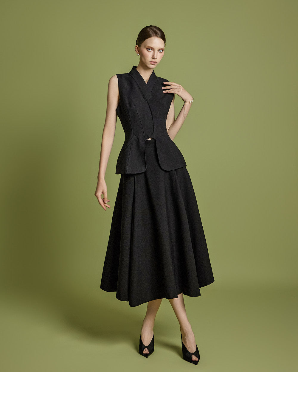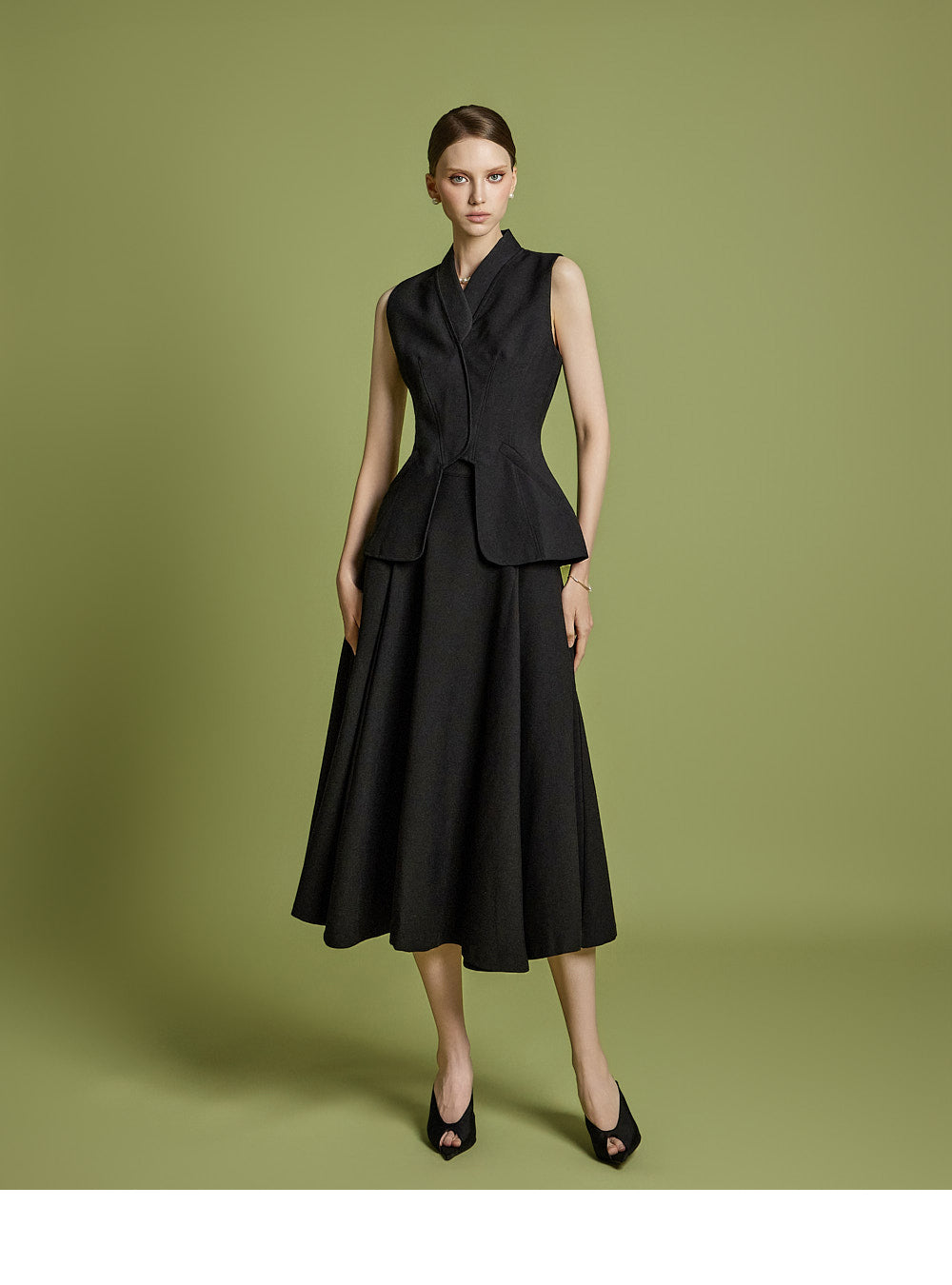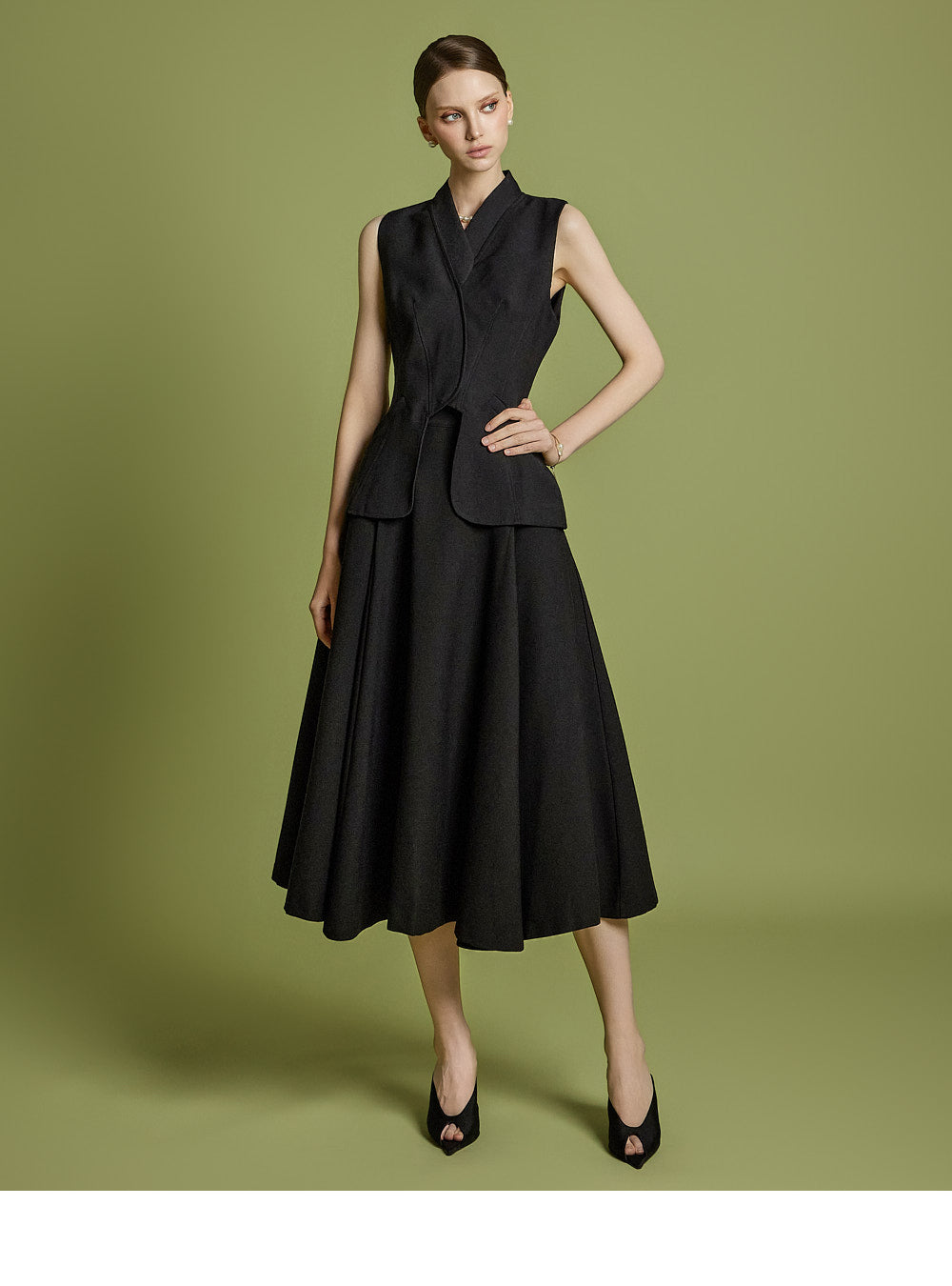 フレアラインで体型カバーだけでなく、フェミニンな装いにも。着心地の良いミディ丈です。