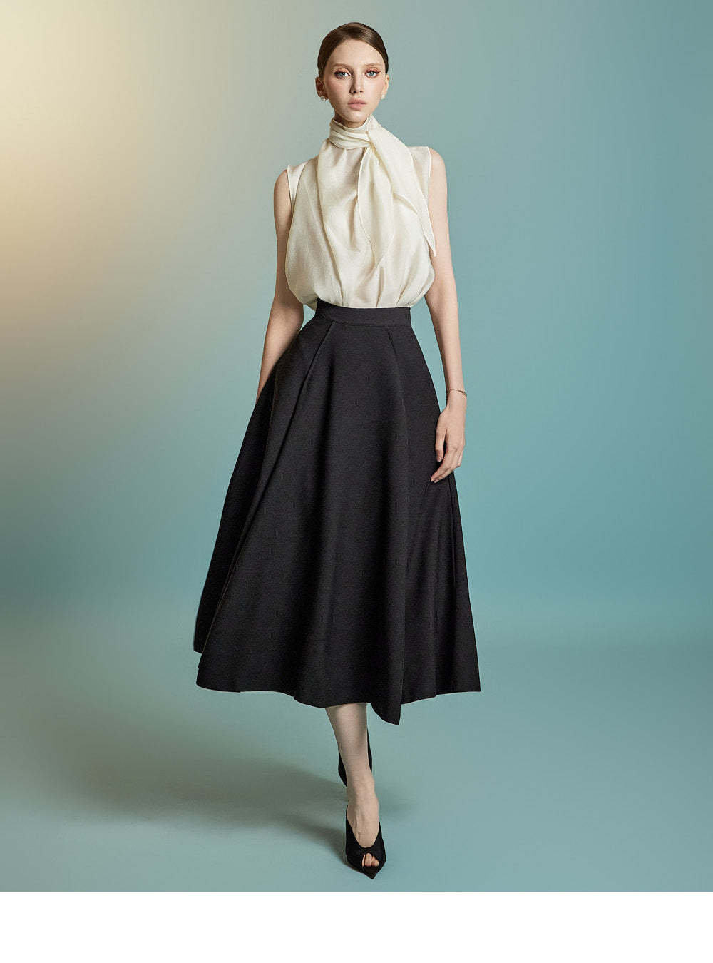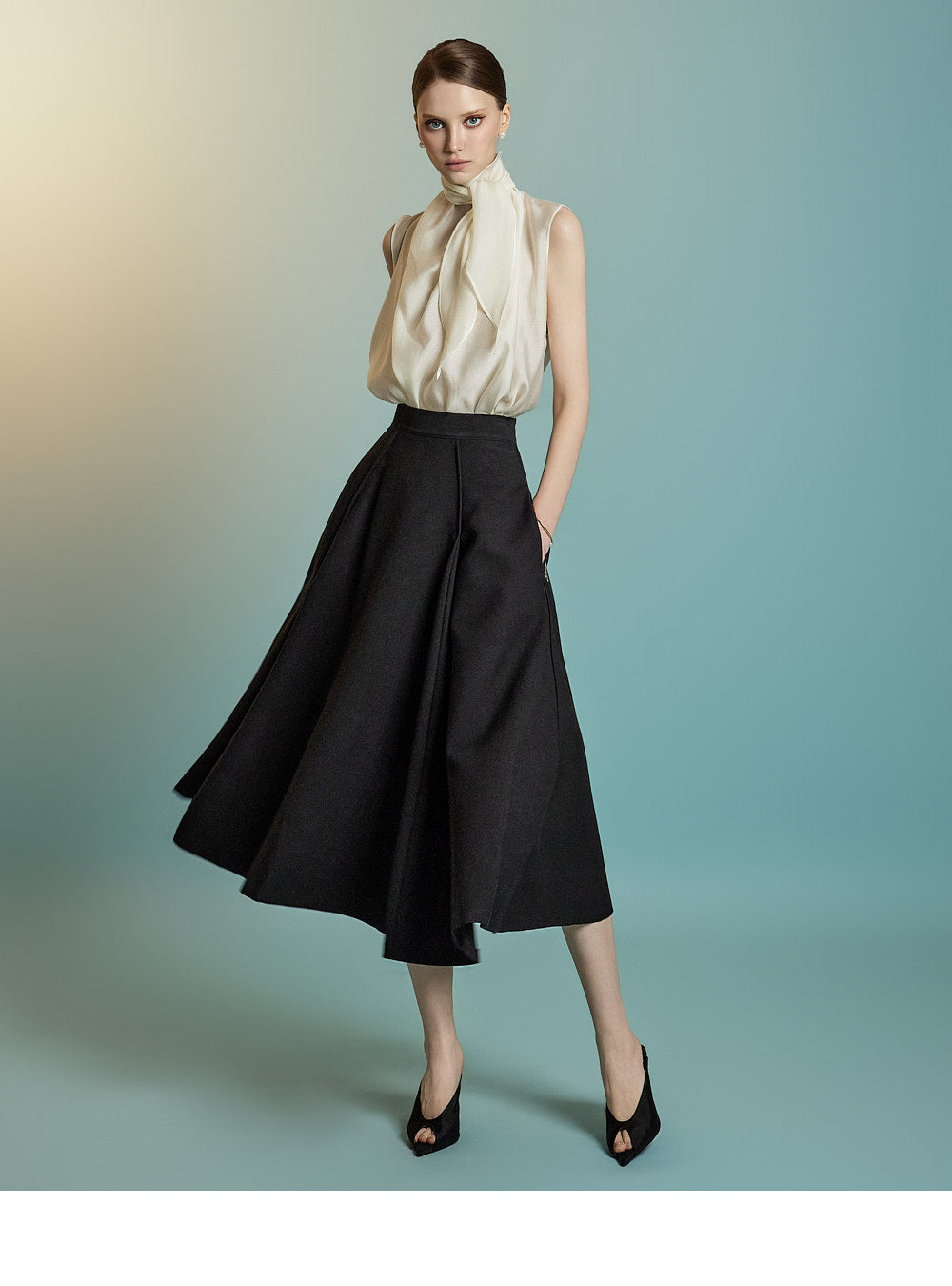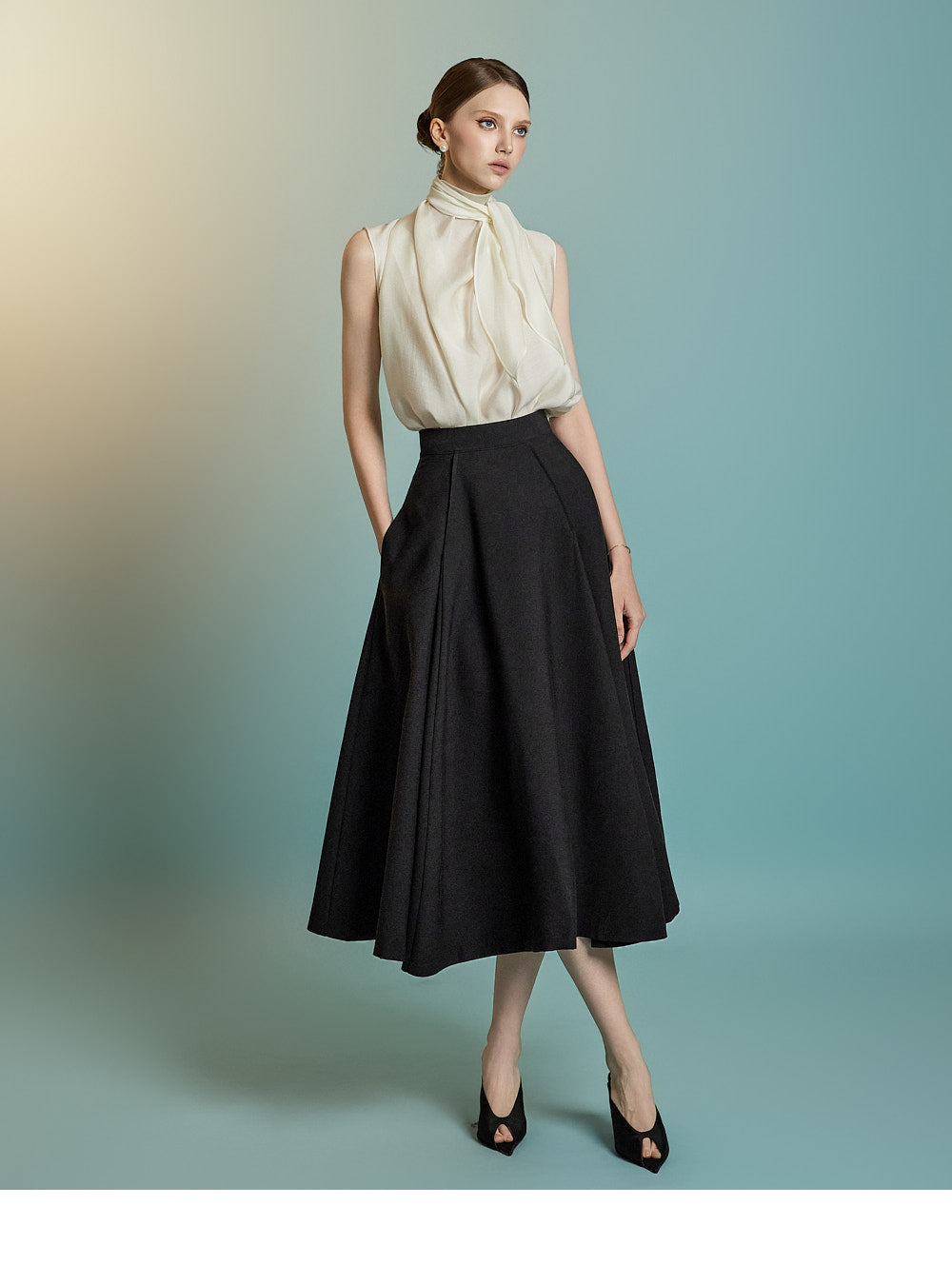 上品な裏地付きフレアスカートがあなたをお待ちしています。