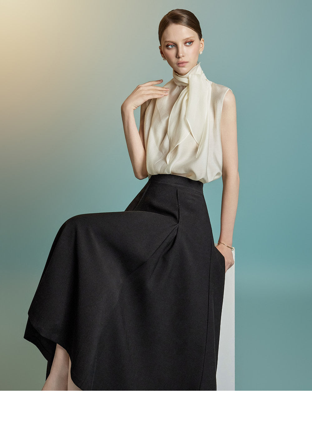 リネンとレーヨンの混紡素材。S、Mサイズ展開。