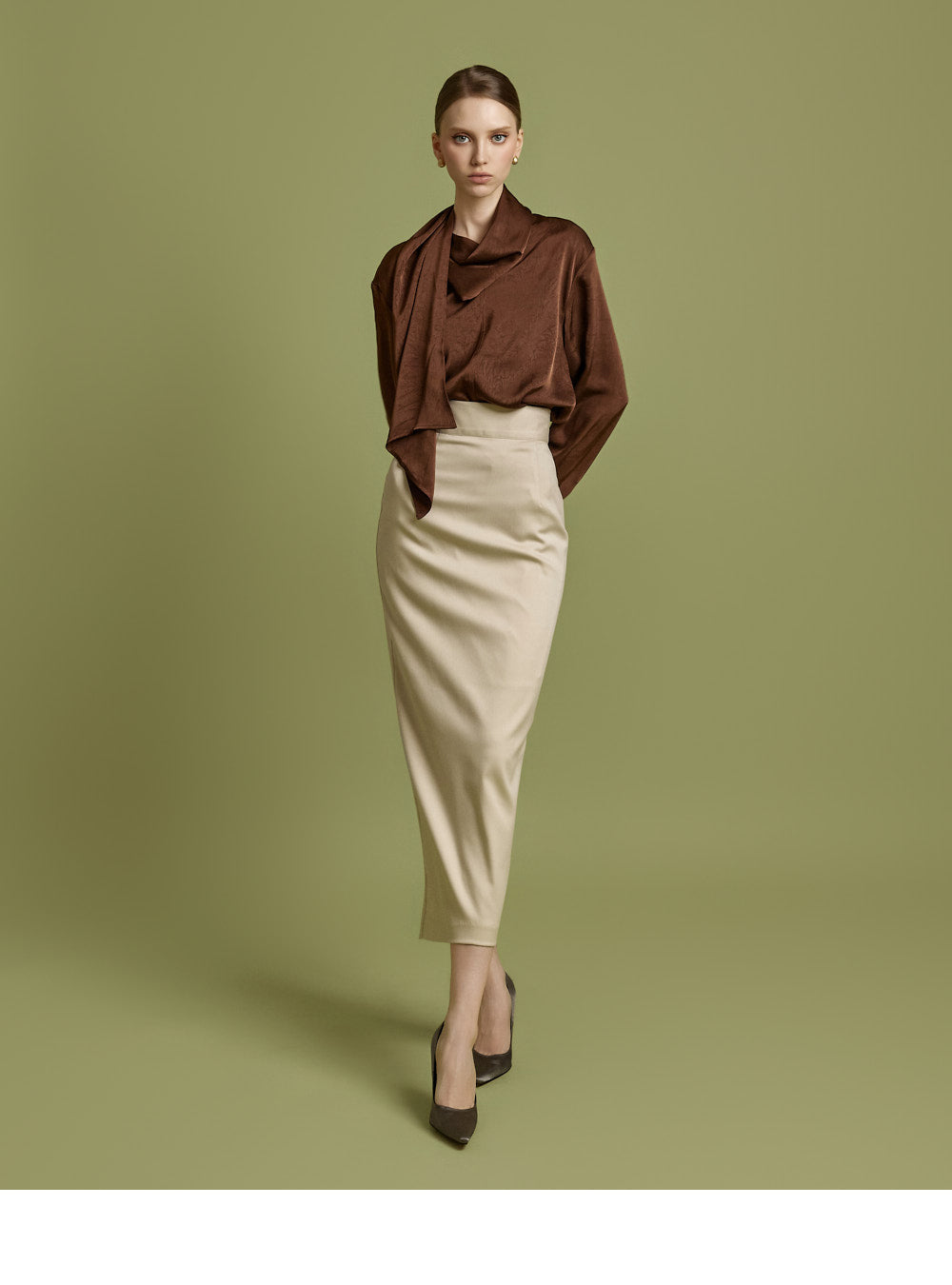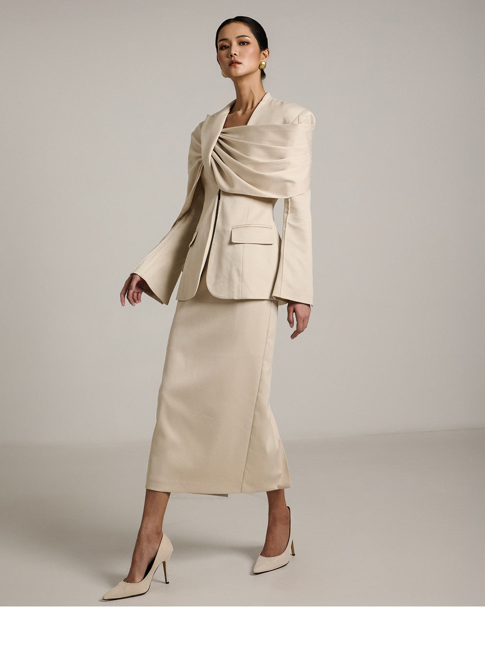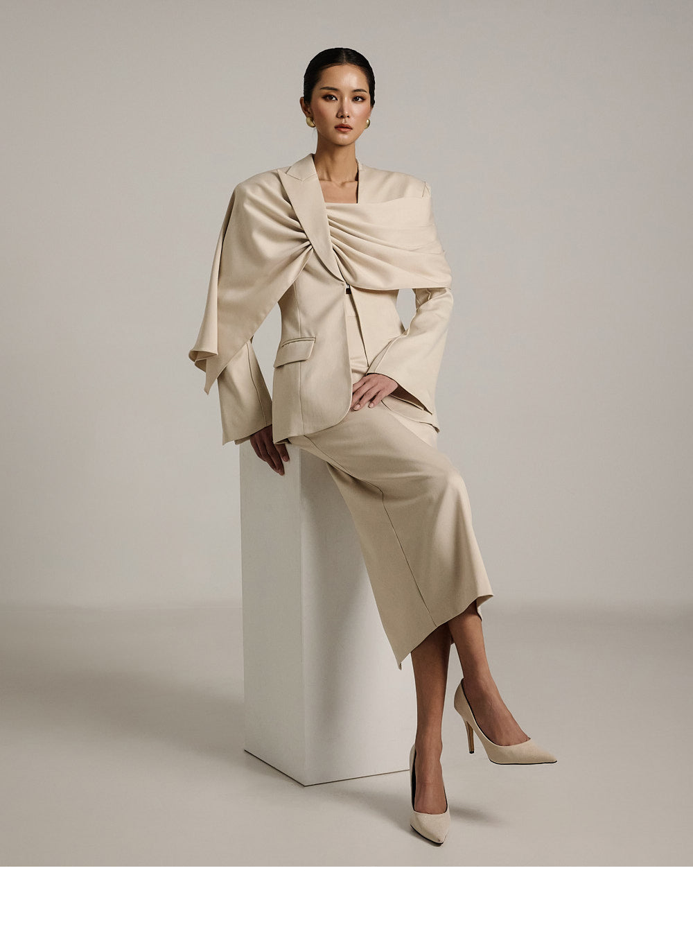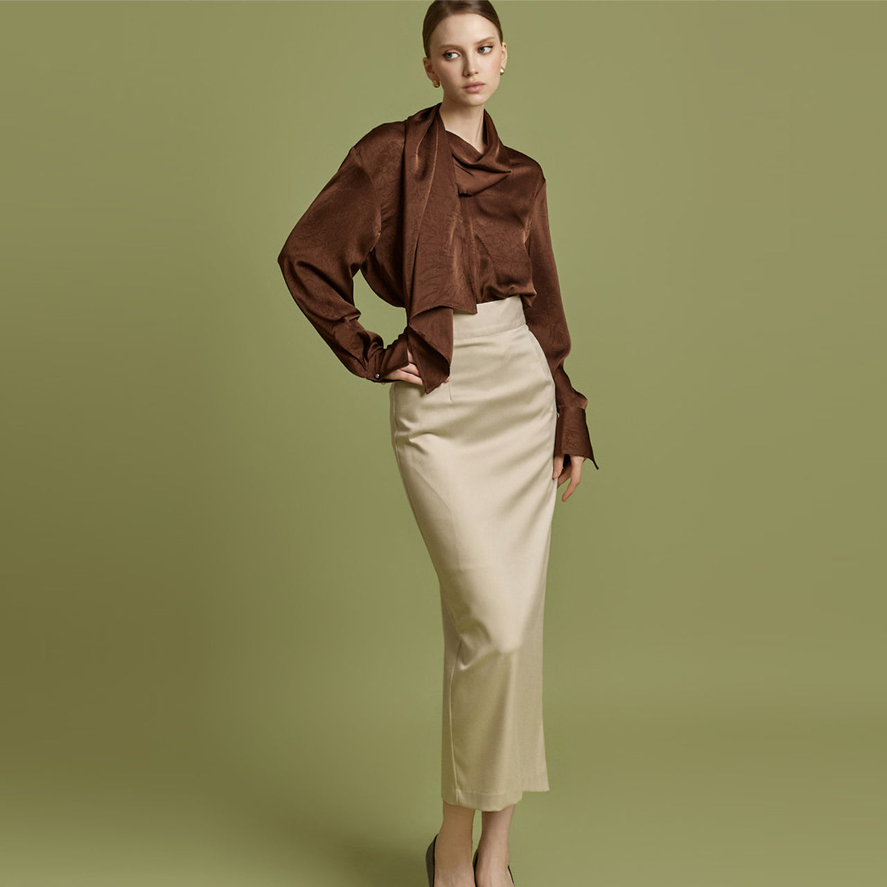 すっきりとしたHラインのシルエットがエレガントで女性らしいムードを演出します。