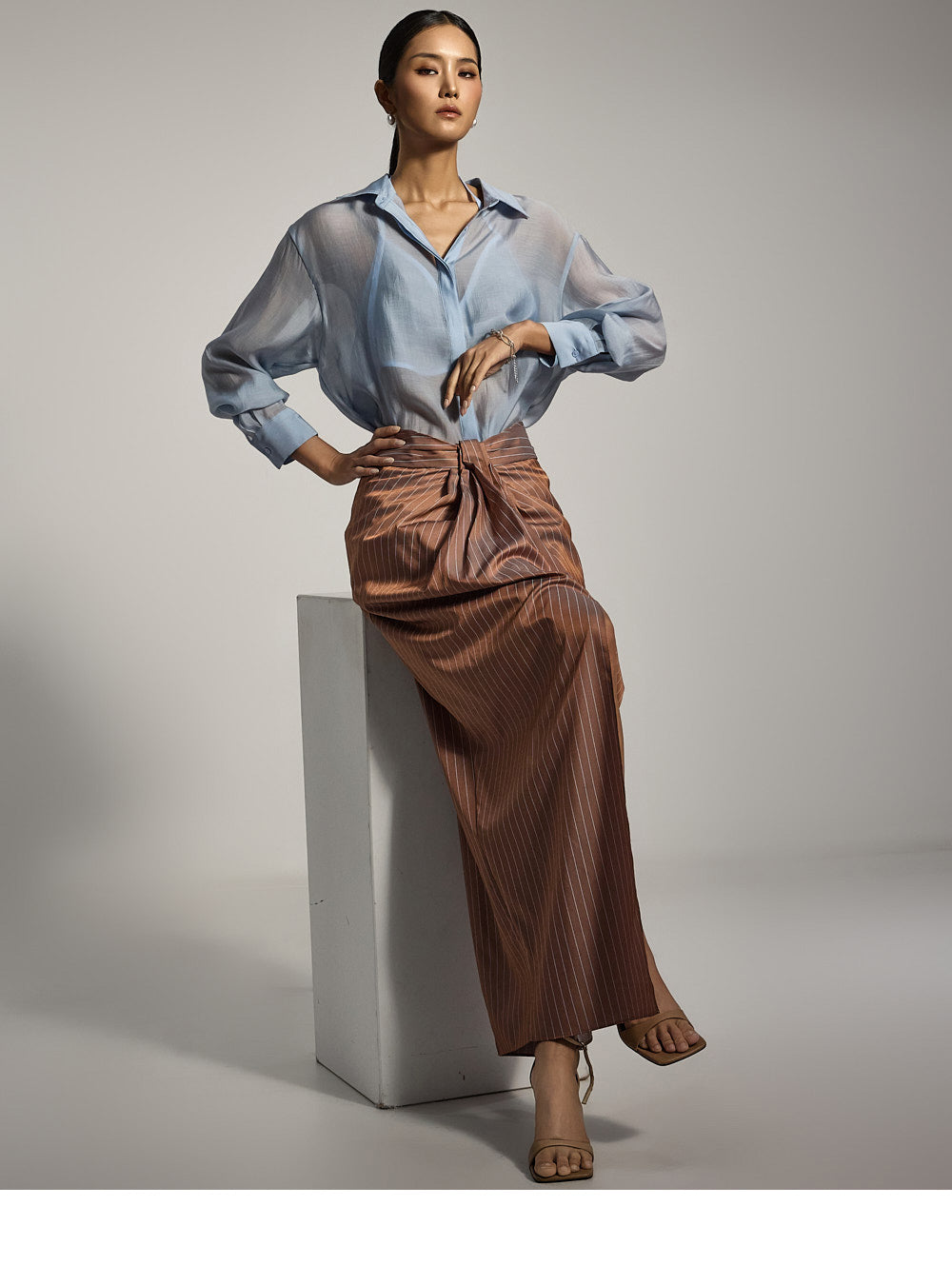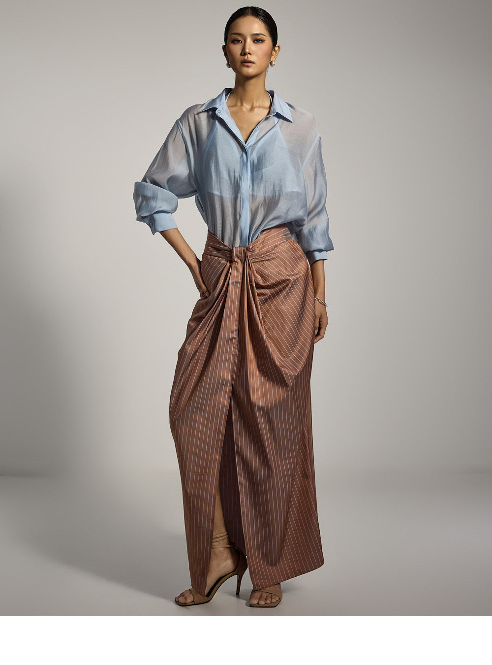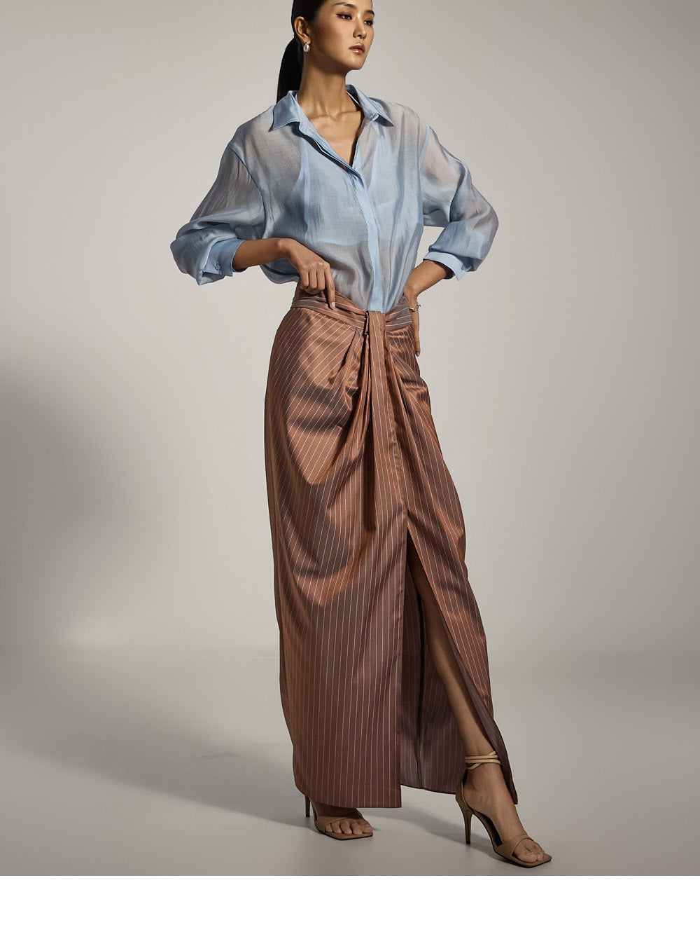 フロントスリットのディテールが自然な動きと洗練されたタッチをプラスします。