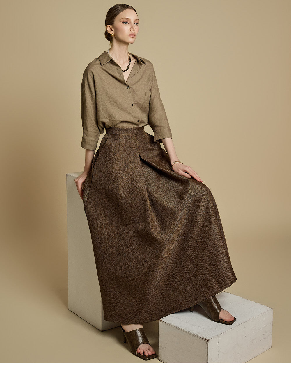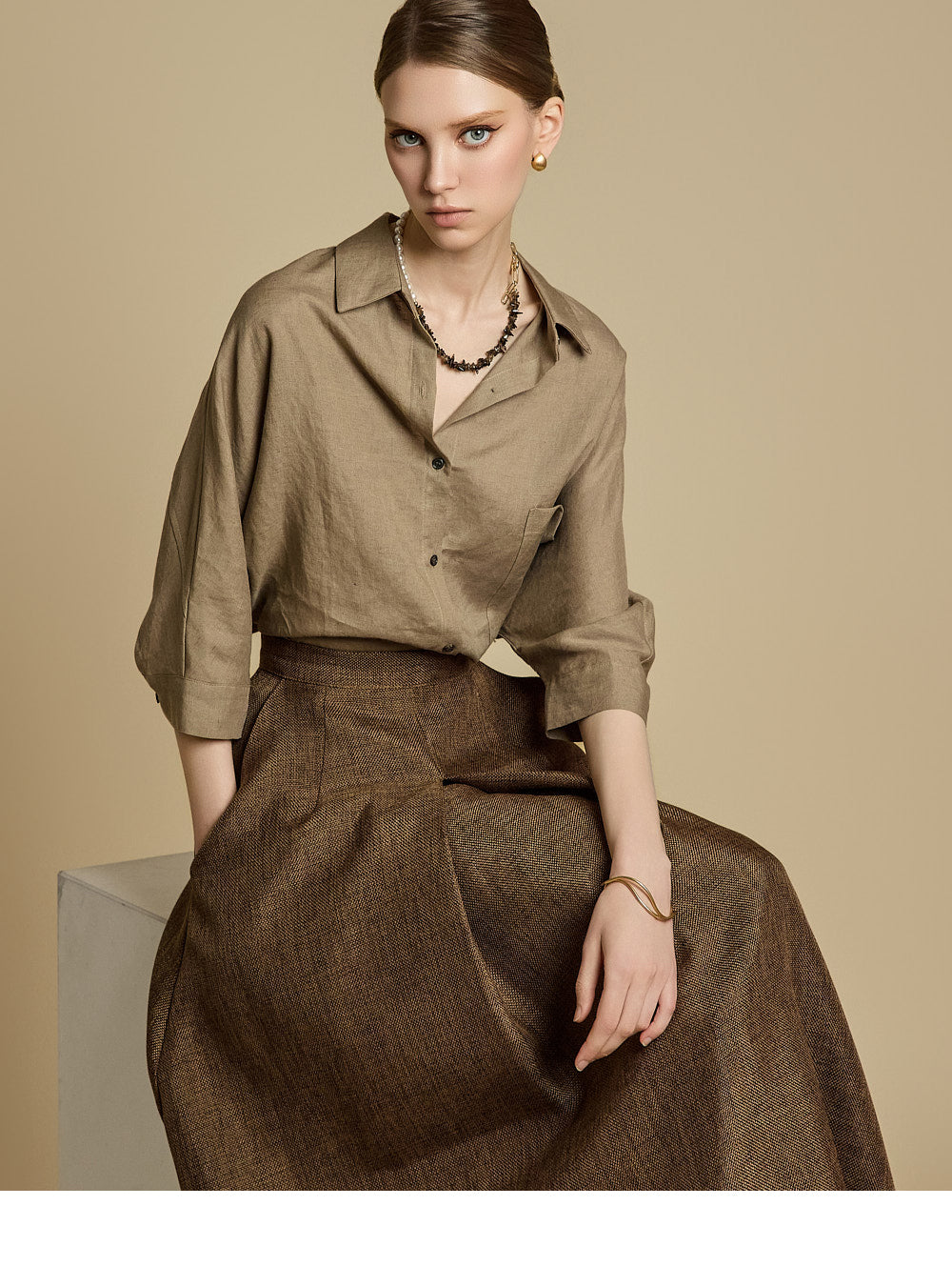 モデルの身長は174cmで、ブラウンのSサイズを着用しています。