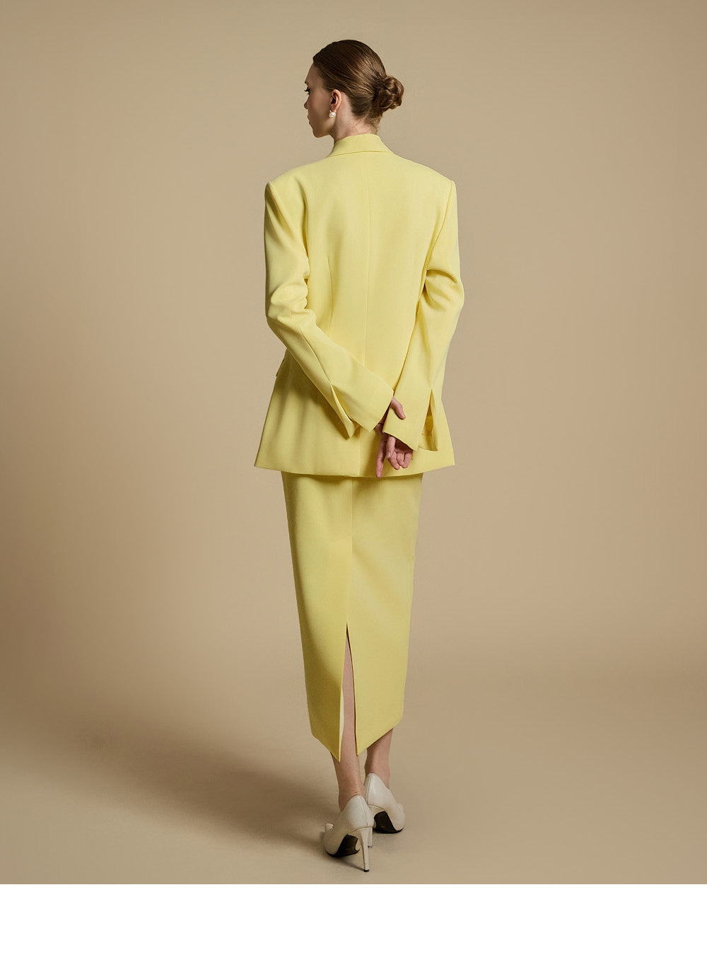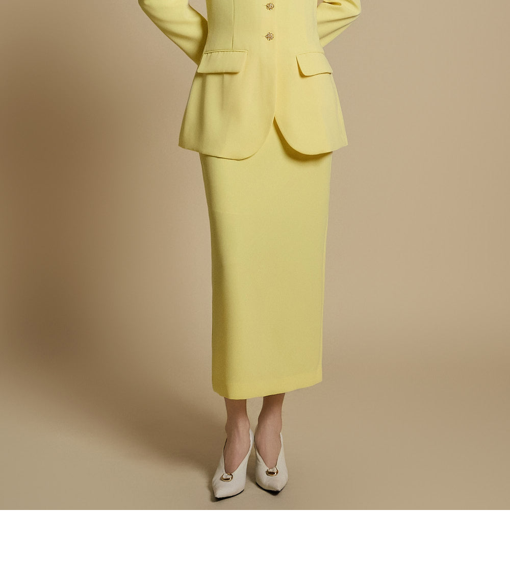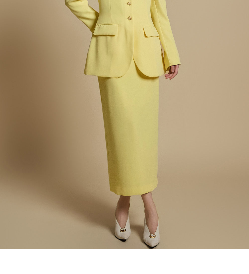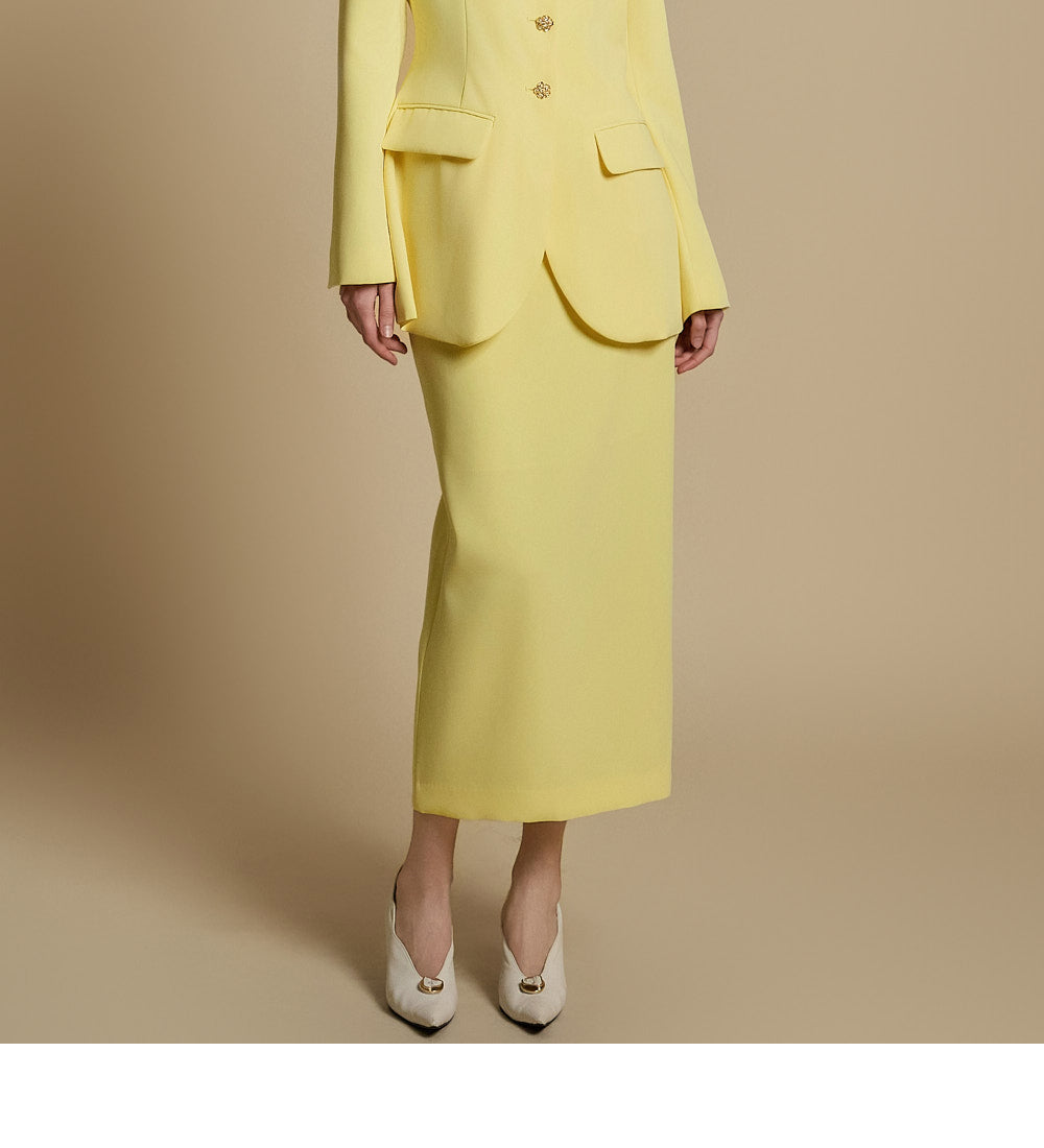 ペンシルスカートのデザインが洗練された雰囲気を添えます。