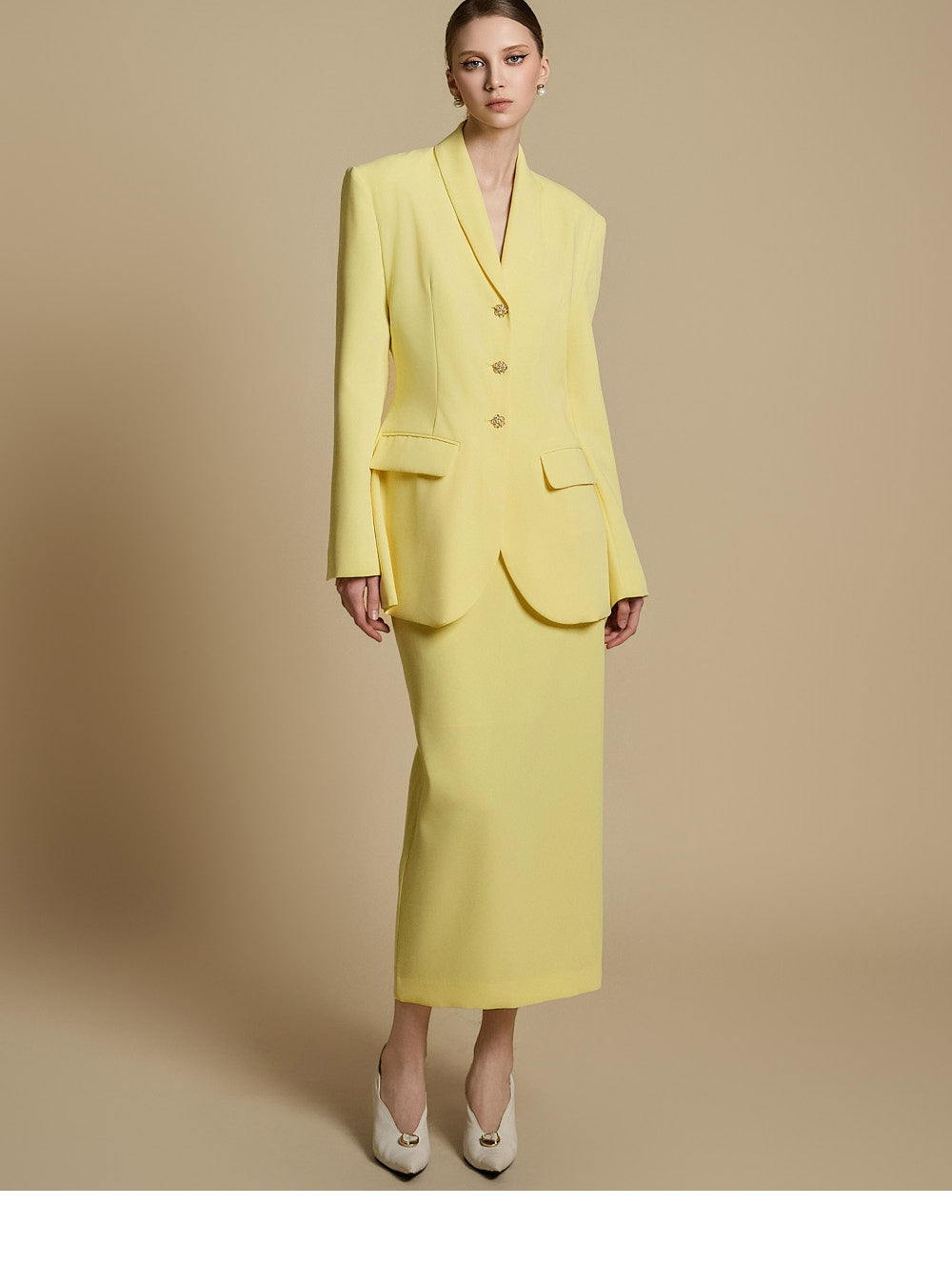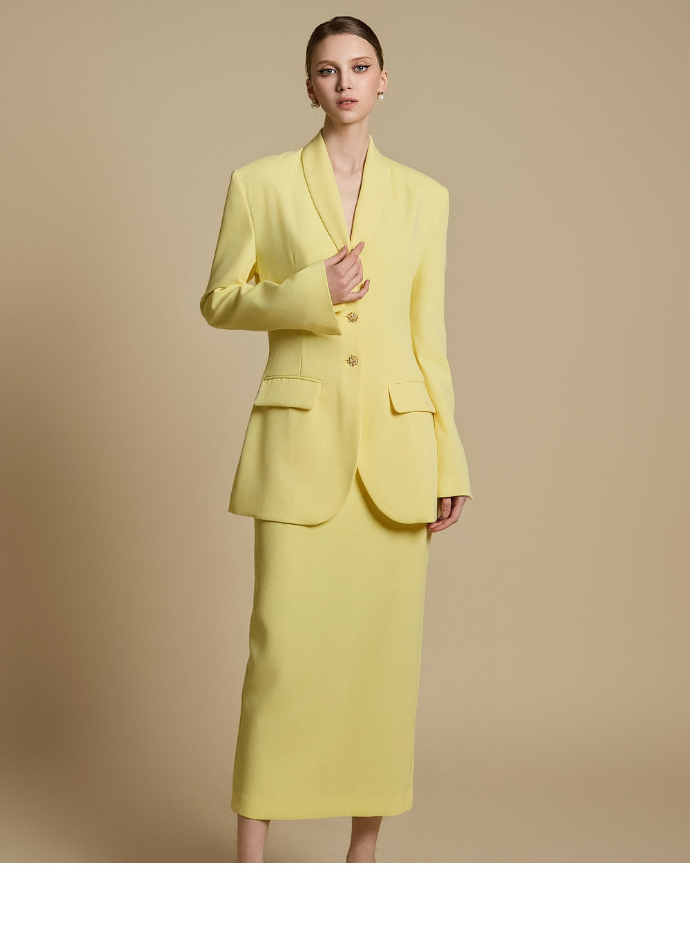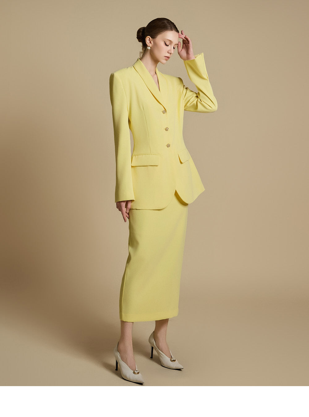 ペンシルスカートのデザインが洗練された雰囲気を添えます。