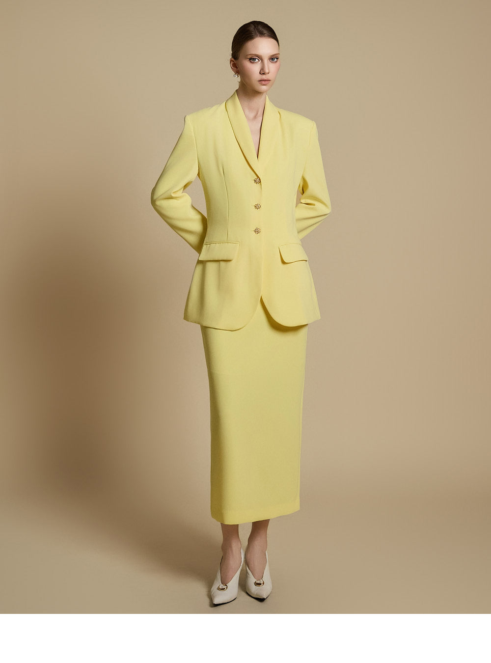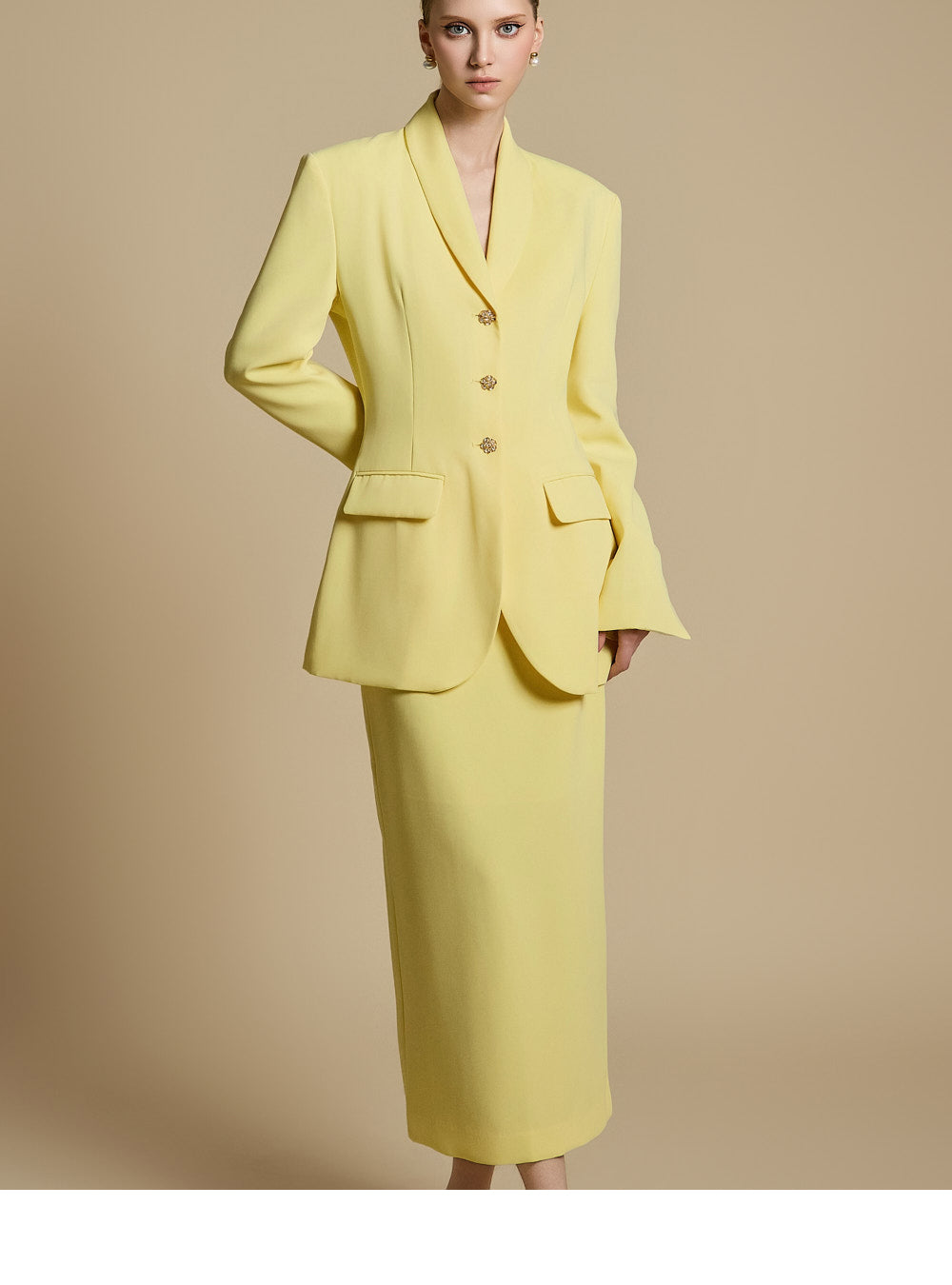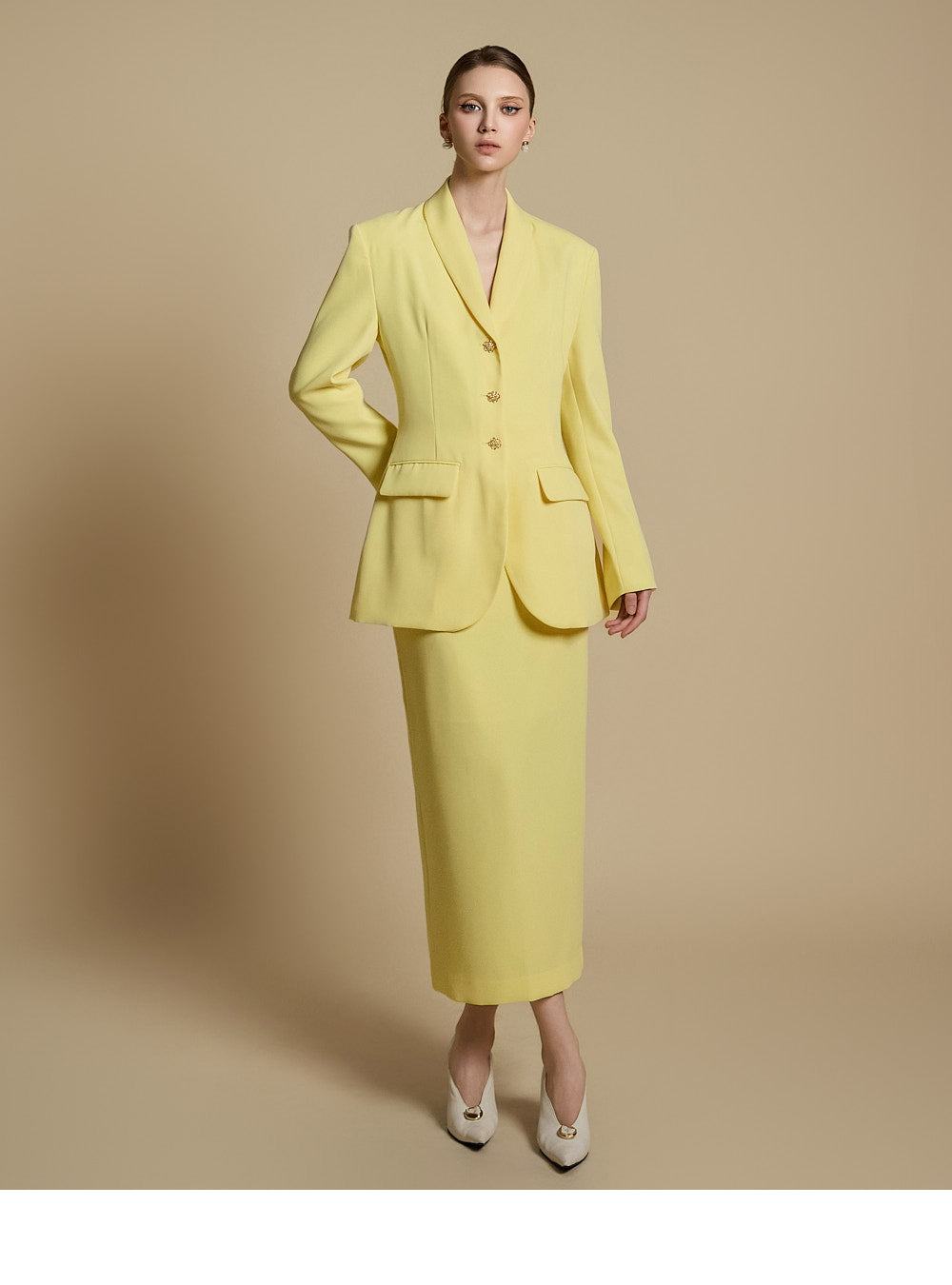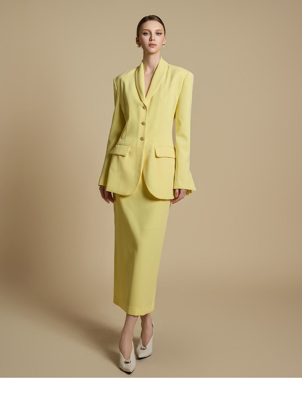 ペンシルスカートのデザインが洗練された雰囲気を添えます。