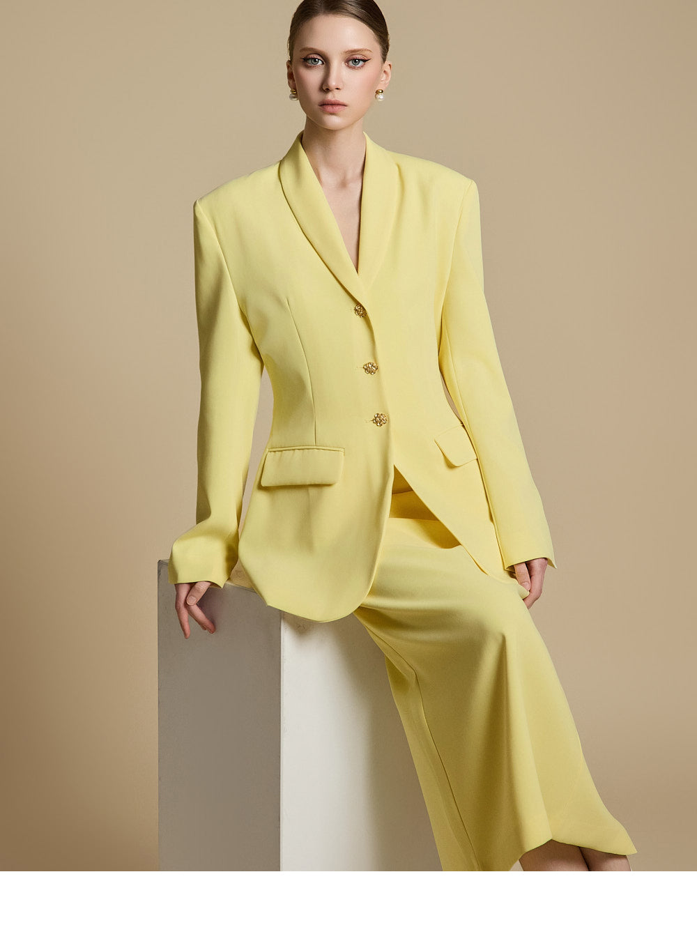 長めのHラインシルエットが、すっきりと洗練された印象を与えます。