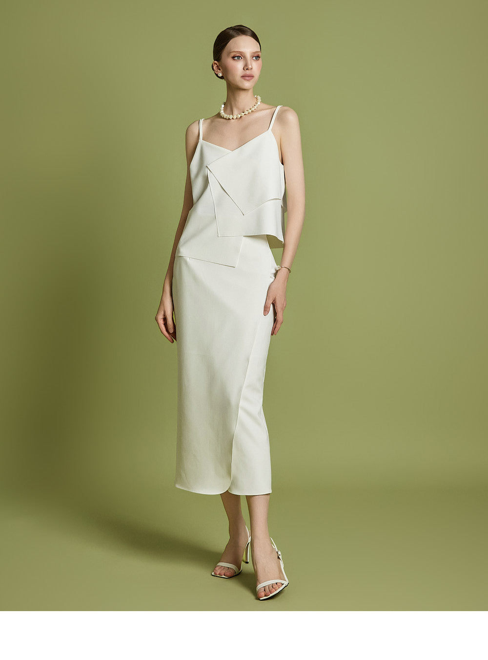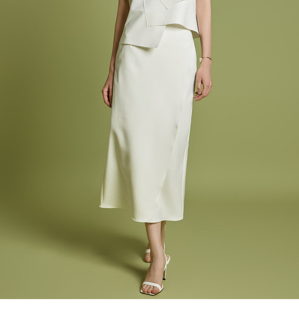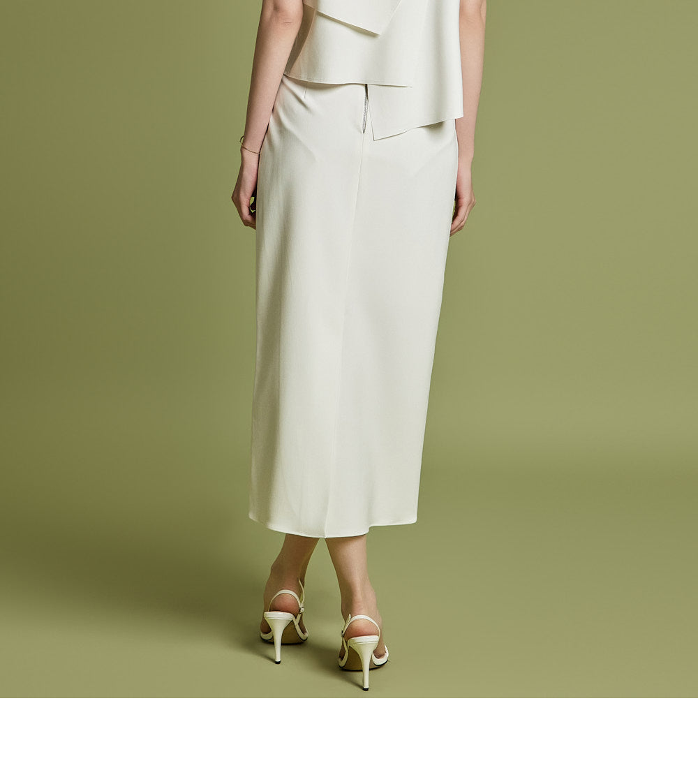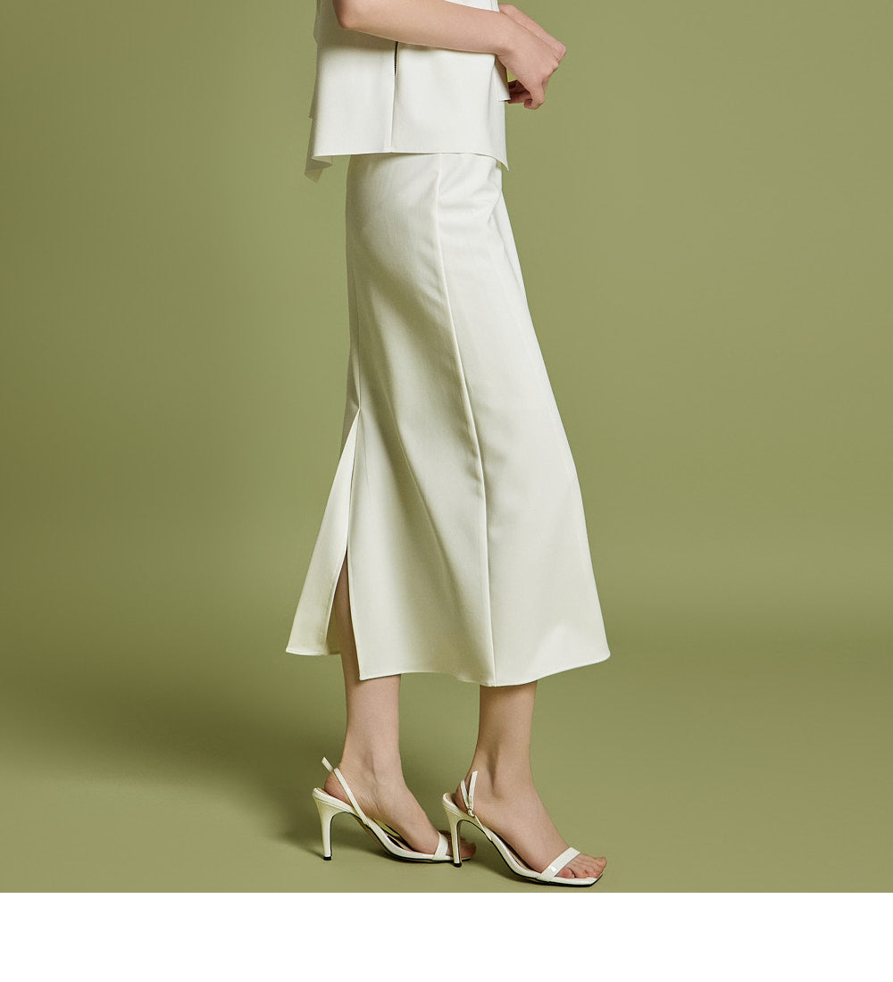 このペンシルスカートはモダンでクリーンな印象を与えます。