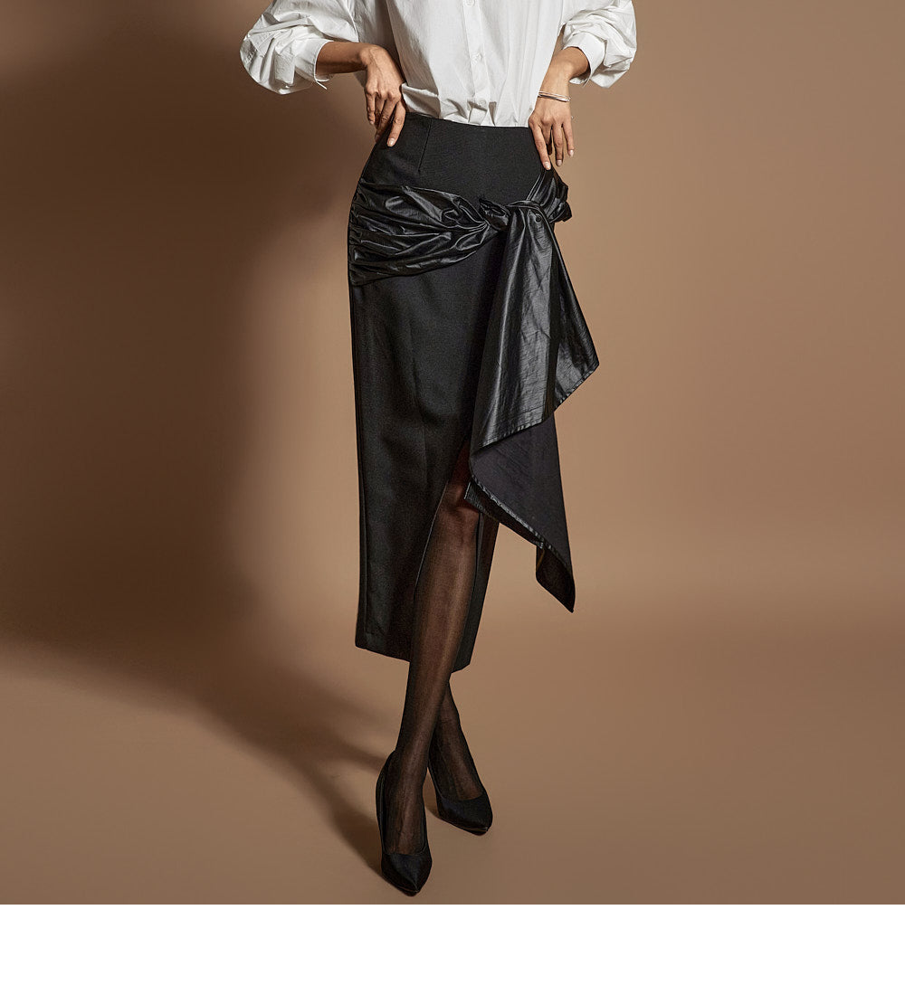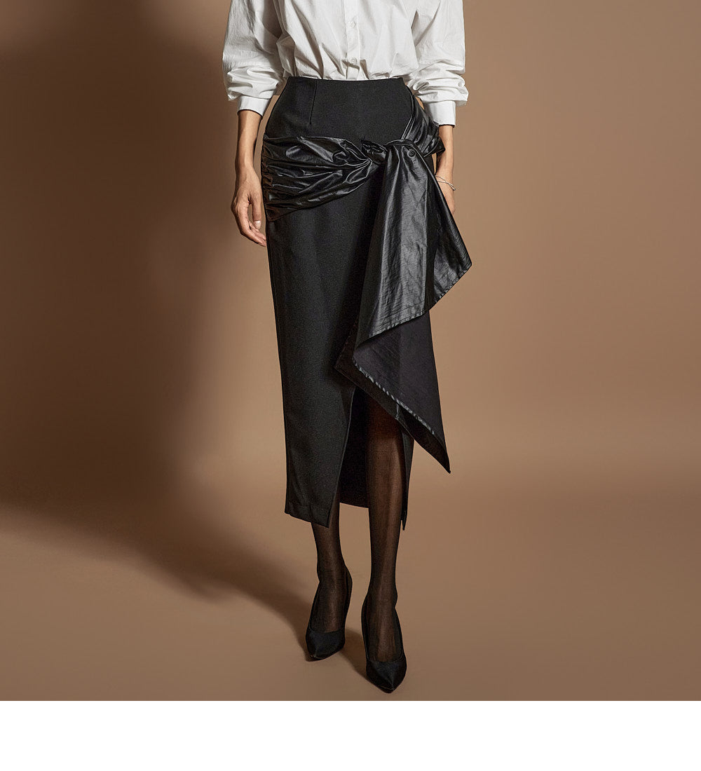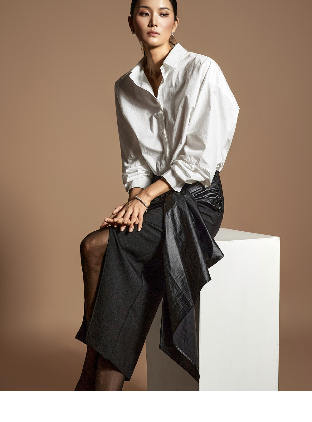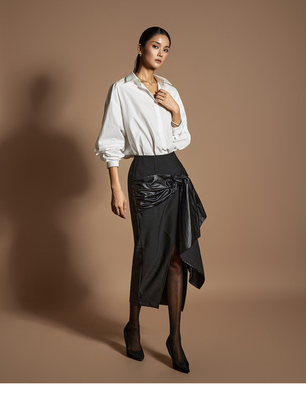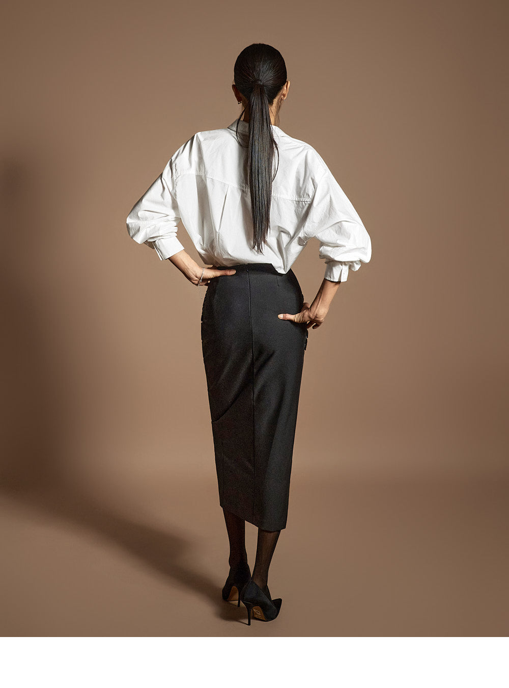 The H-line silhouette with a front slit creates a polished and elegant look.